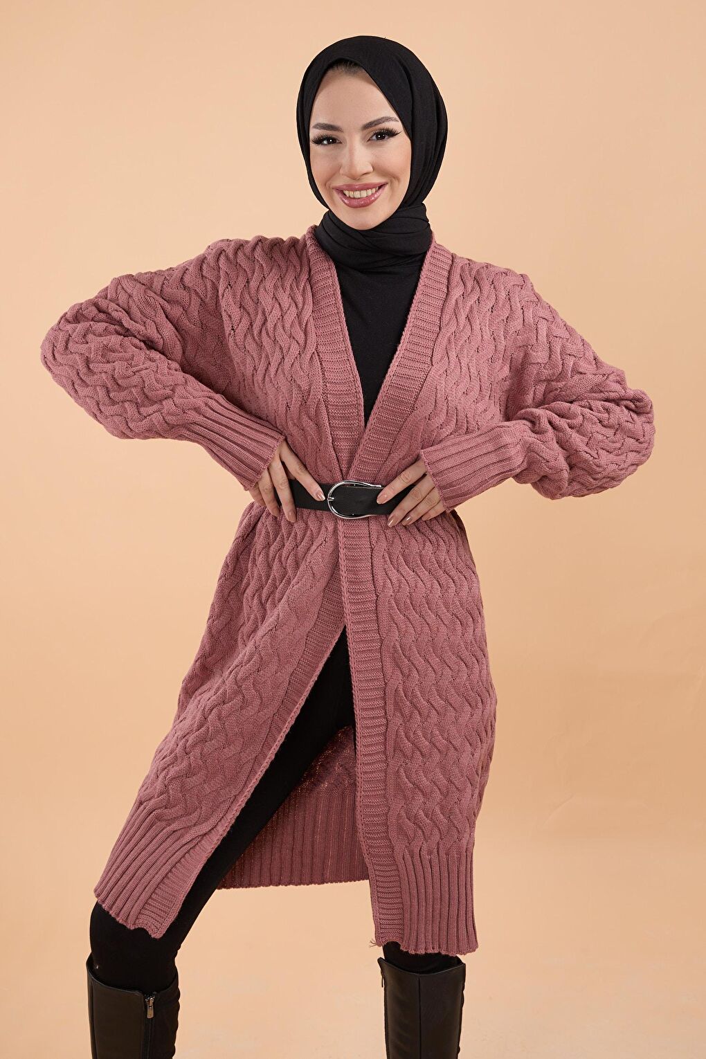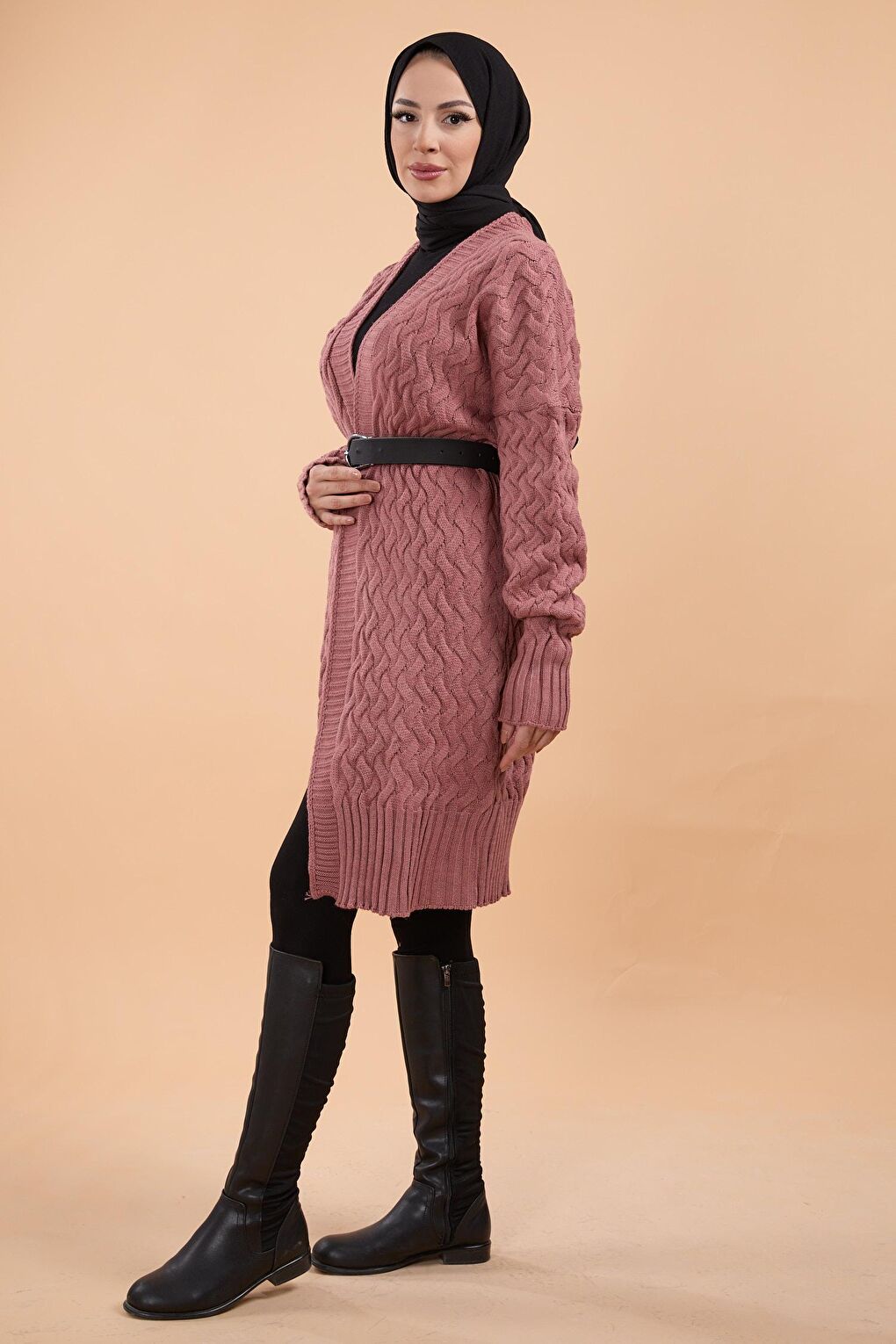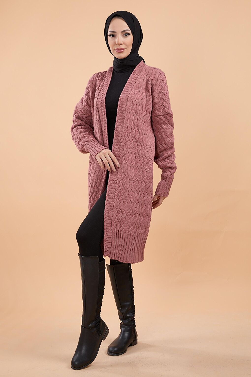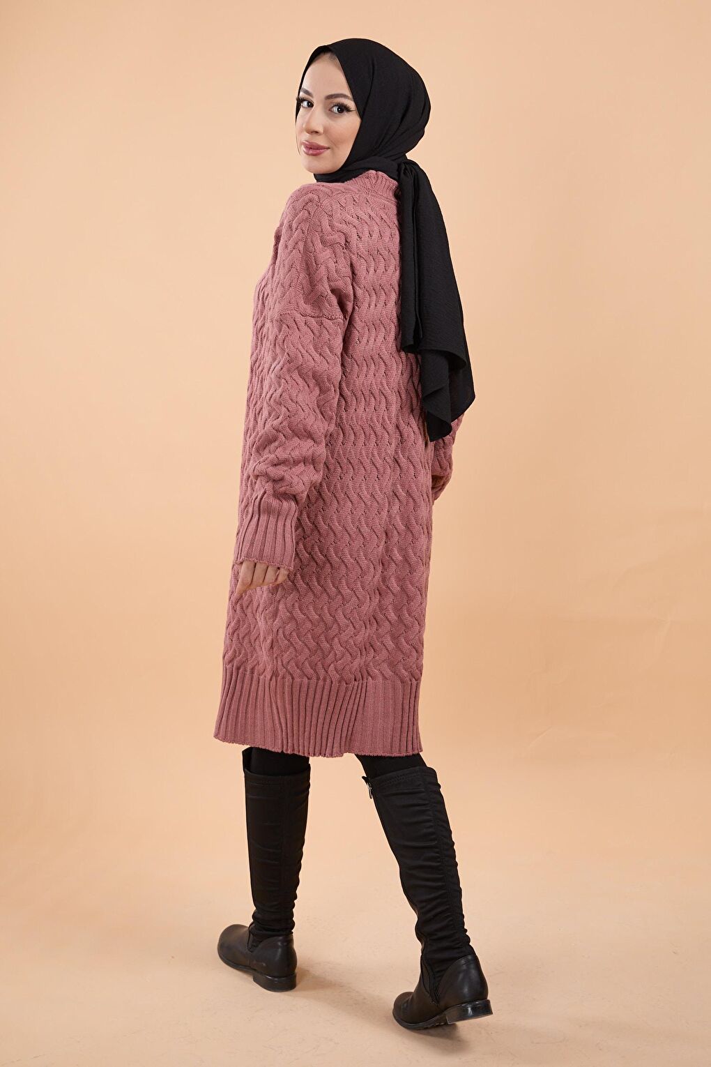 - نام : Düz Kruvaze Yaka Kadın Pembe Triko Hırka - 23766