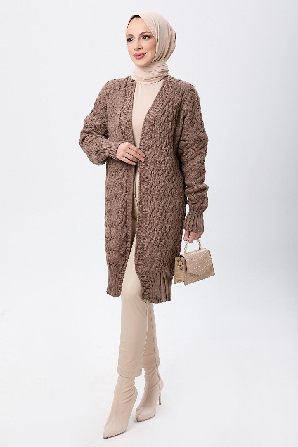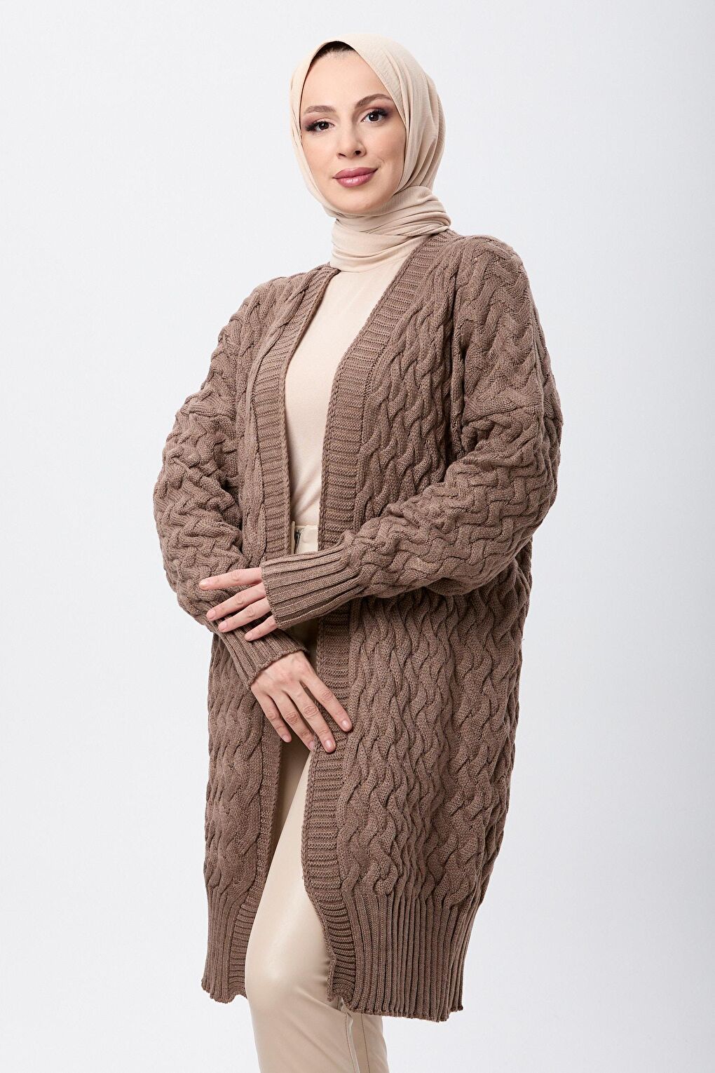 - نام : Düz Kruvaze Yaka Kadın Vizon Triko Hırka - 23766