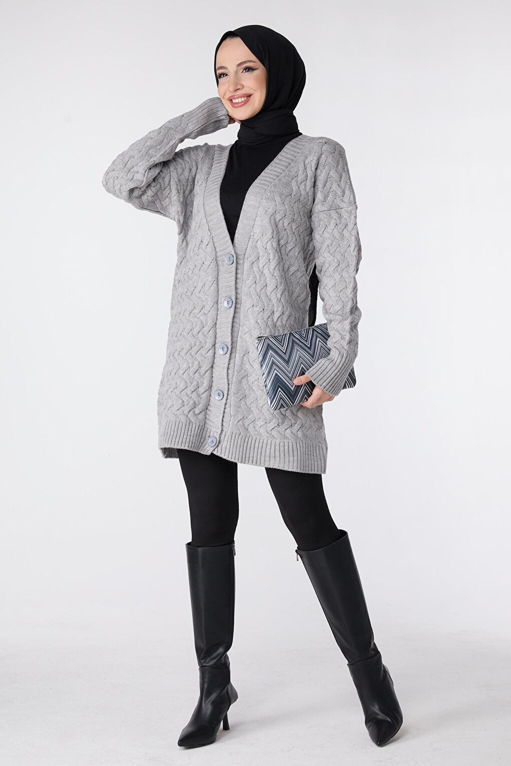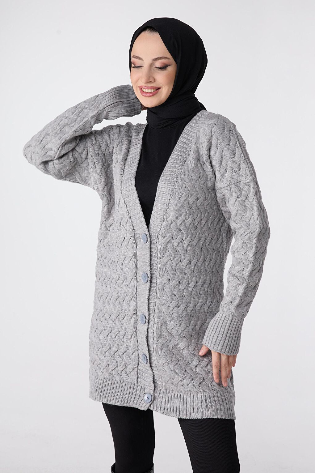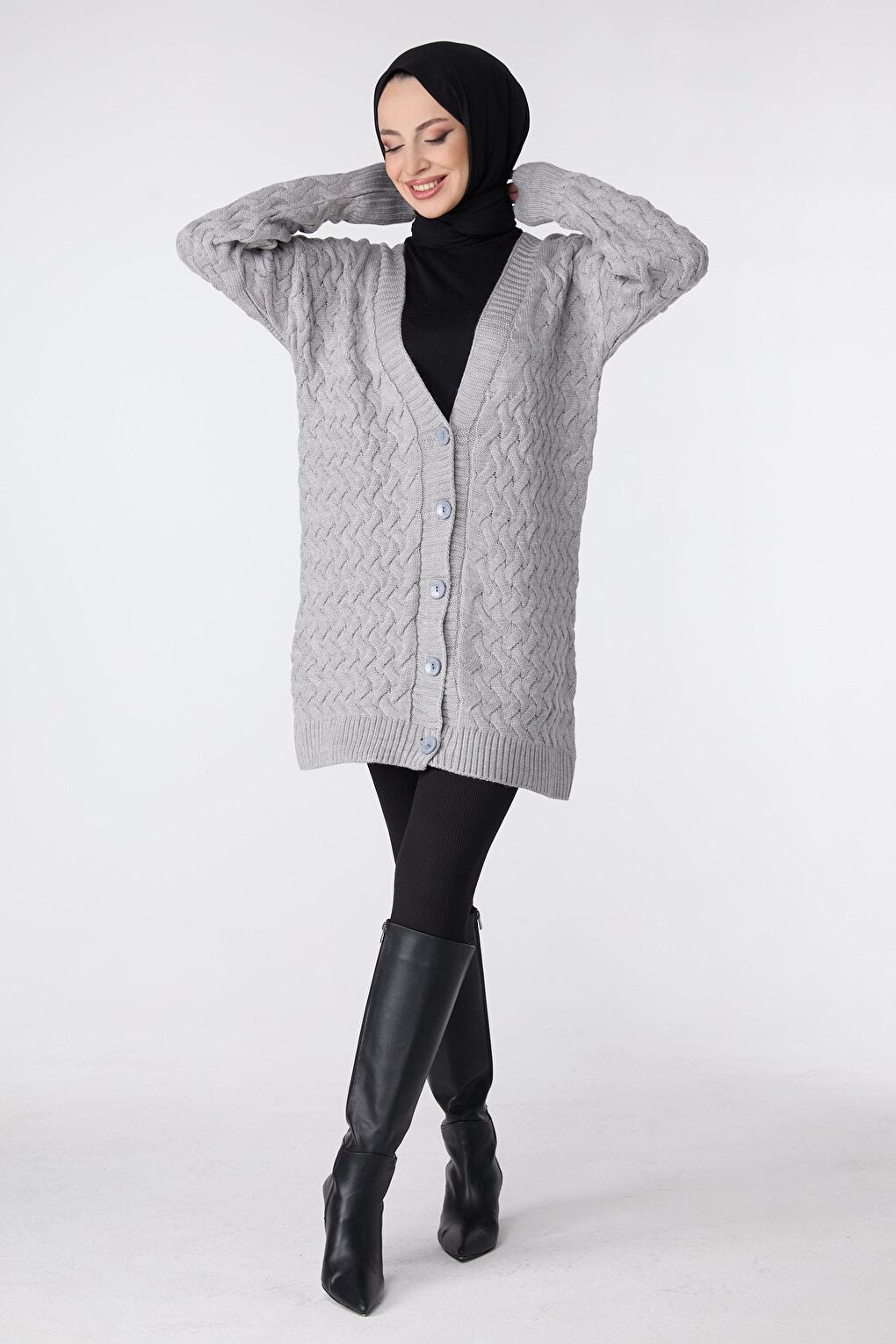 - نام : Düz Orta Kadın Gri Triko Hırka - 23790