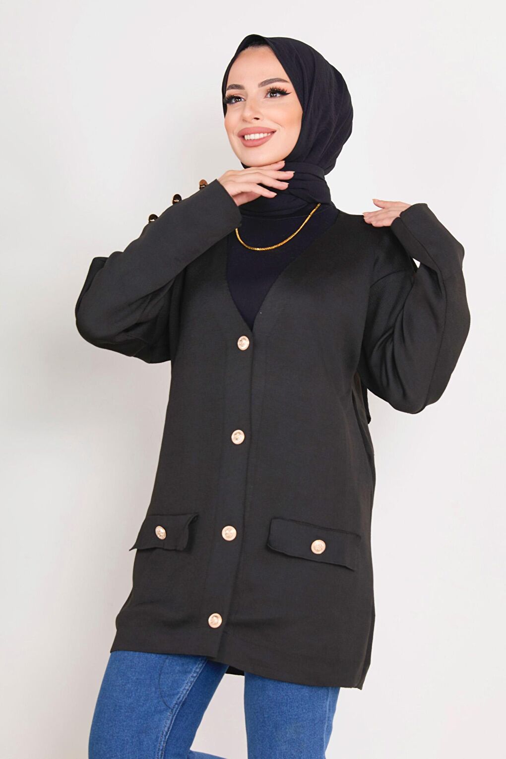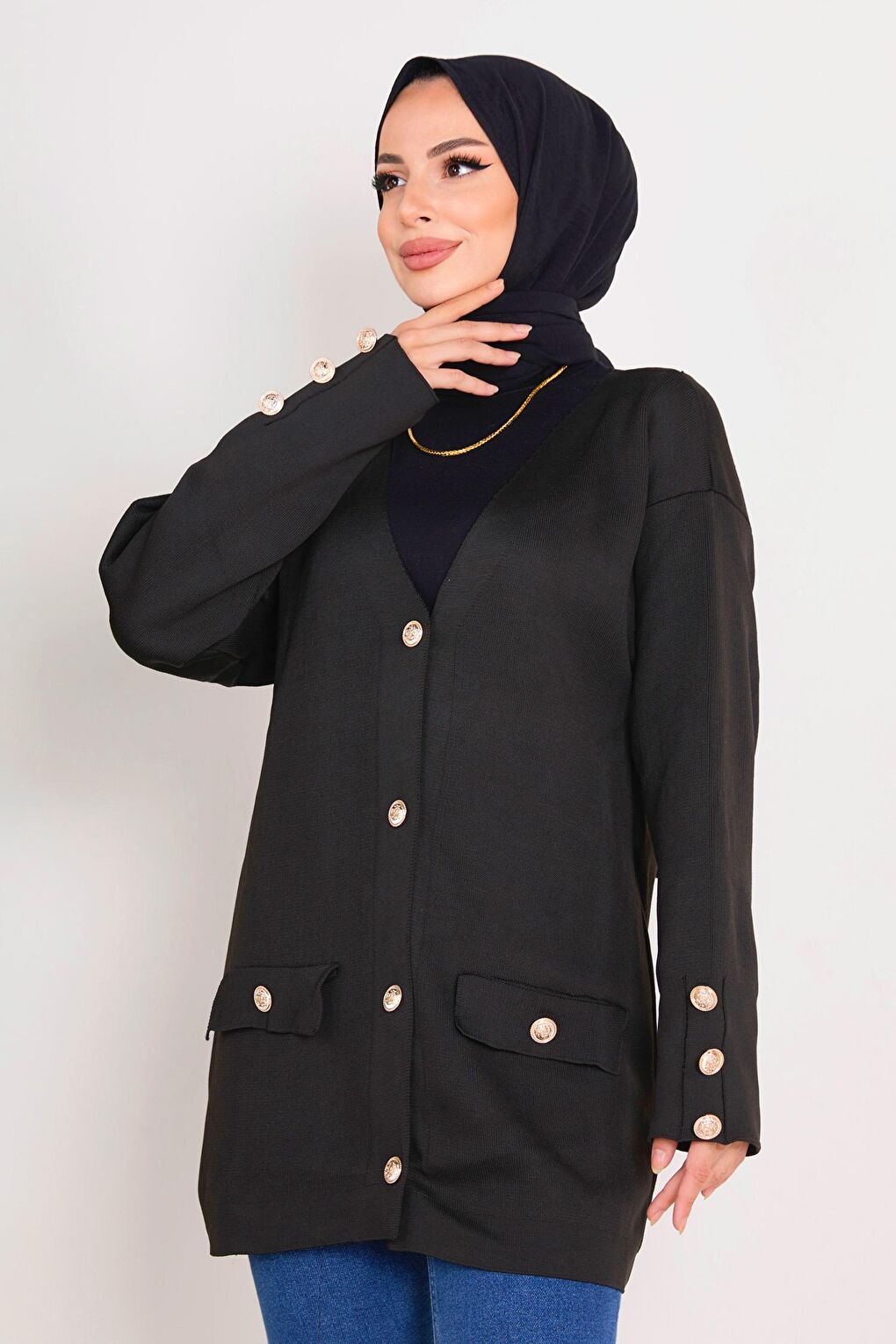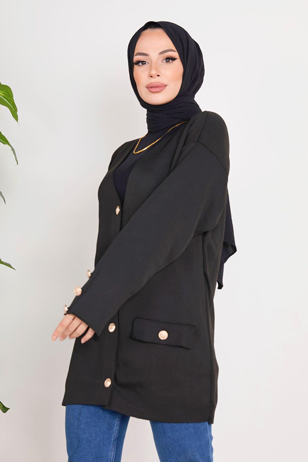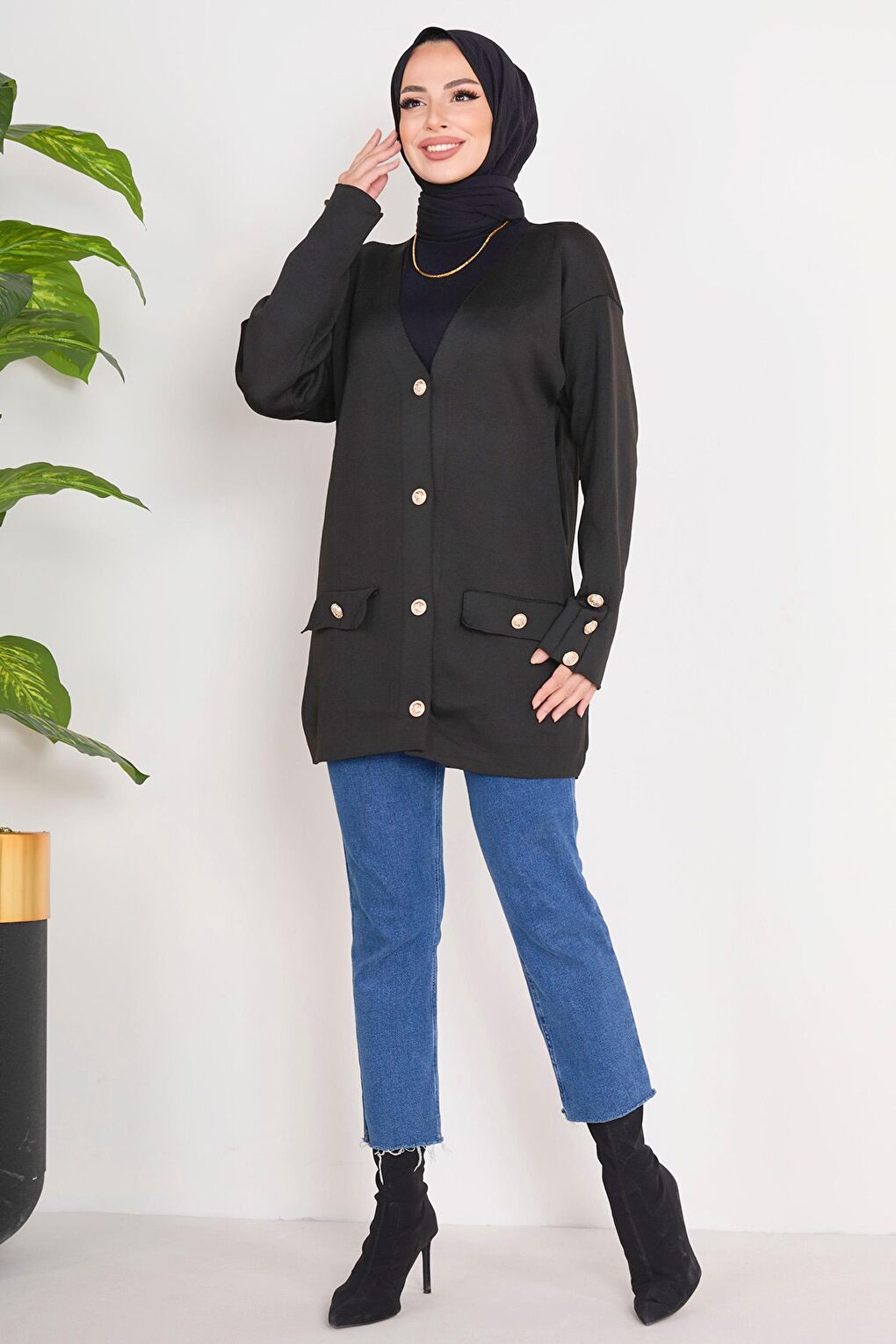 - نام : Düz Orta Kadın Siyah Triko Hırka - 23366