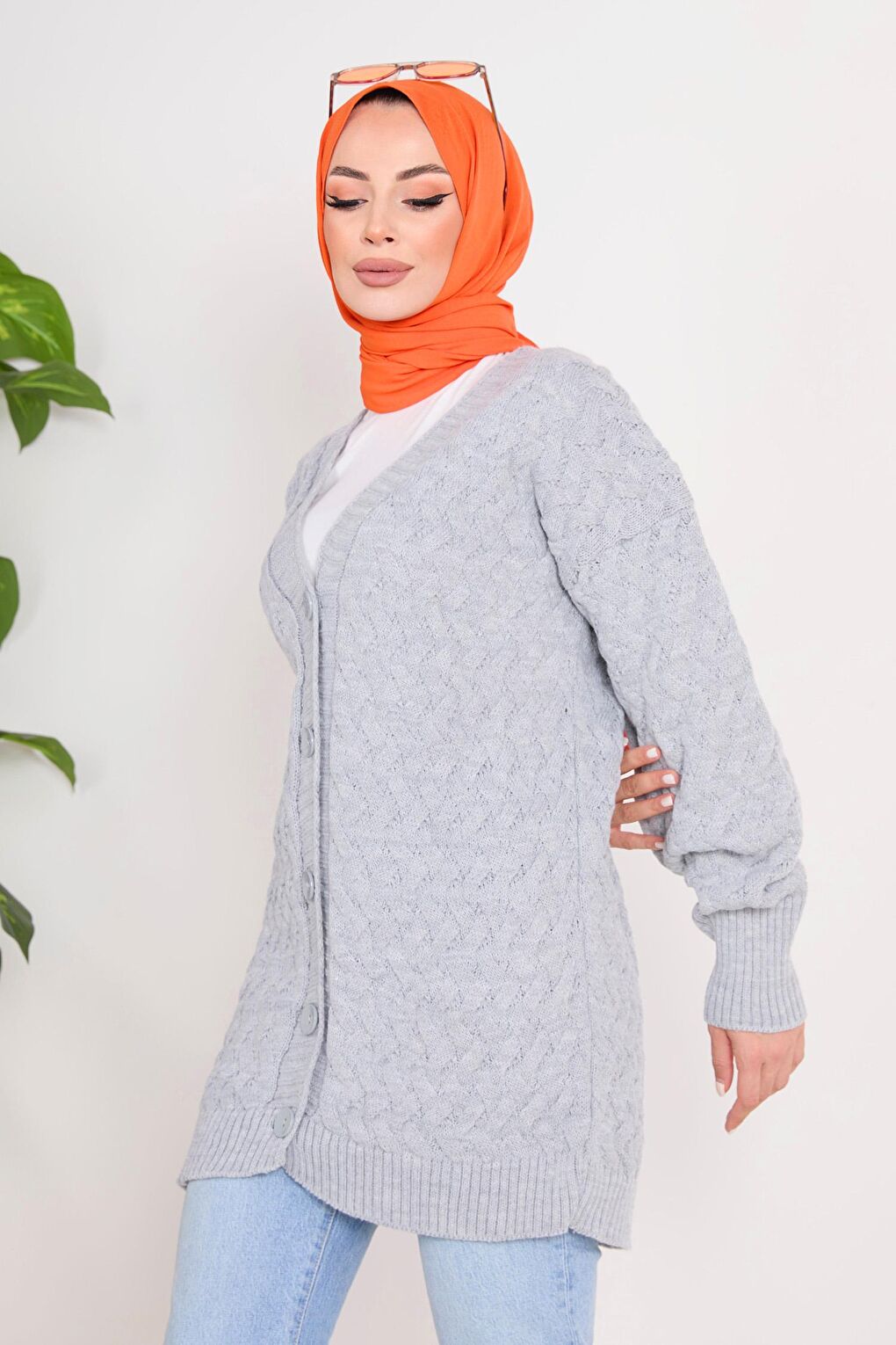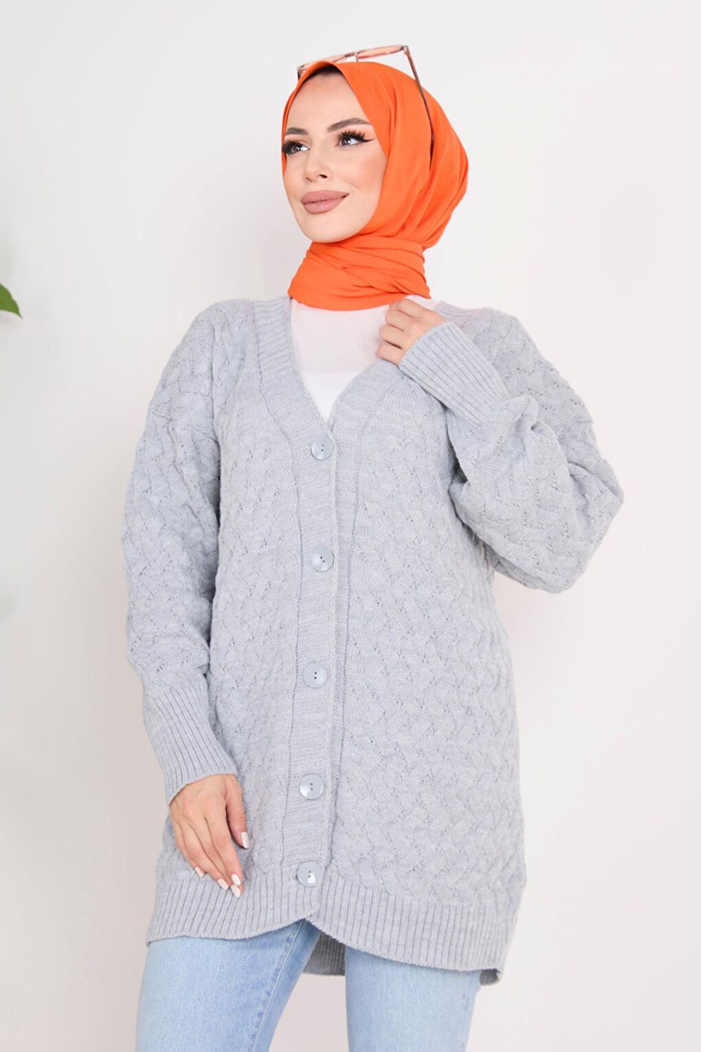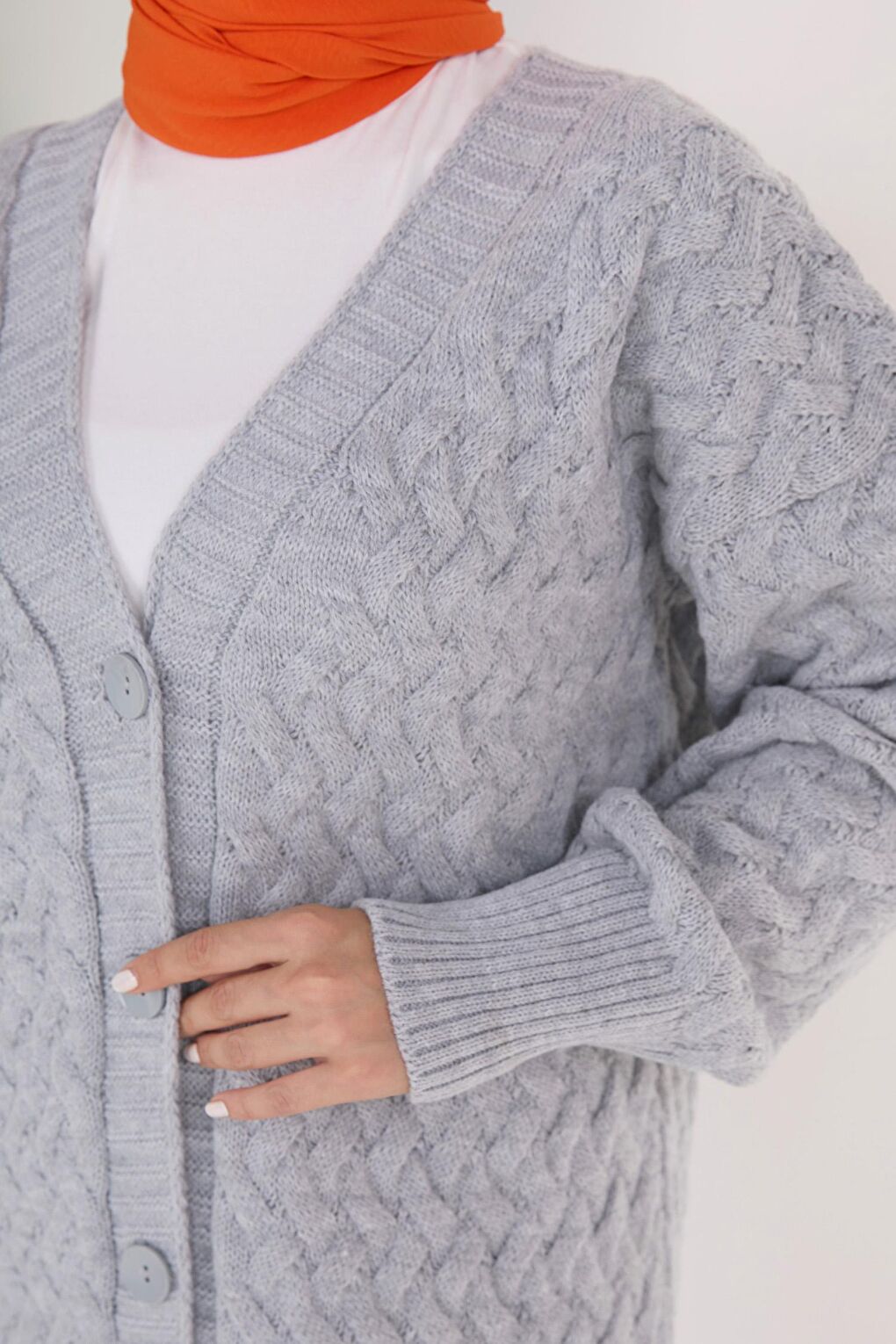 - نام : Düz Ceket Yaka Kadın Gri Triko Hırka - 23099