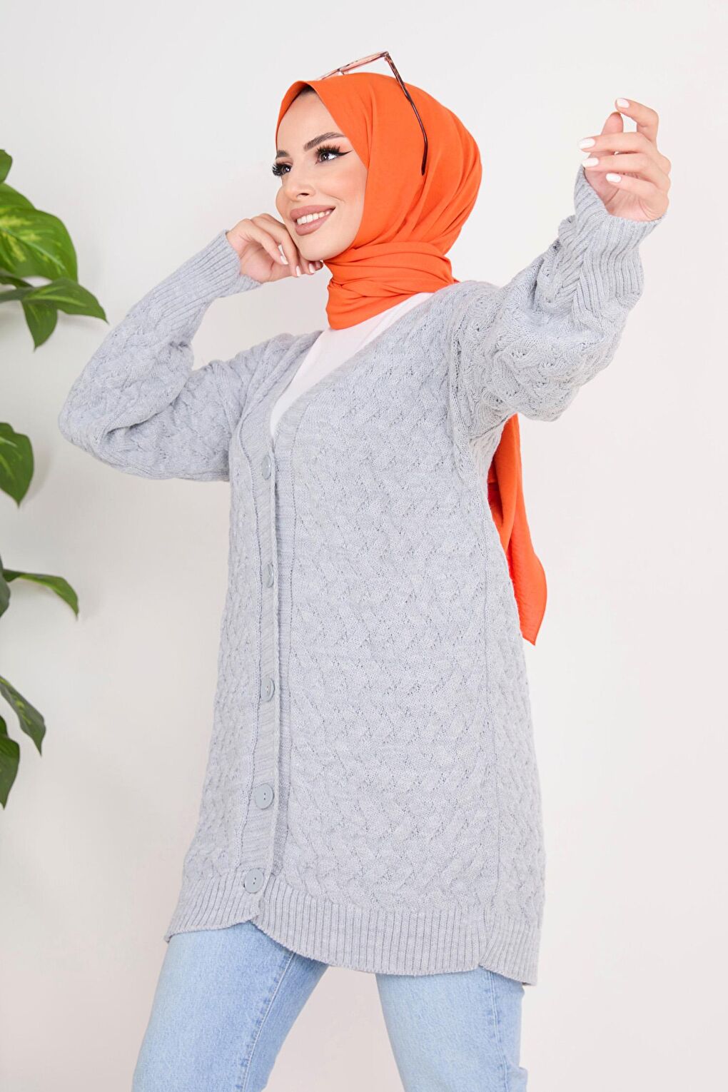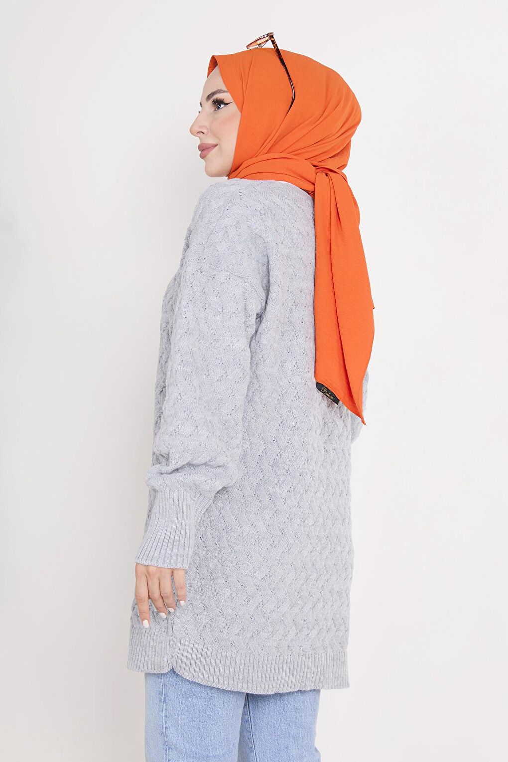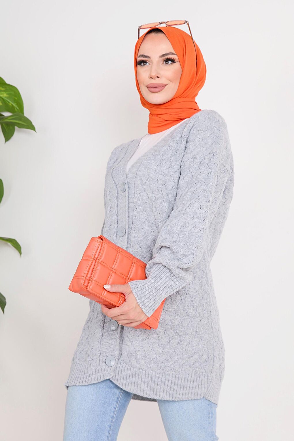 - نام : Düz Ceket Yaka Kadın Gri Triko Hırka - 23099