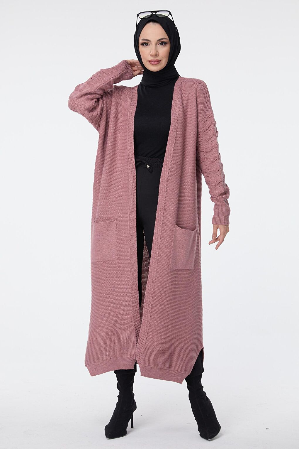 - نام : Düz Kruvaze Yaka Kadın Pembe Triko Hırka - 23704
