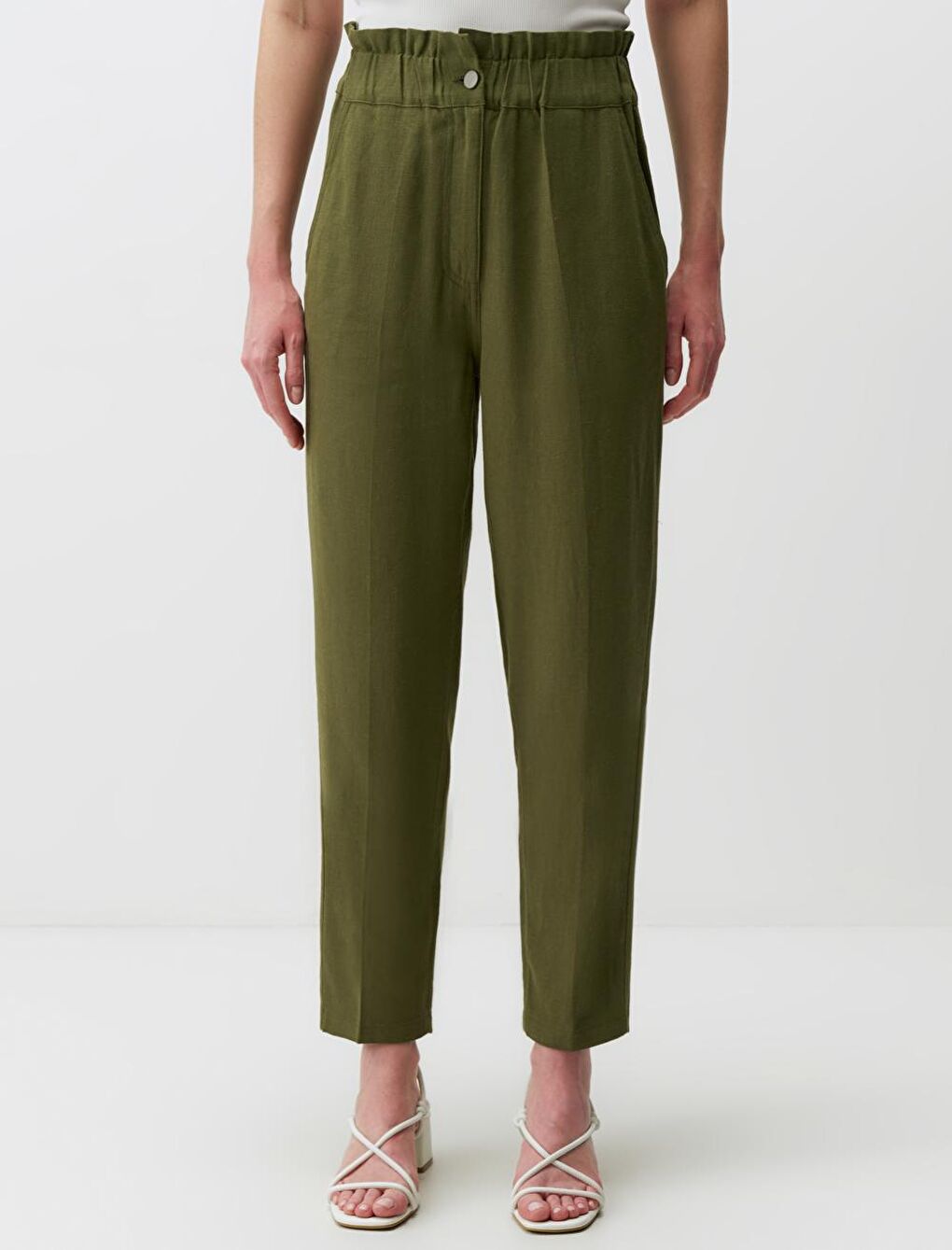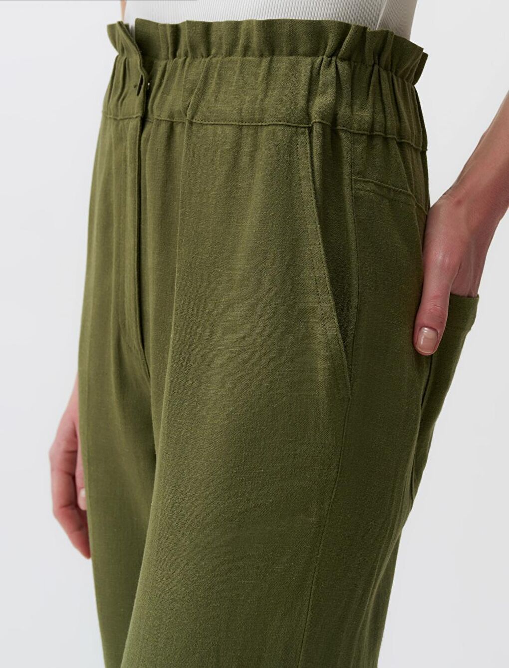 - نام : Haki Yüksek Bel Beli Lastikli Keten Pantolon