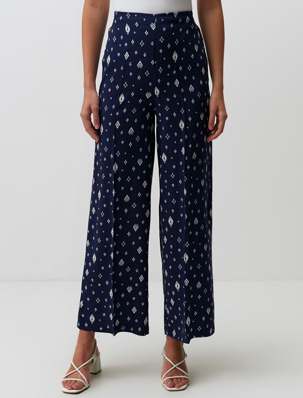 - نام : Lacivert Bol Paça Yüksek Bel Desenli Pantolon