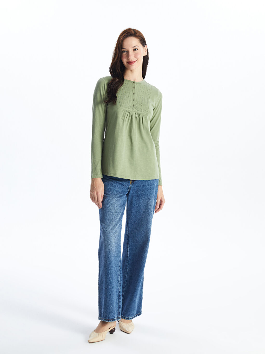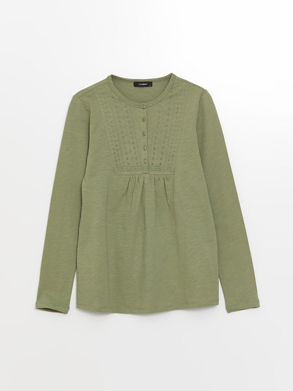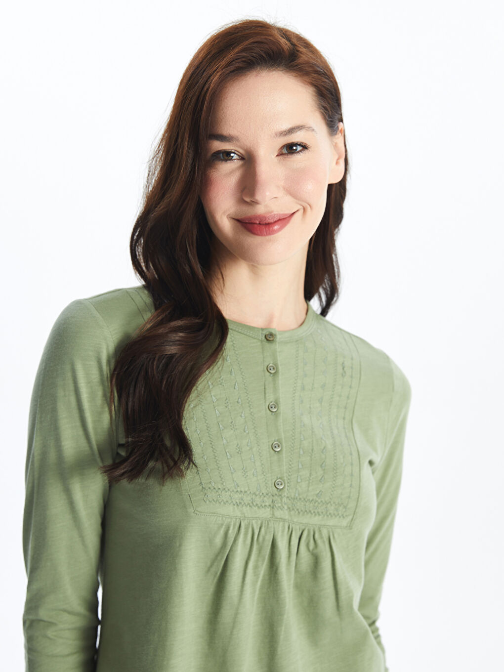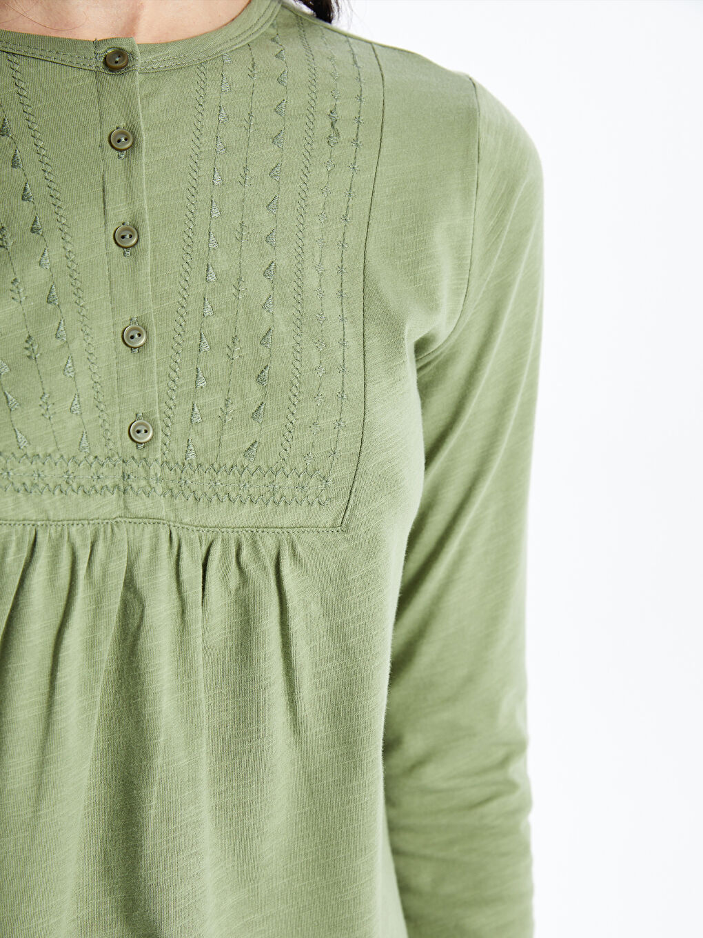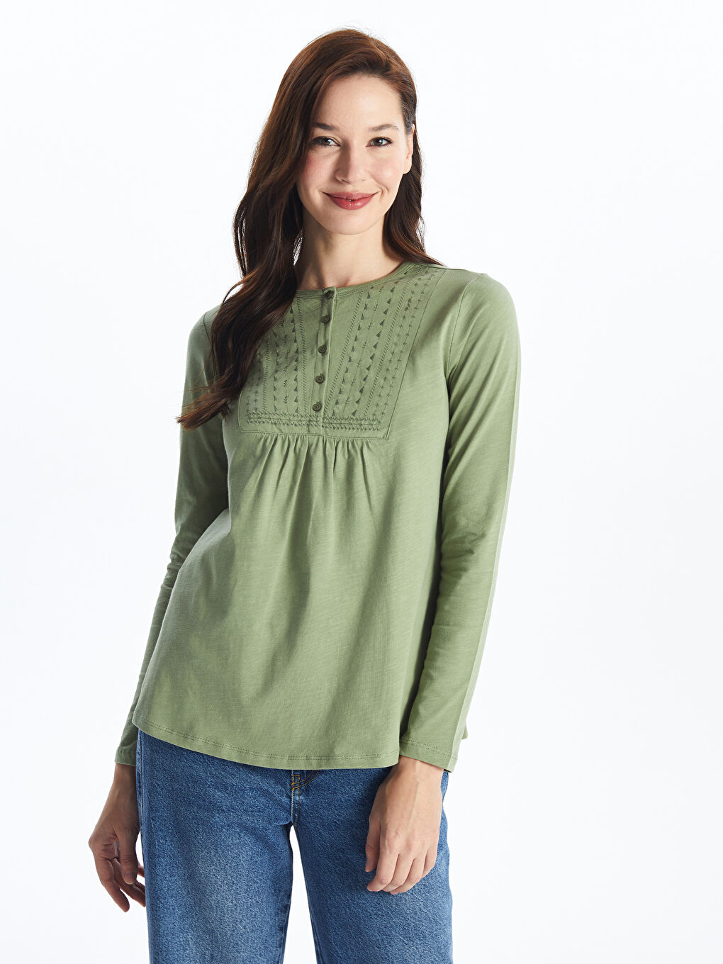 - نام : Bisiklet Yaka Nakışlı Uzun Kollu Kadın Bluz