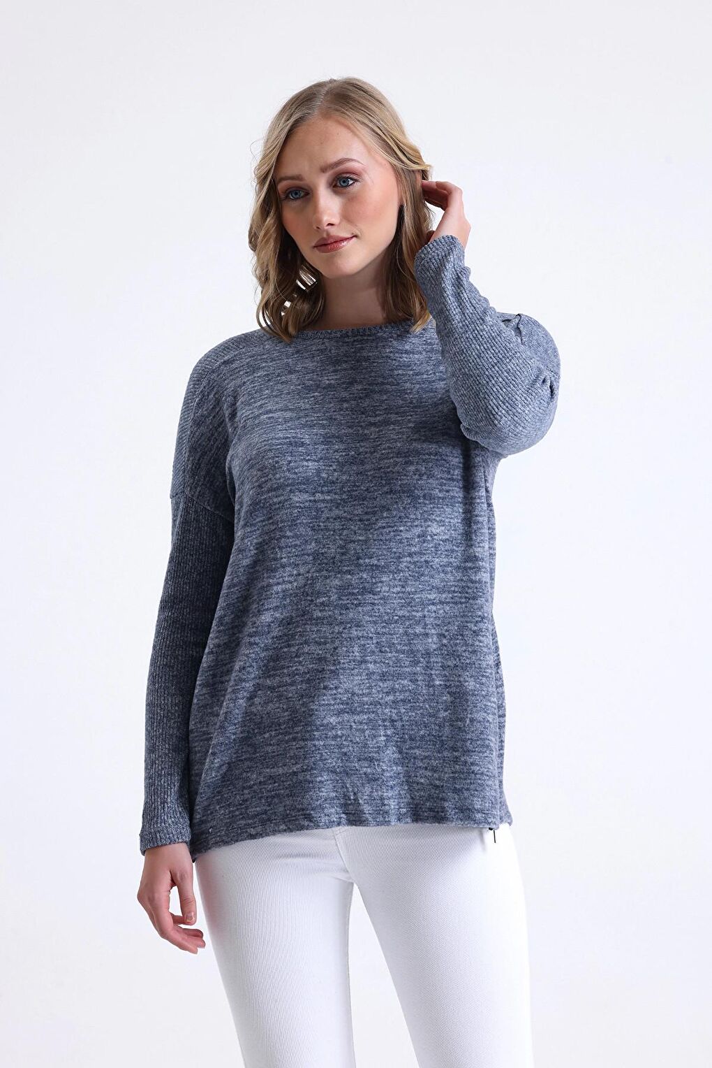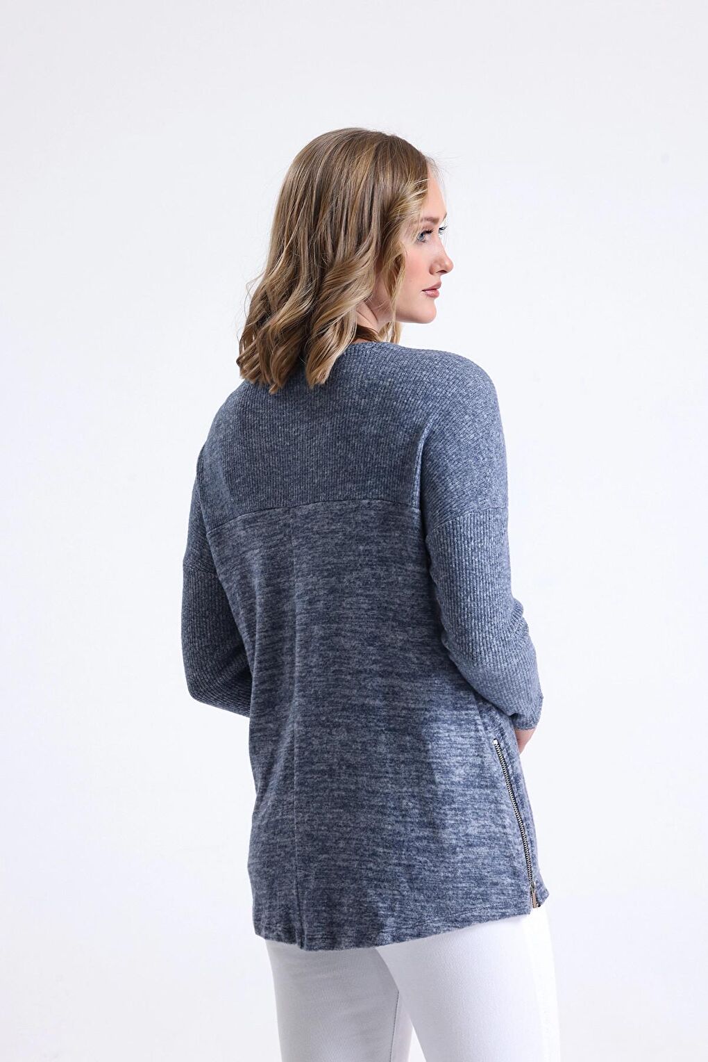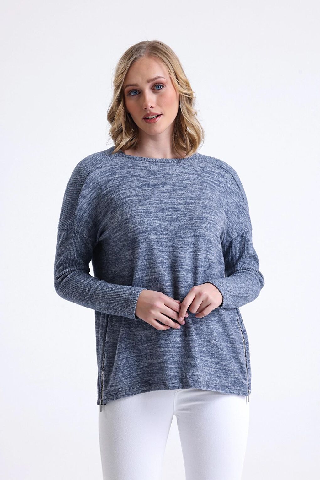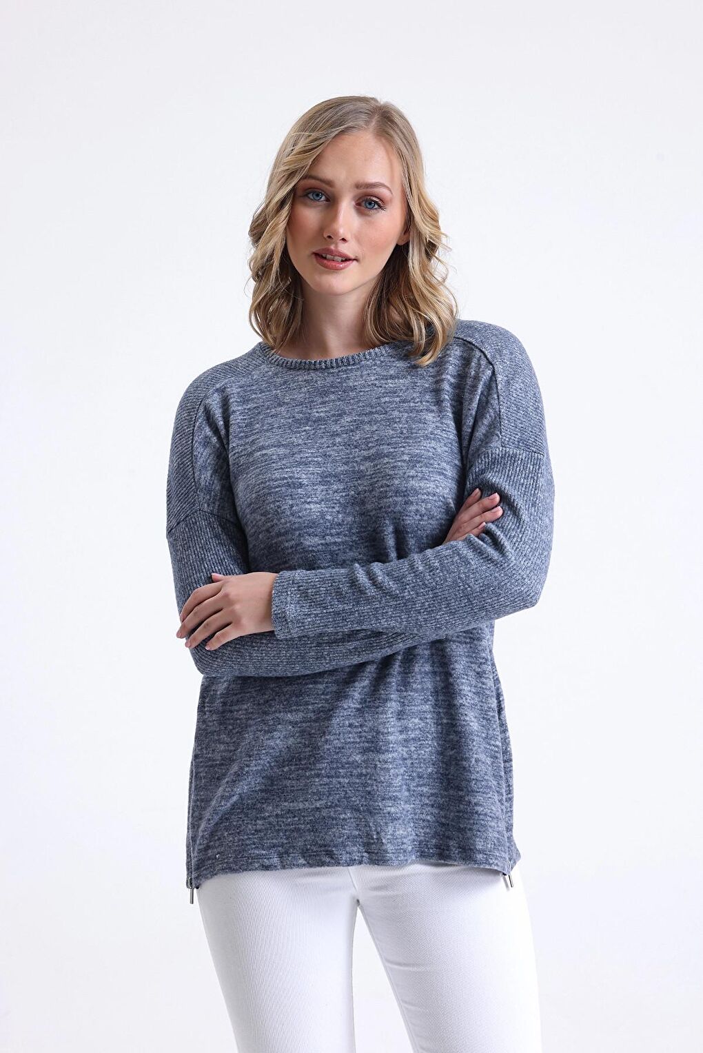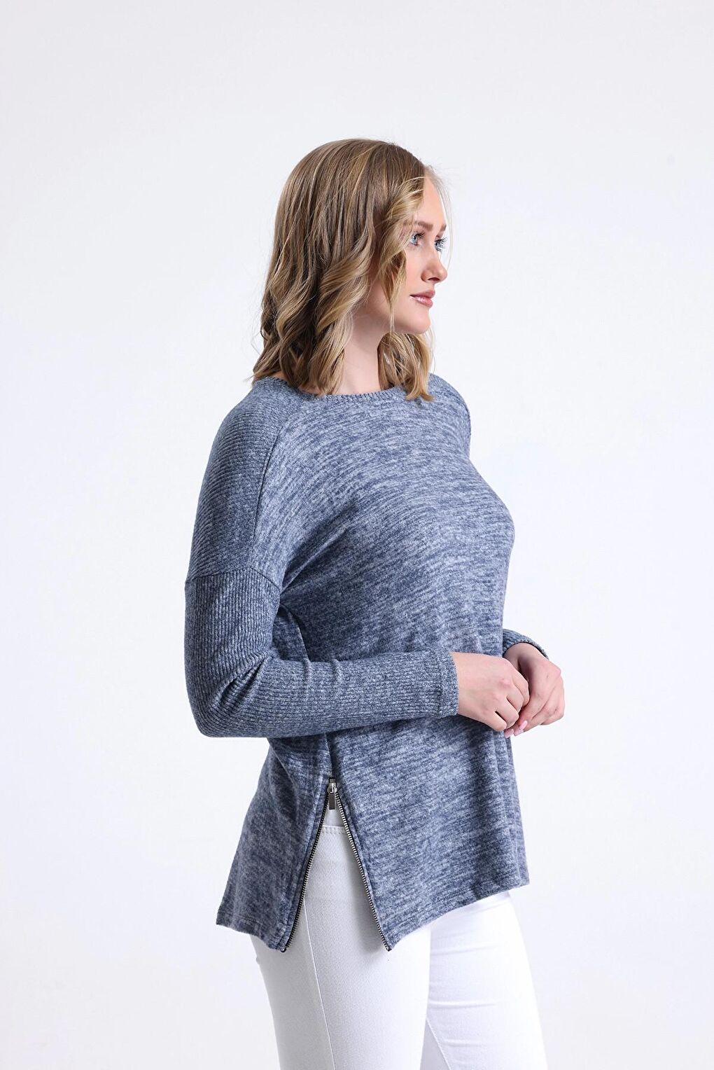 - نام : Yanları Fermuar Detaylı Bisiklet Yaka Uzun Kollu Mevsimlik Triko Bluz 20001403