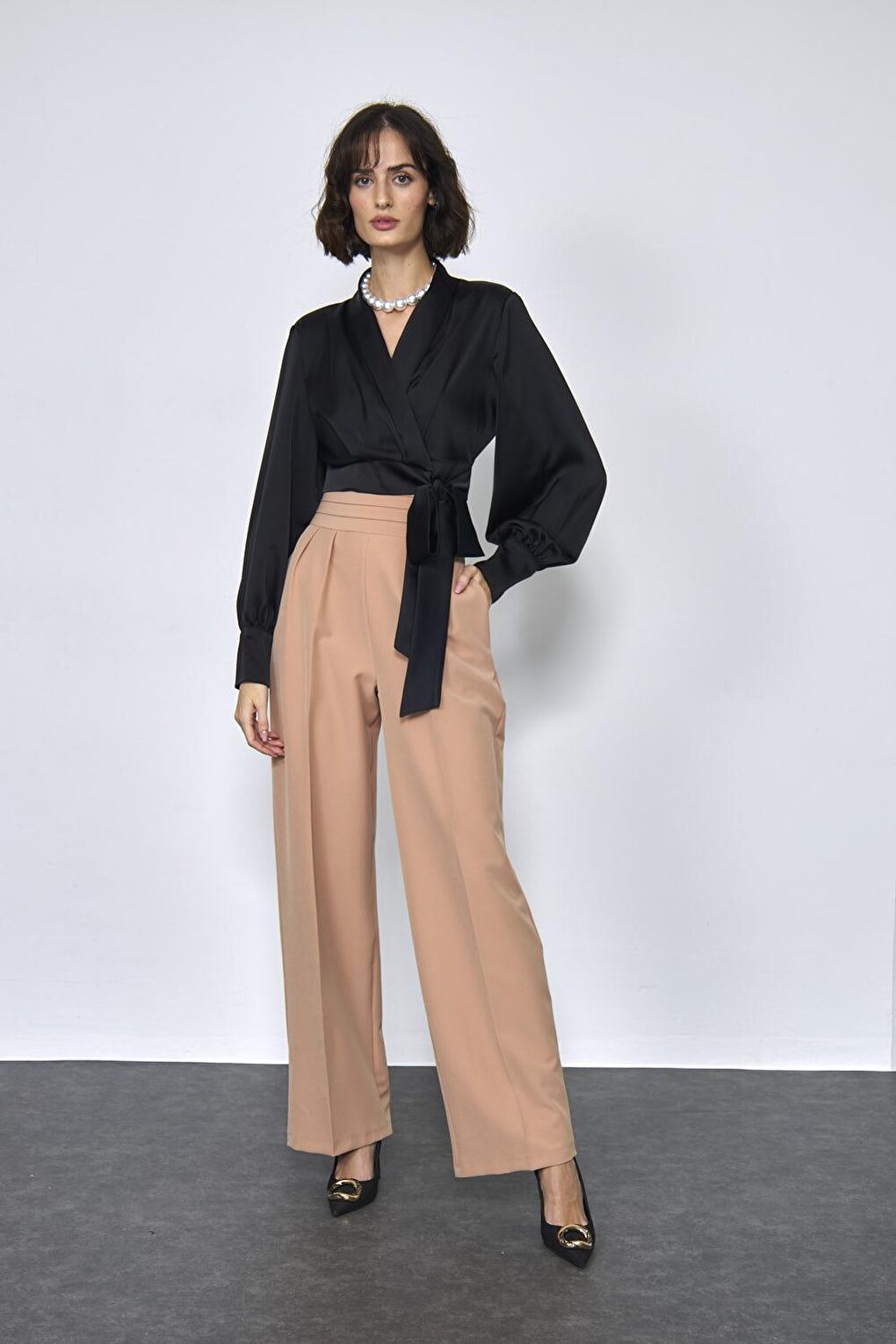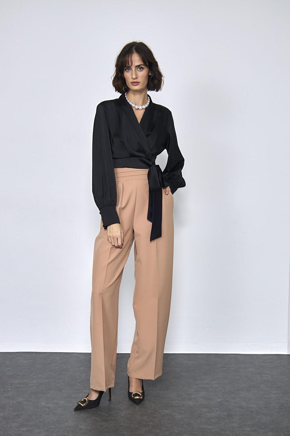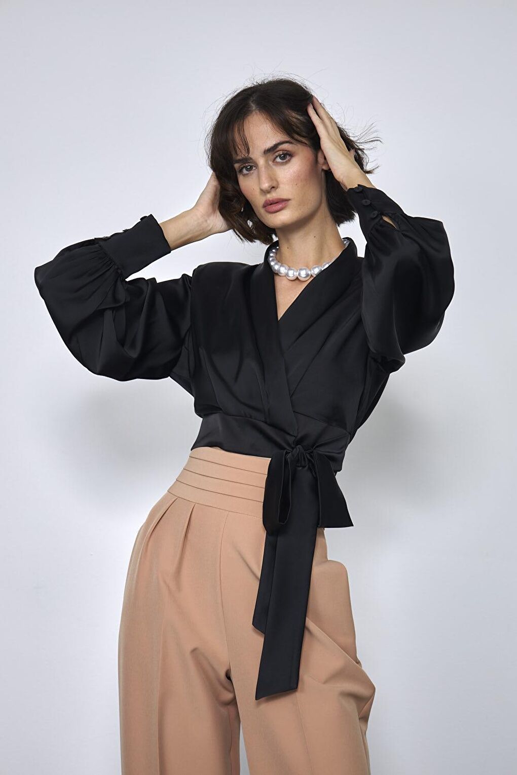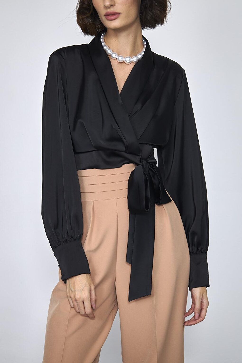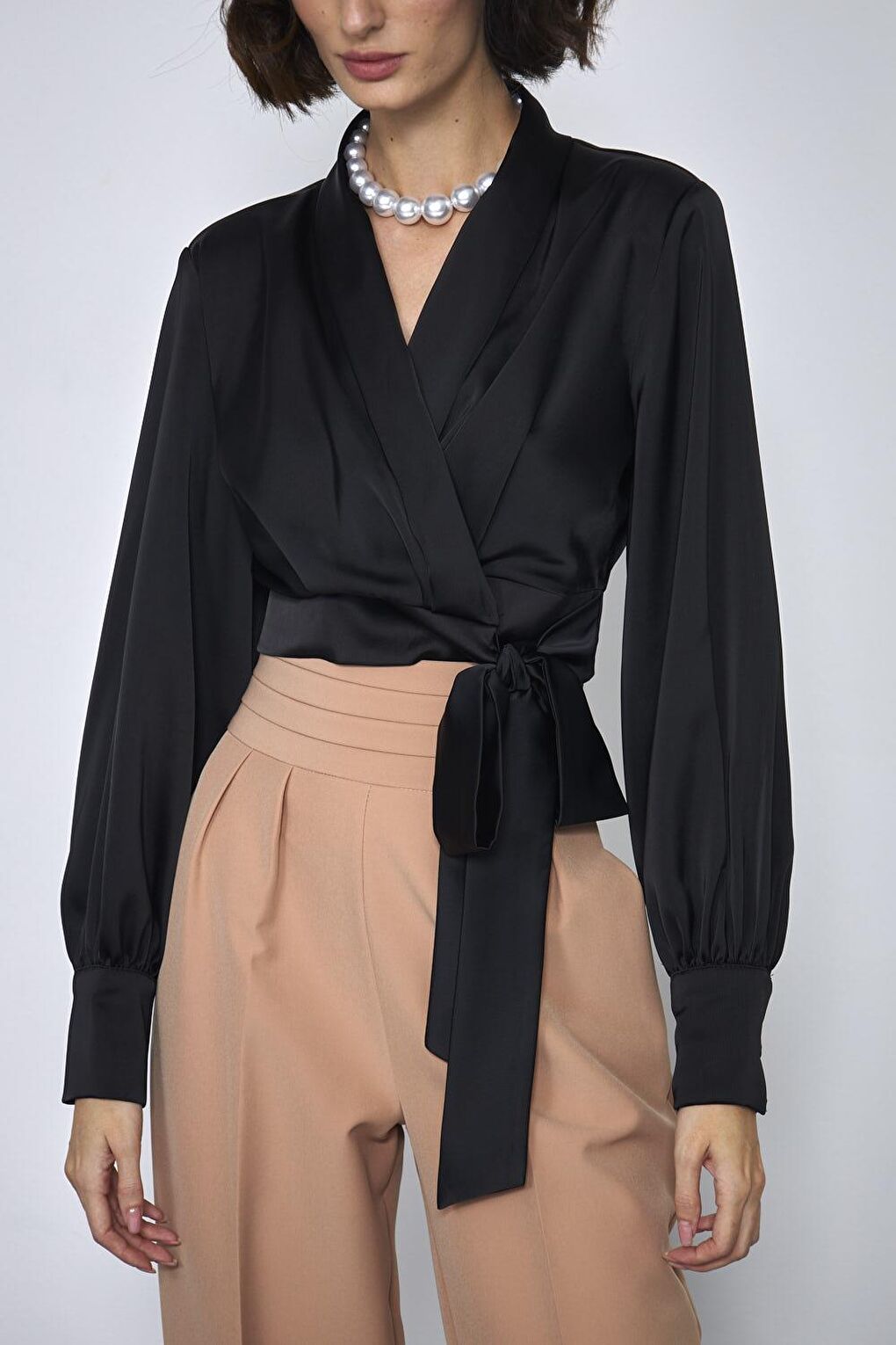 - نام : Kruvaze Yaka Saten Siyah Kadın Bluz