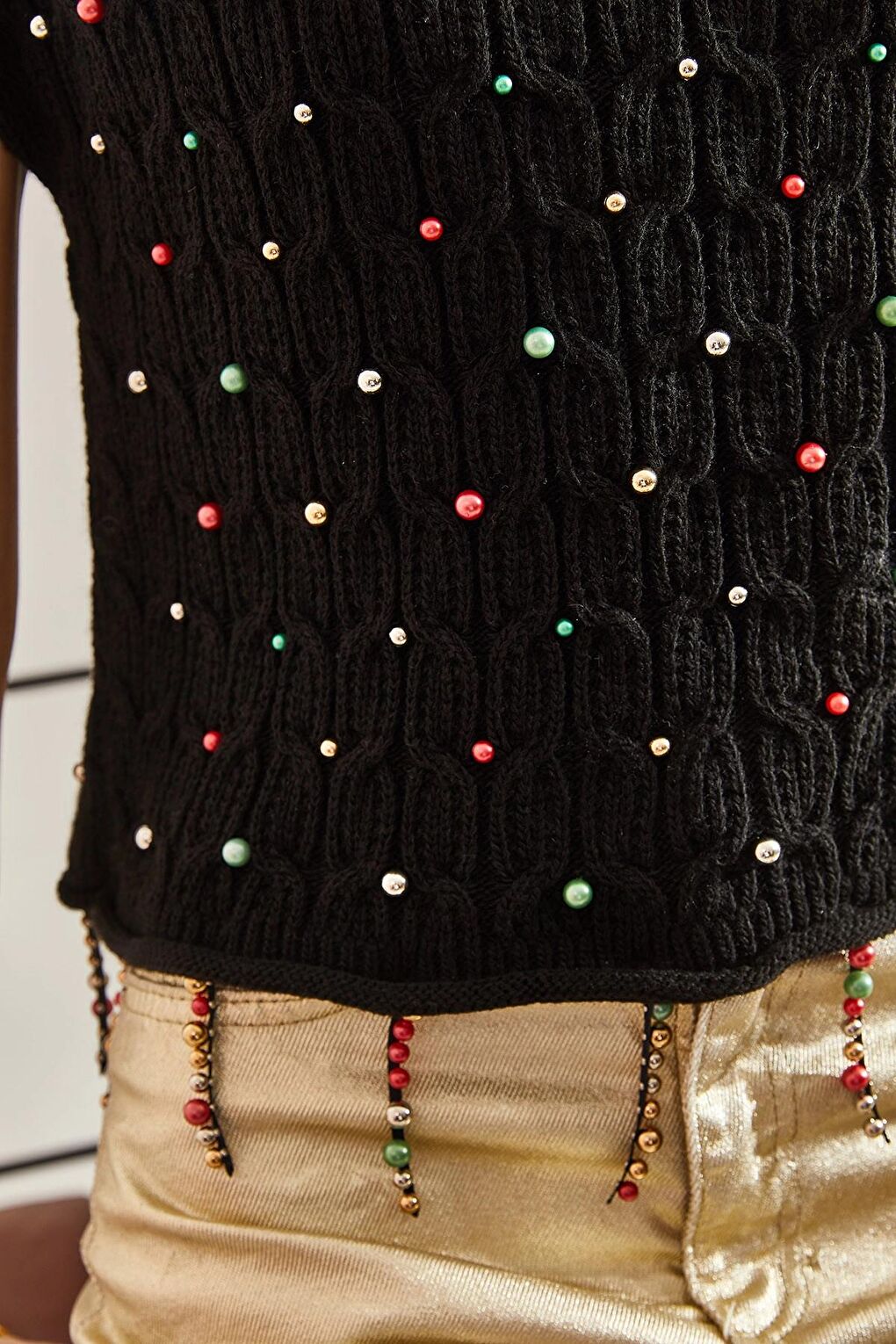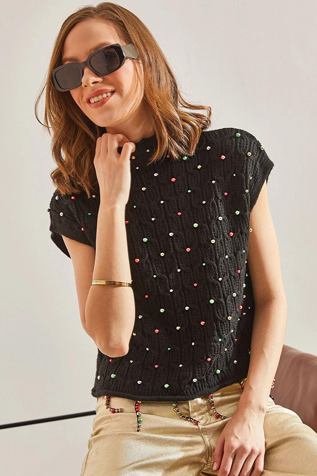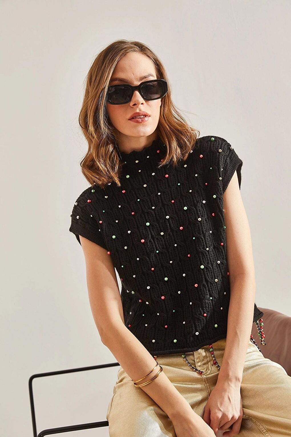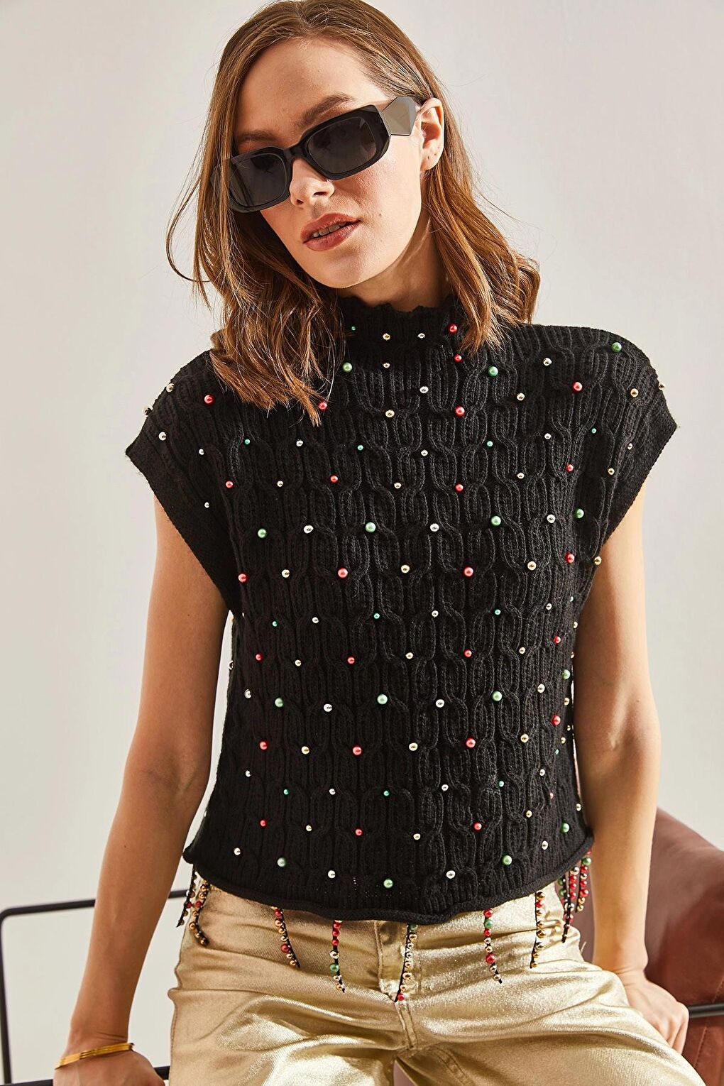 - نام : Lucci Kadın Saç Örgülü Taş İşlemeli Triko Bluz