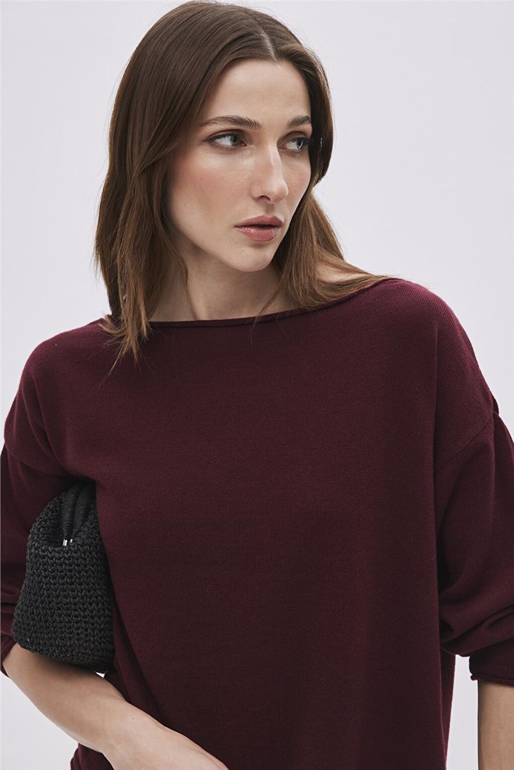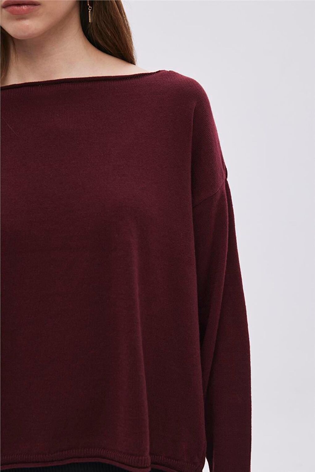 - نام : Bordo Kayık Yaka Basic Triko Kazak