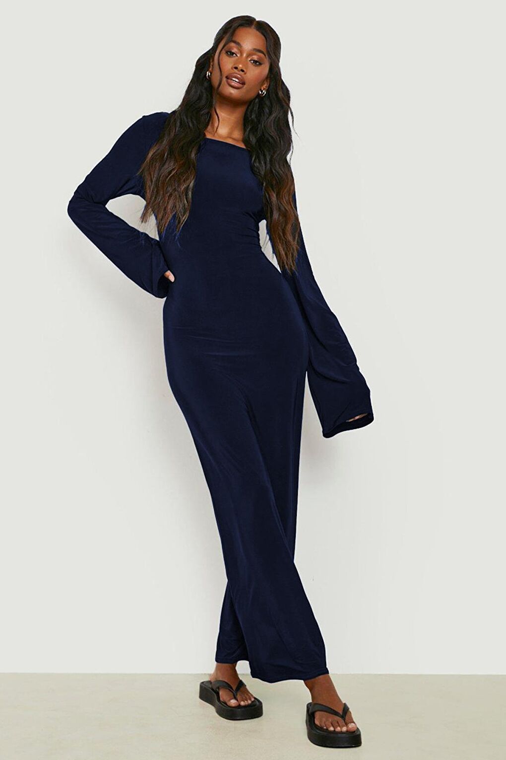 - نام : Lacivert Kayık Yaka Sırt Detaylı Maxi Uzun Elbise MG1993
