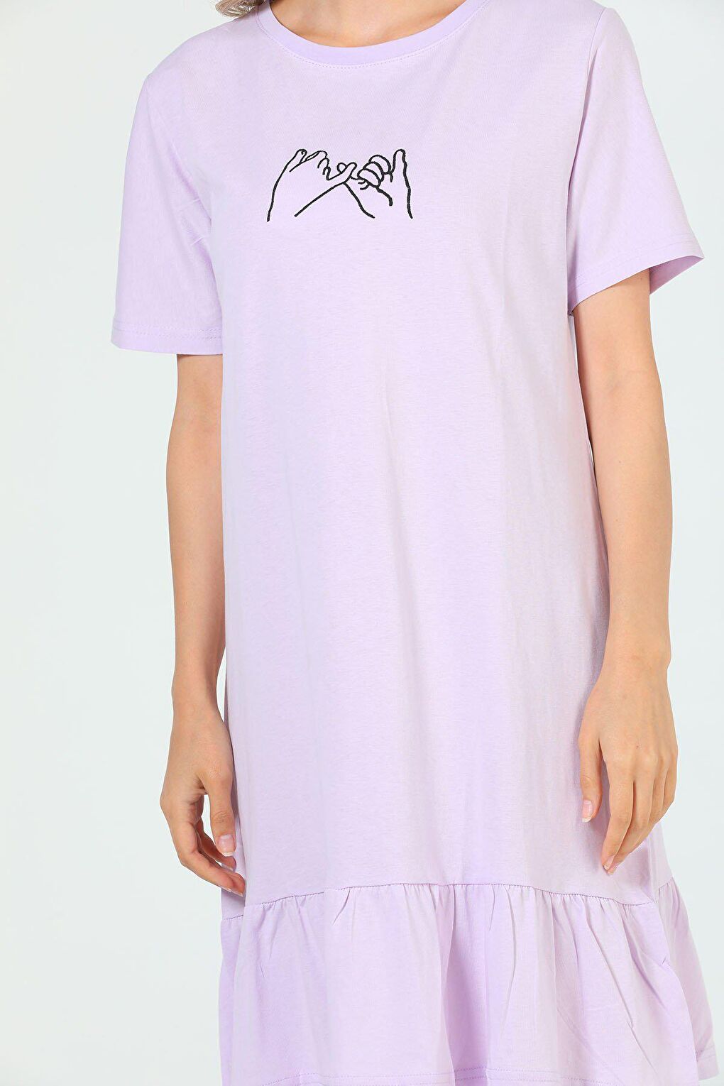 - نام : Kadın Bisiklet Yaka Nakış Detaylı Fırfırlı Elbise