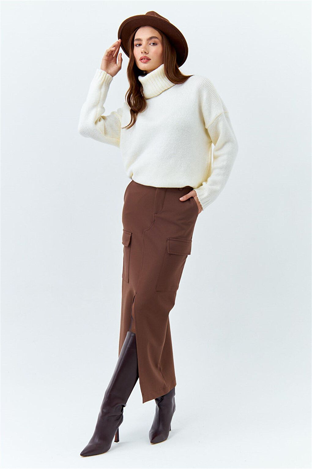 - نام : Yırtmaç Detaylı Maxi Boy Kahverengi Kargo Etek