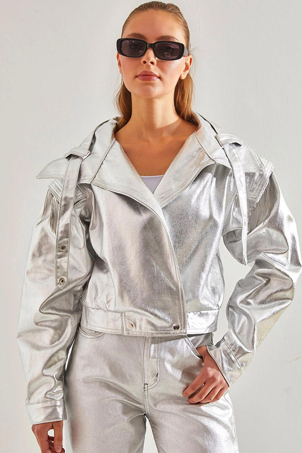 - نام : Kadın Yaka Kemer Detay Metalik Varaklı Gabardin Ceket 2338 60141010
