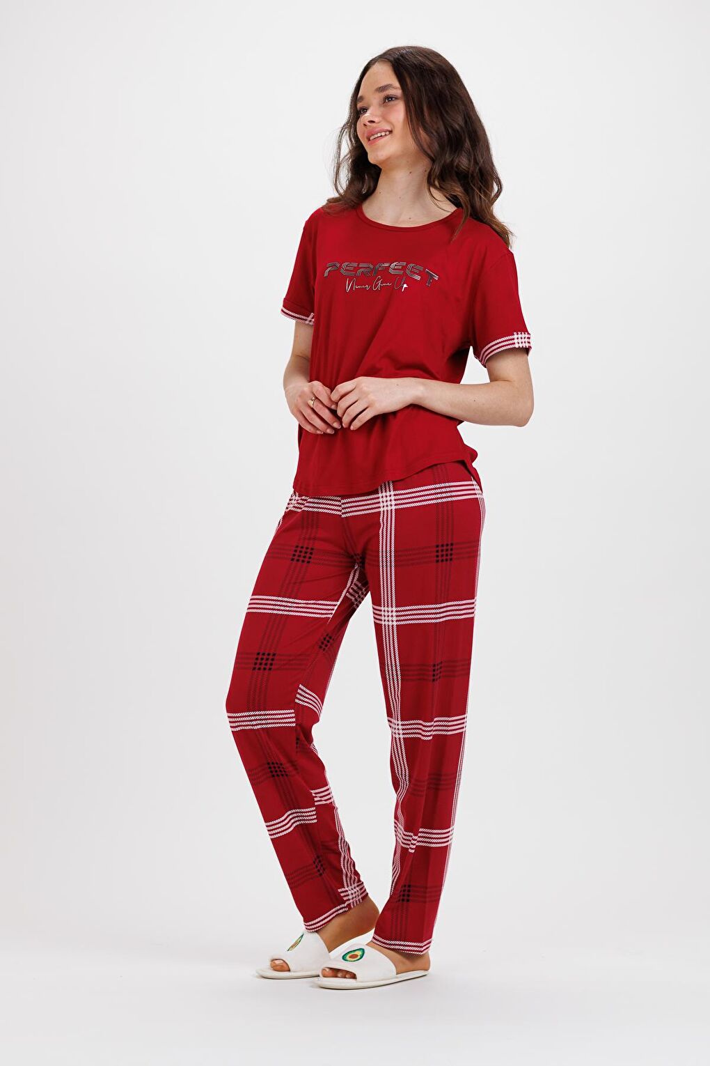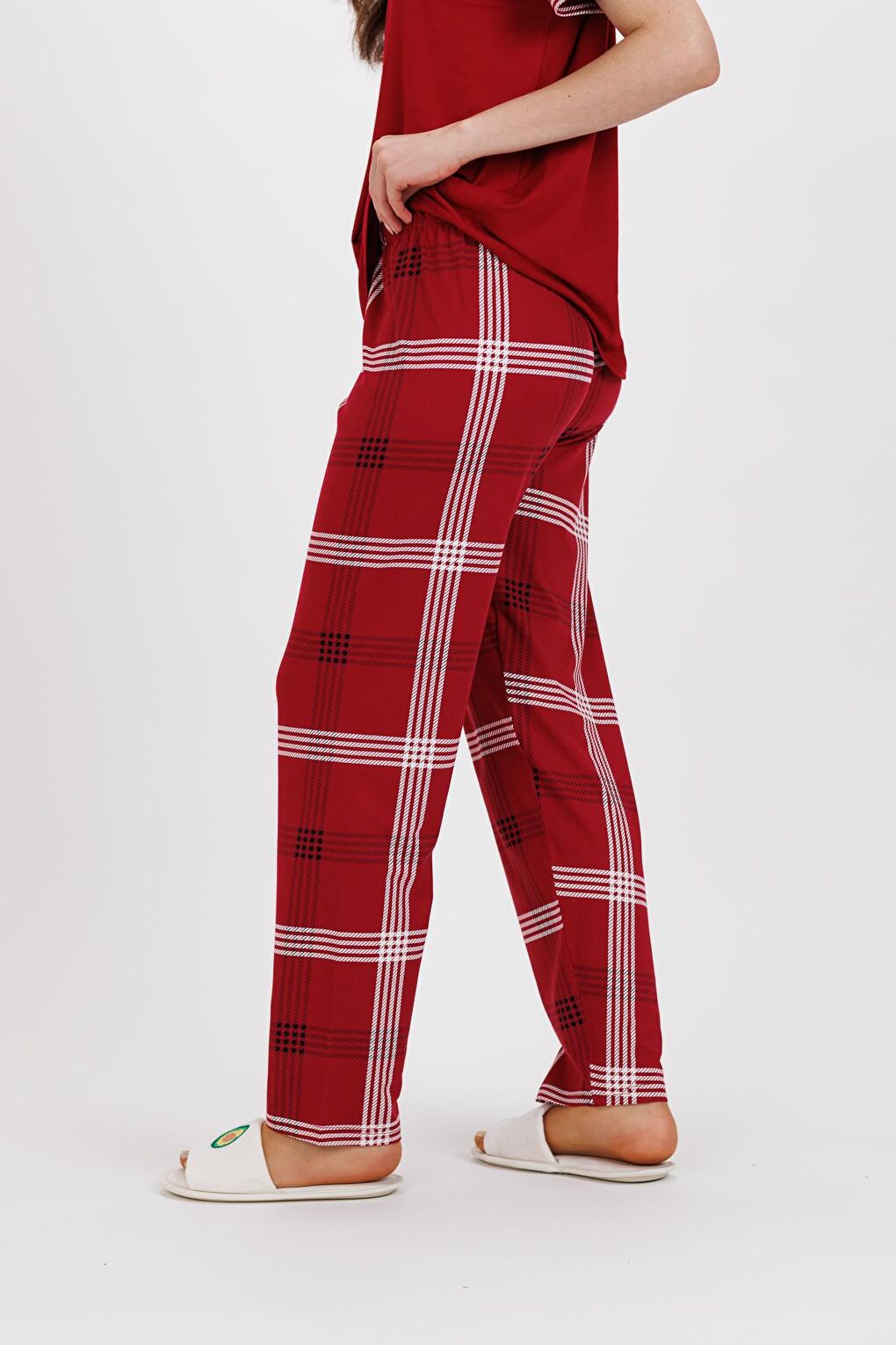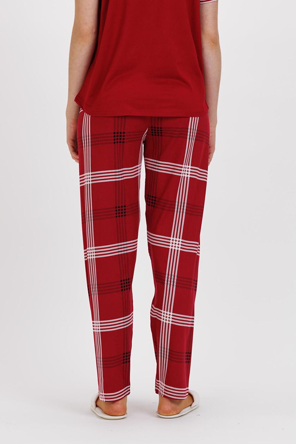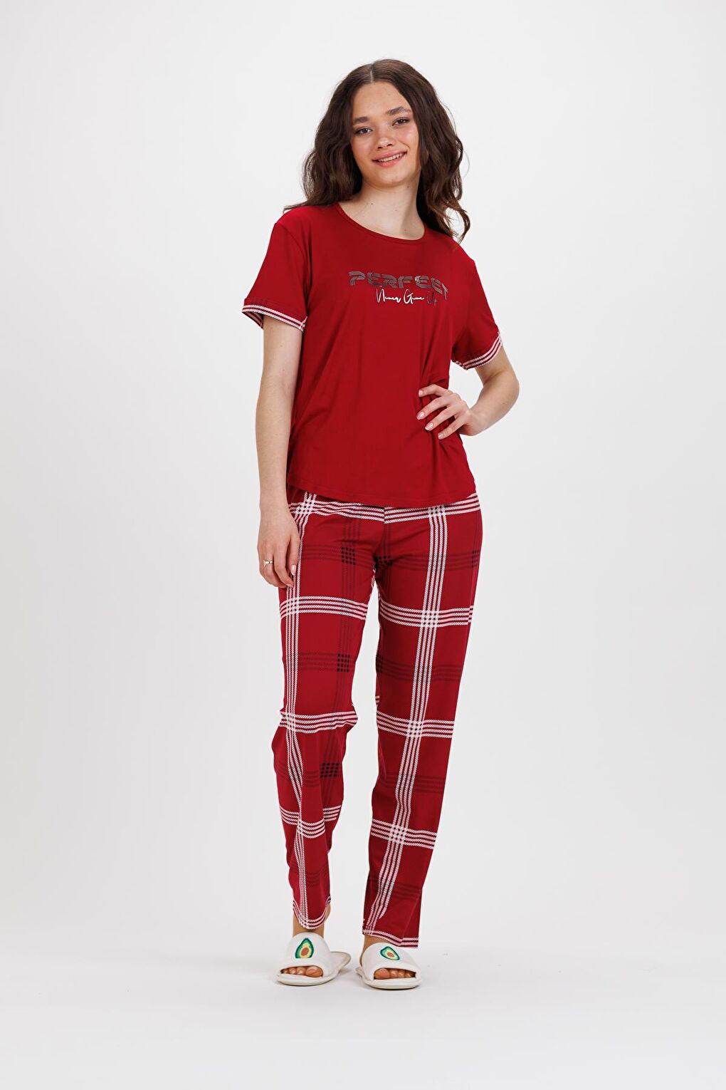 - نام : Kadın Bordo Ekose Alt Pudra T.Shırt Baskılı 2Li Pijama Takım