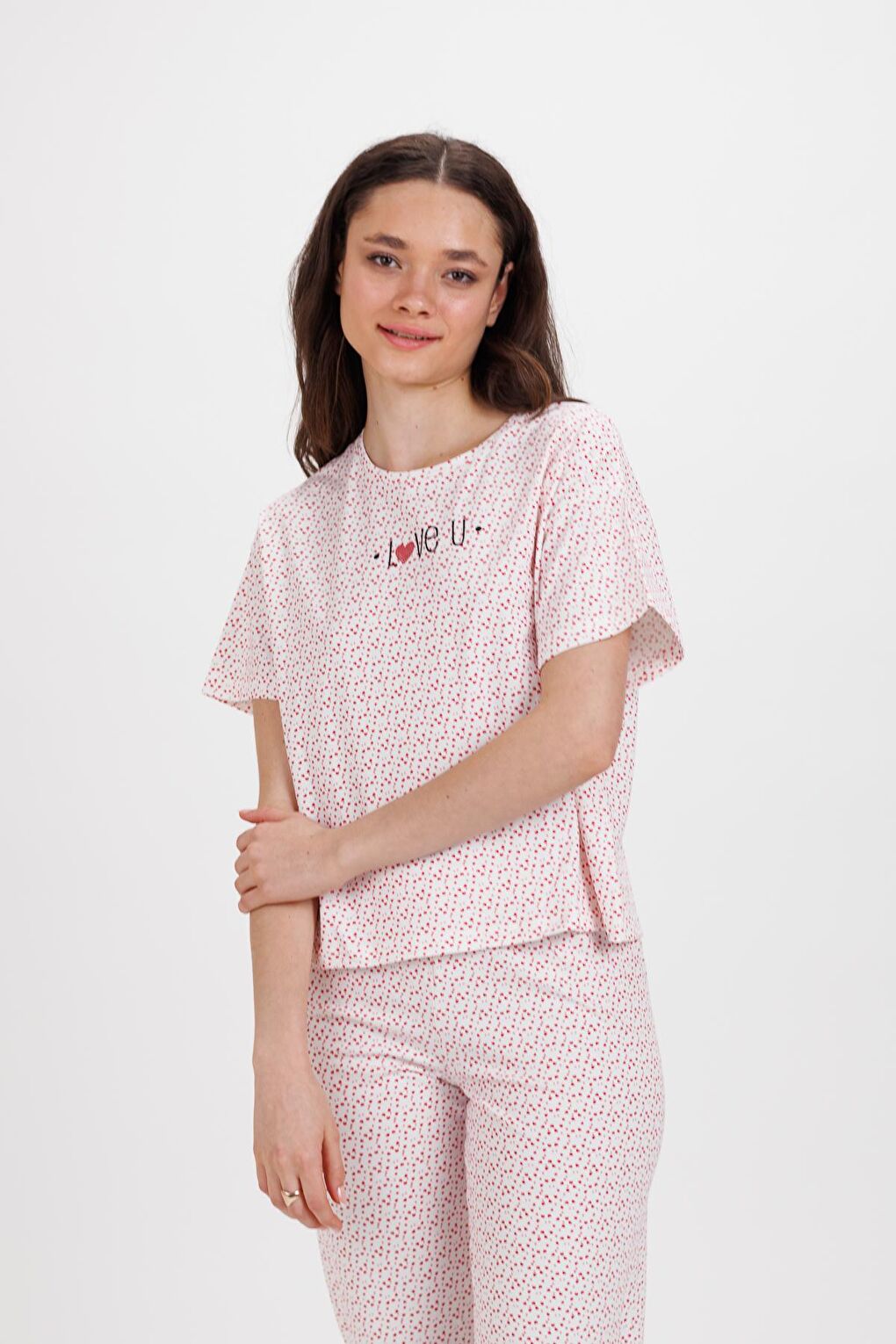- نام : Kadın Kırmızı Küçük Kalpli Pantolon Pijama 2Li Takım
