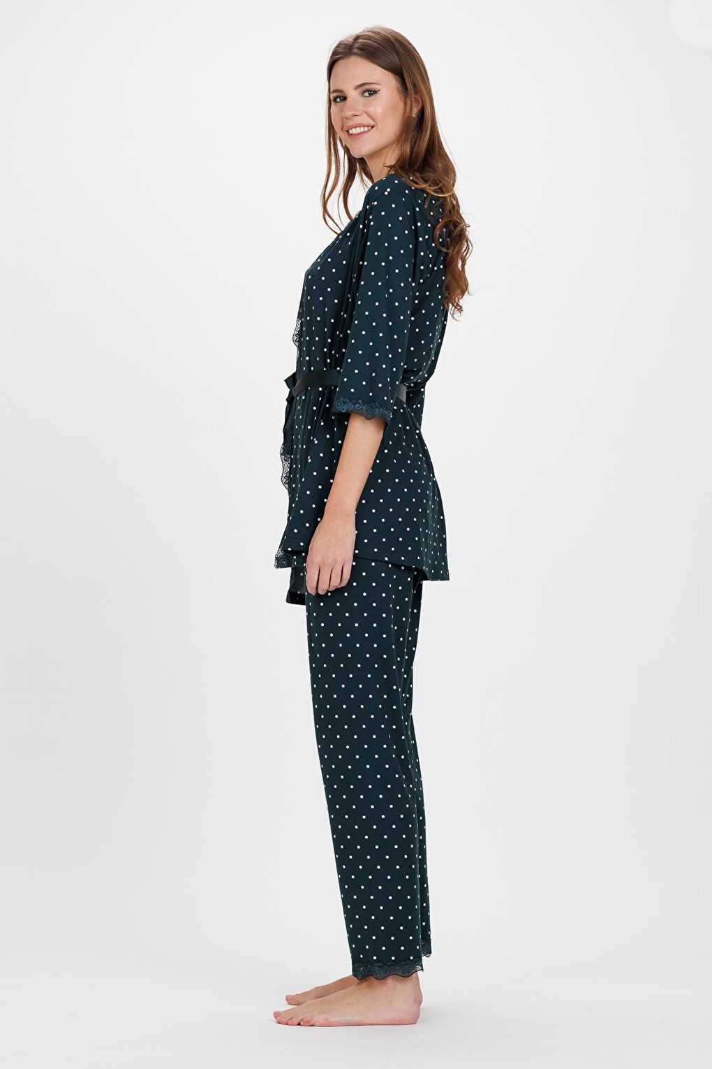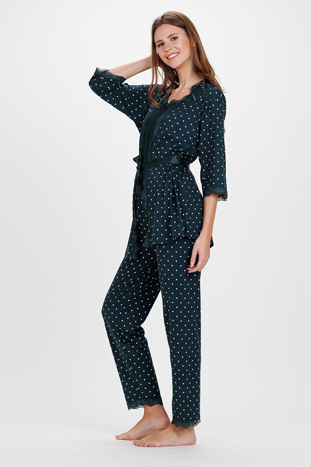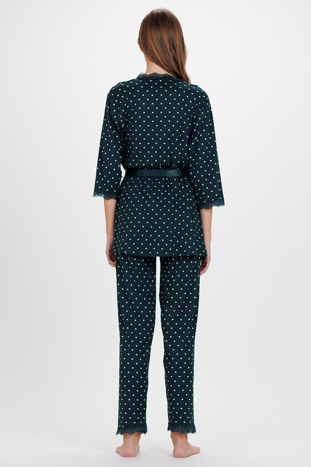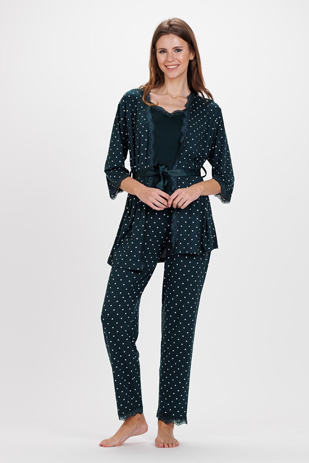 - نام : Kadın Zümrüt Puanlı İp Askılı Truvakar Kol Uzun Alt 3Lü Pijama Takım
