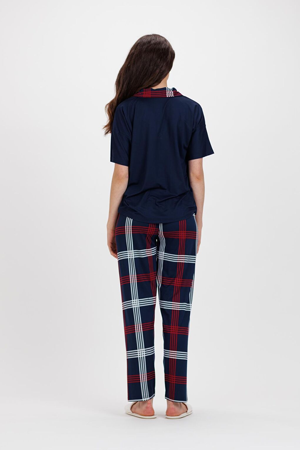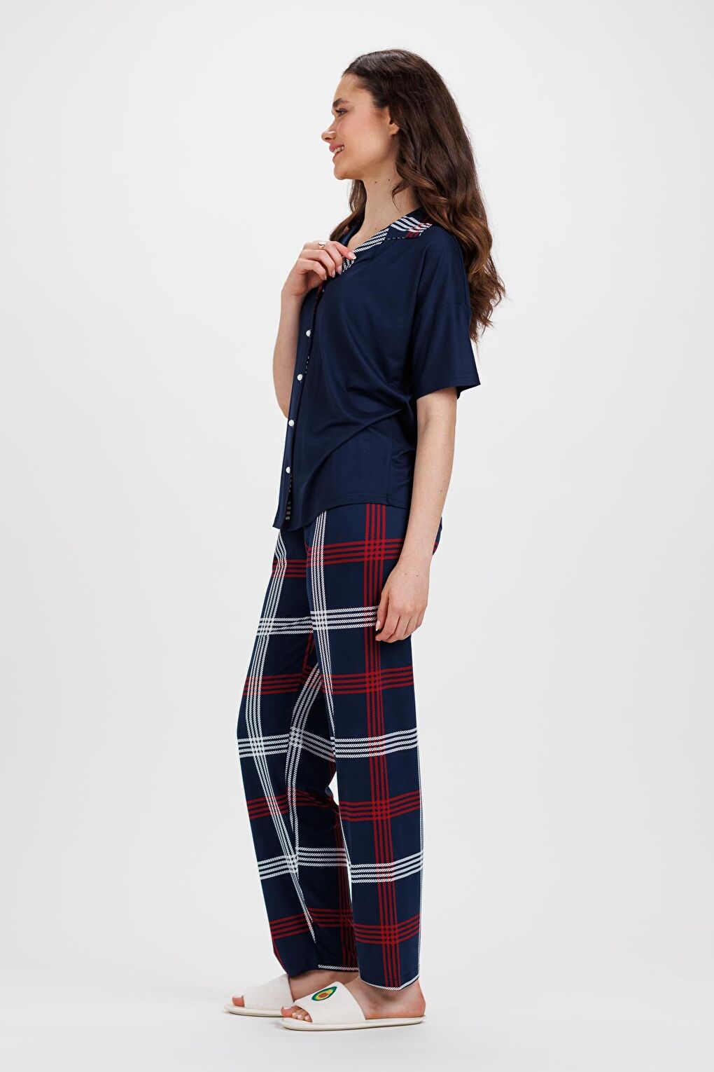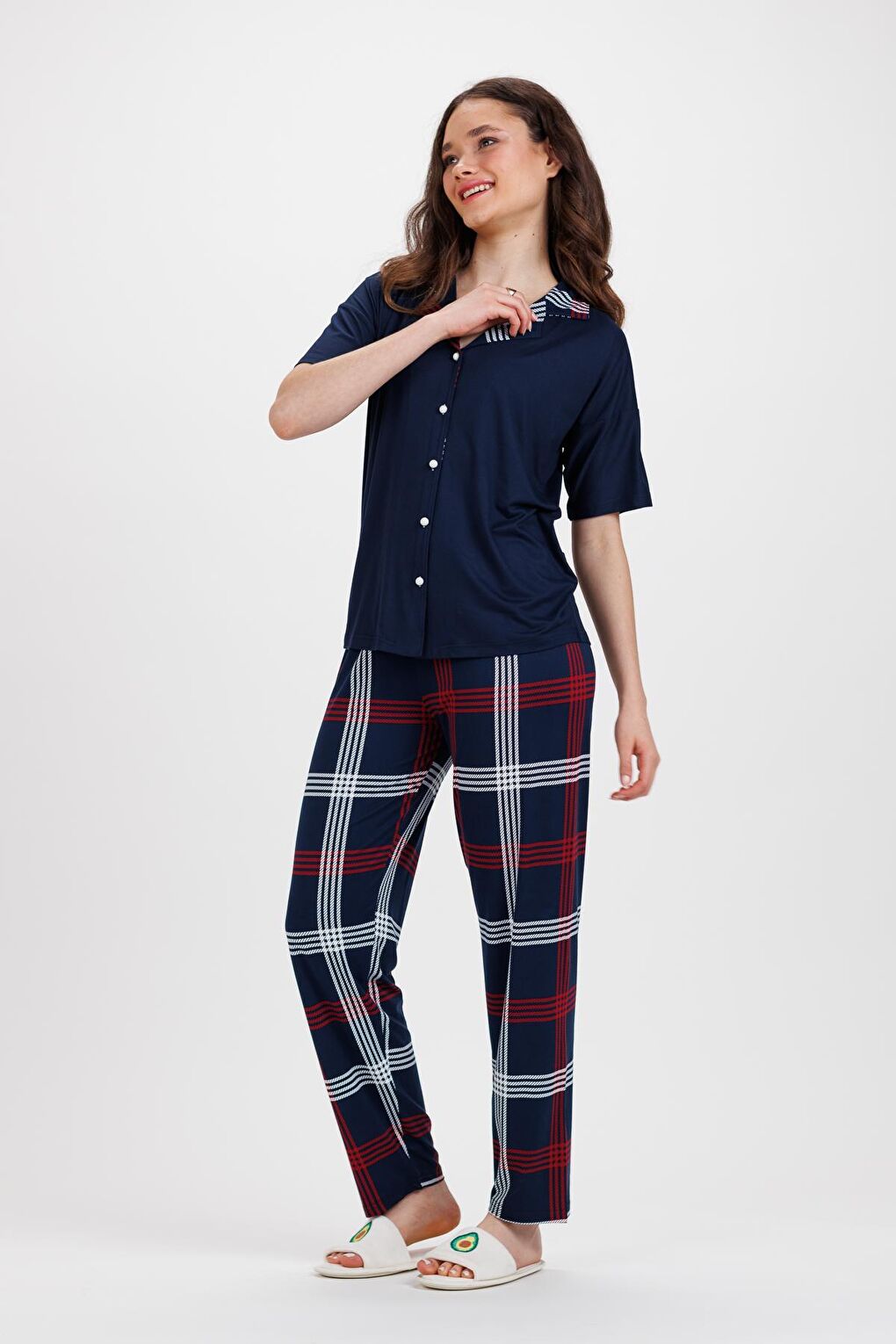 - نام : Kadın Laci Ekose Bebe Yaka Düğmeli Uzun Alt Pijama Takım
