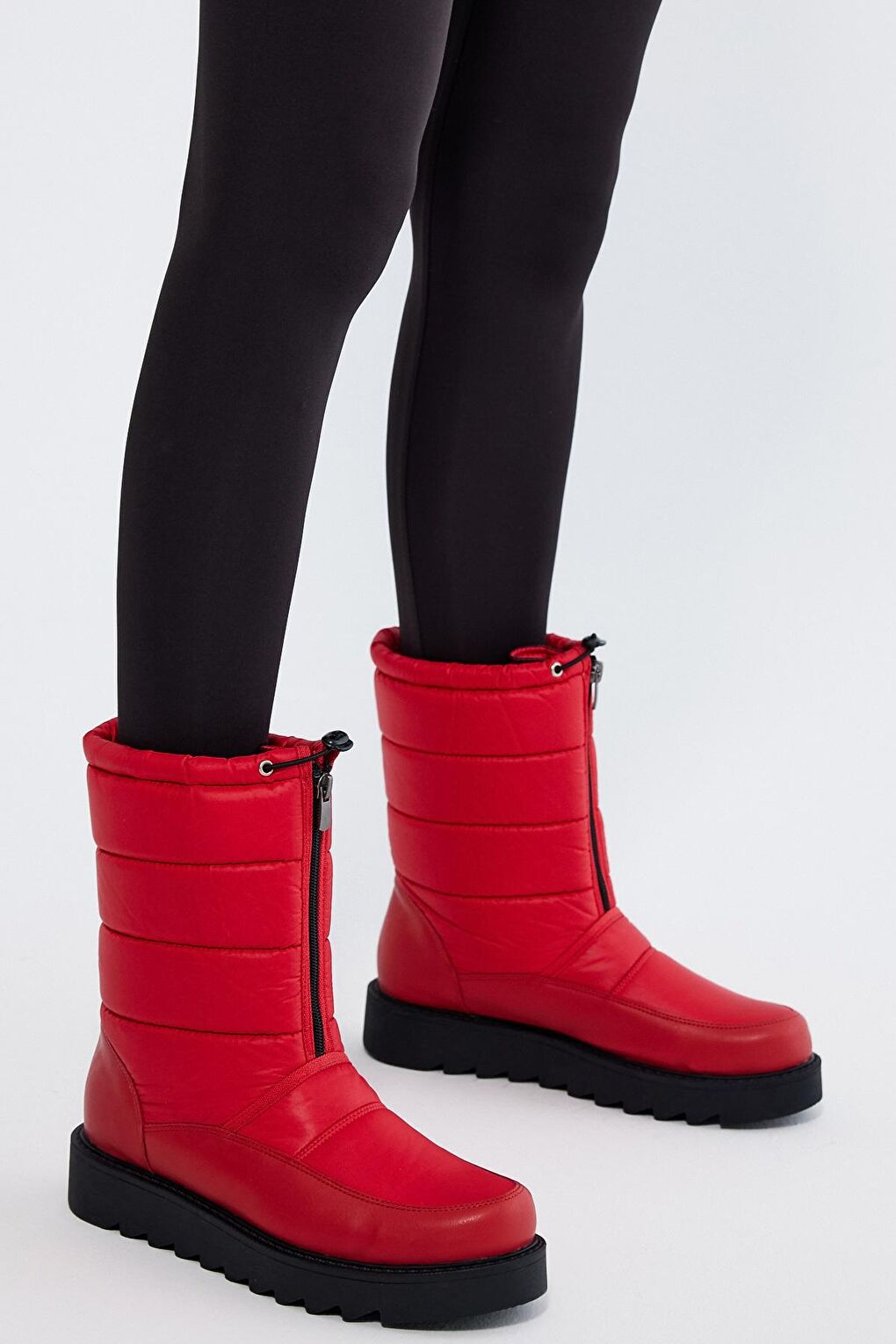 - نام : Kadın Kırmızı Rahat Kalıp Önü Fermuarlı ve Lastikli İçi Kürklü Kar Botu