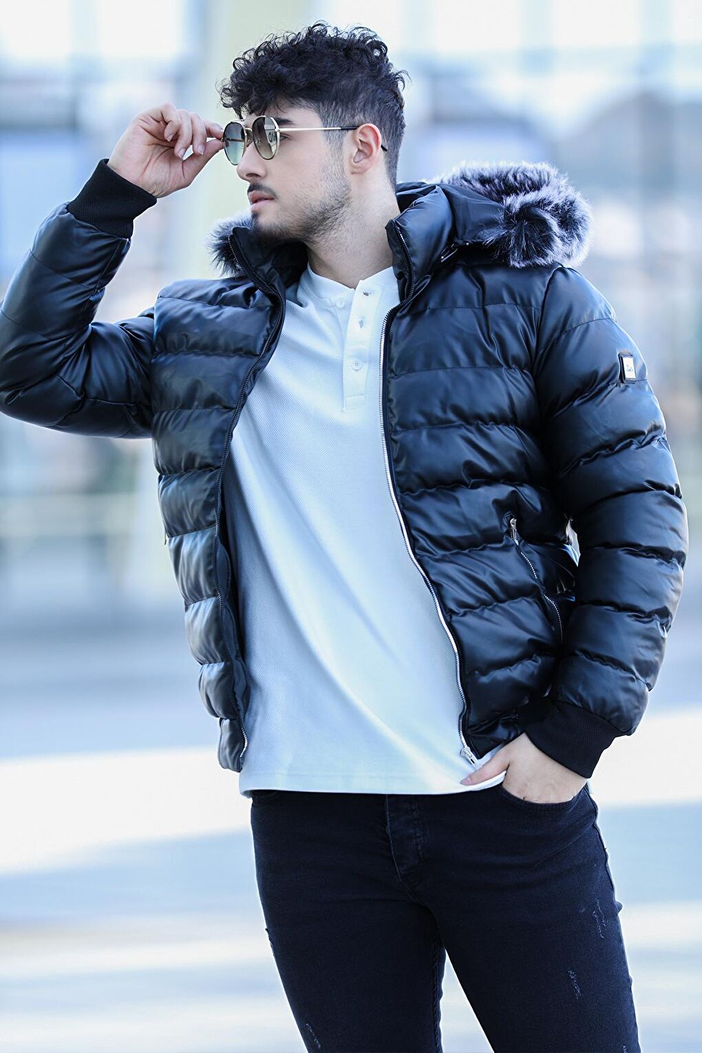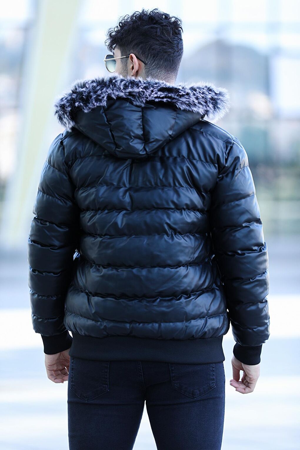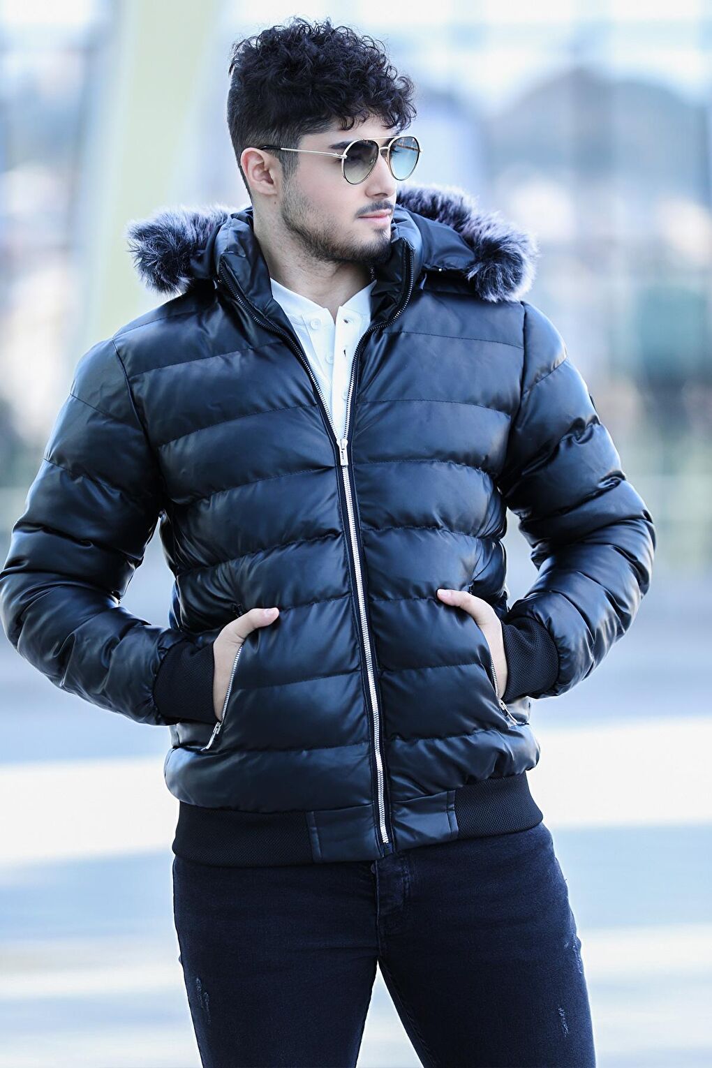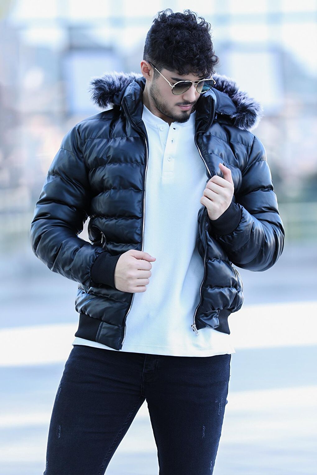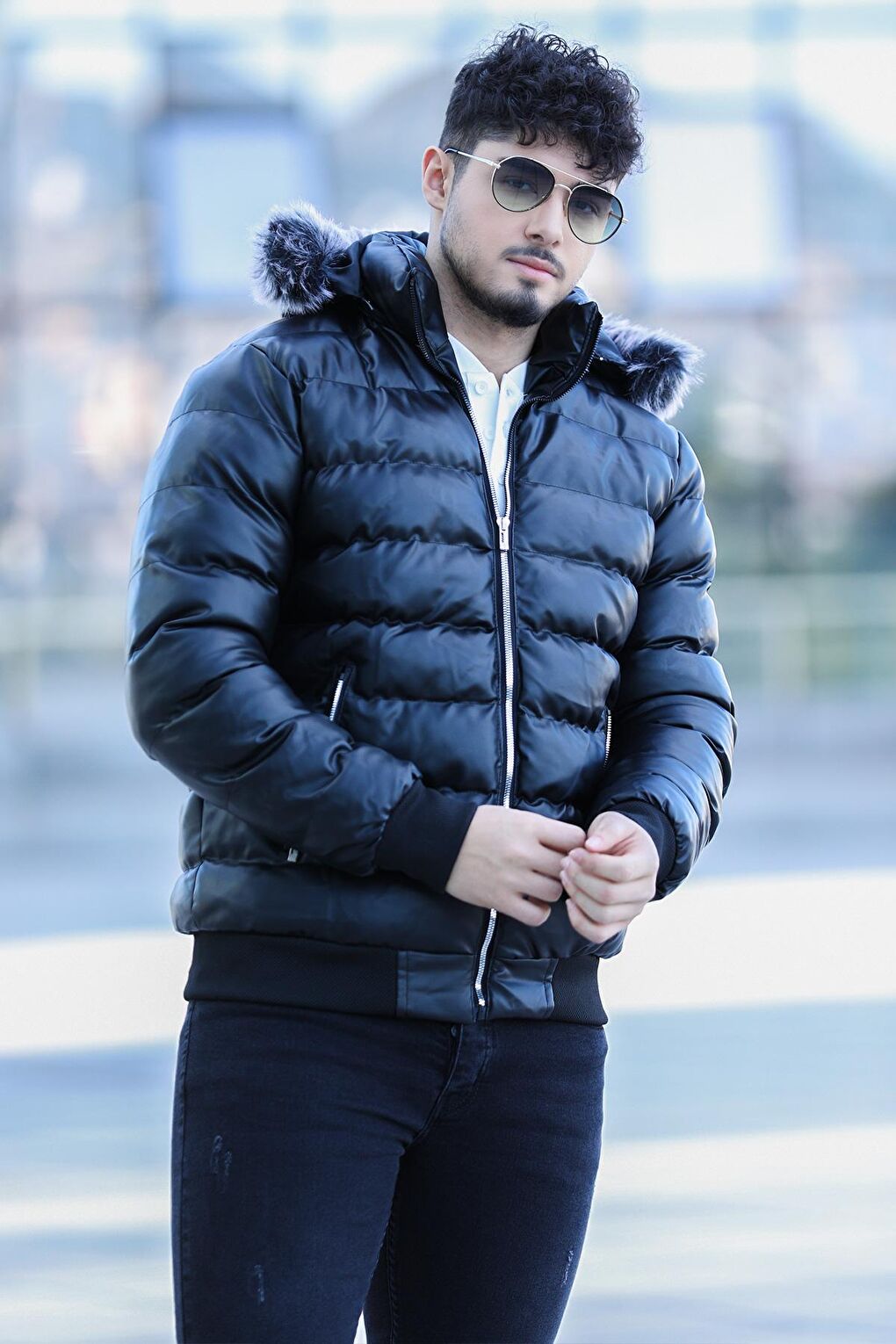 - نام : Erkek Kapüşonu Kürk Detaylı Şişme Deri Mont