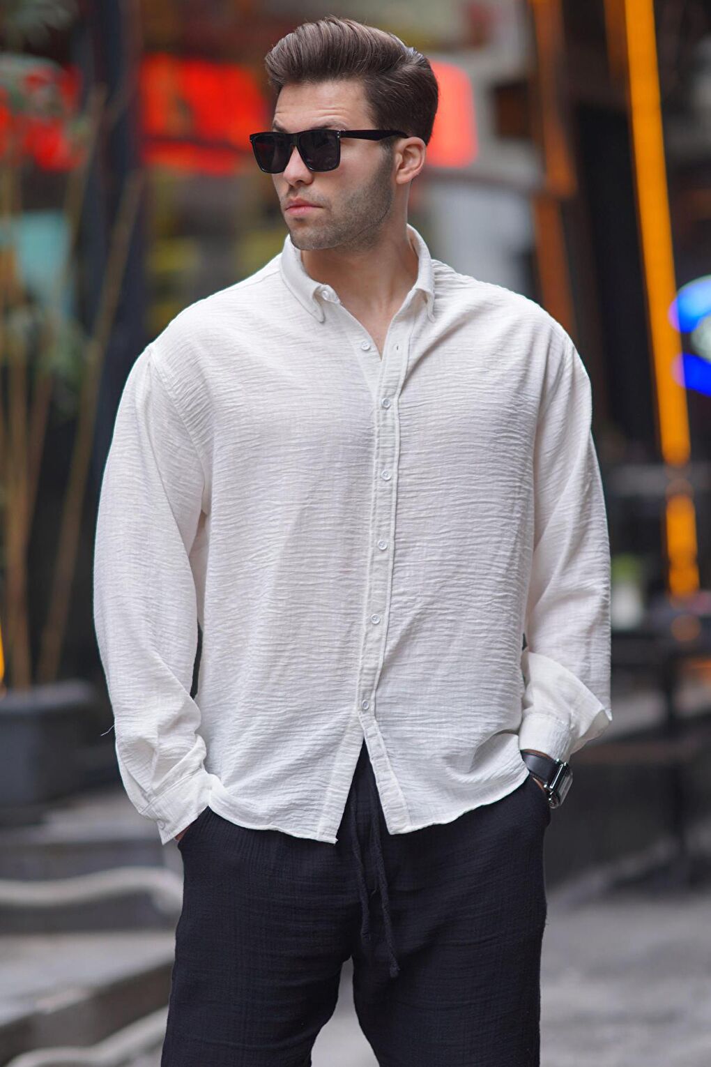 خرید اینترنتی پیراهن آستین بلند مردانه سفید برند Madmext S000156755