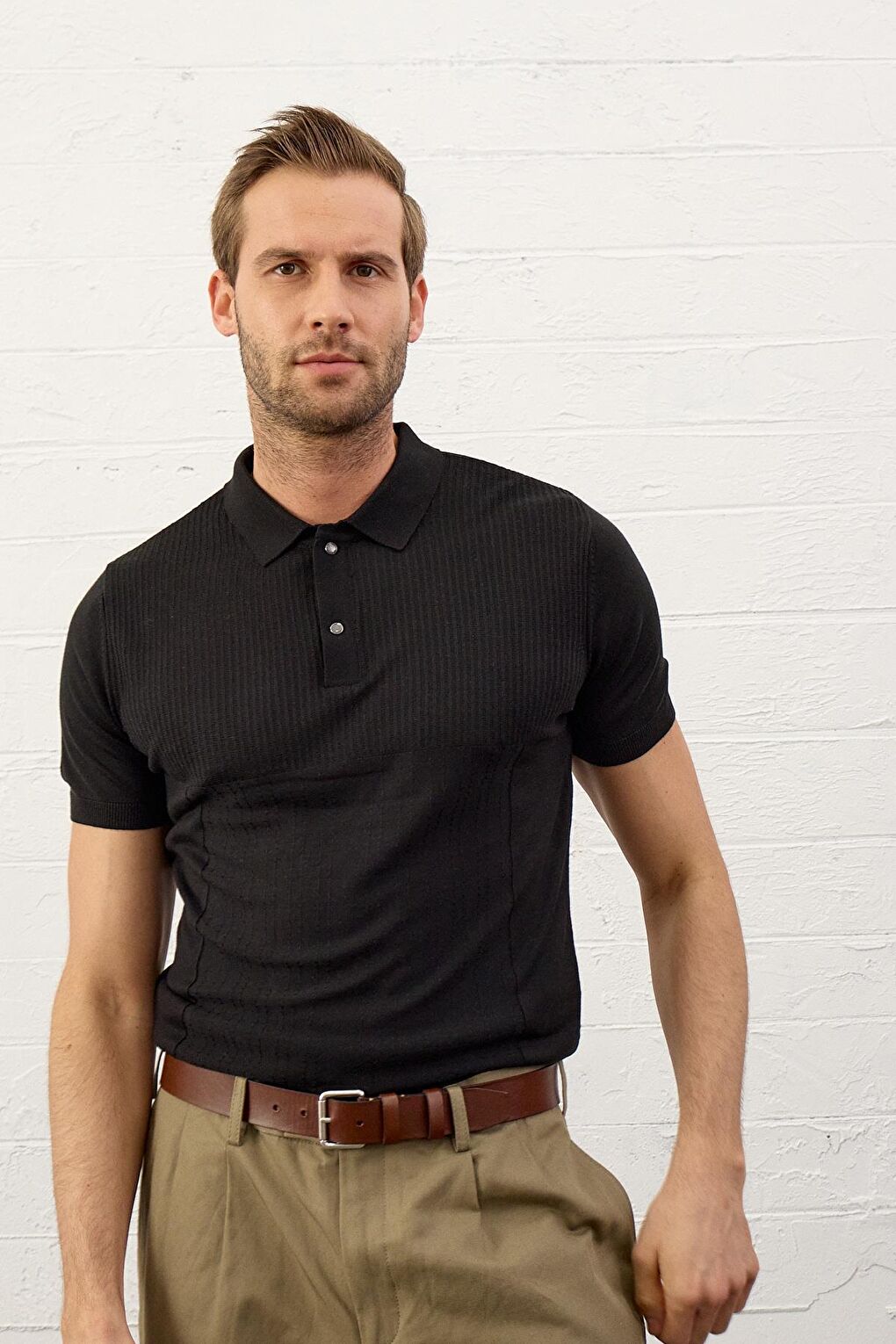- نام : Erkek Slim-Fit Yazlık Triko T-shirt Siyah