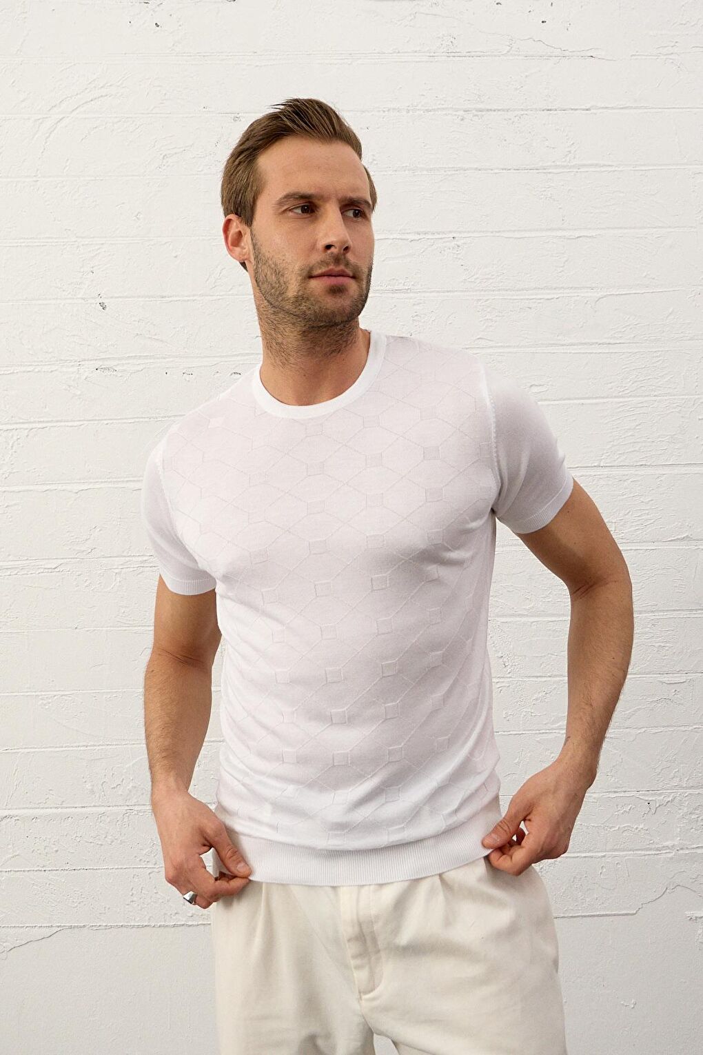 - نام : Erkek Kare Desenli Slim-Fit Kalıp Yazlık Triko T-shirt Beyaz