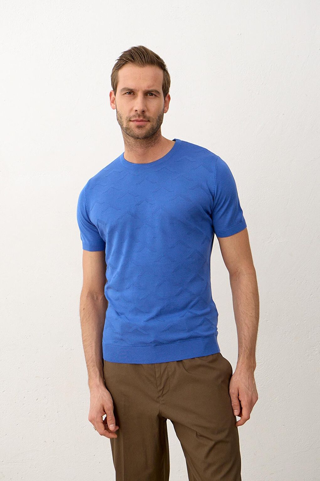 - نام : Erkek Bisiklet Yaka Slim-Fit Yazlık Triko TişörtSaks