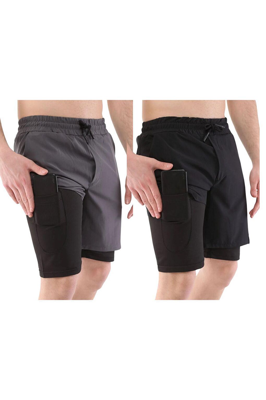 - نام : 2'li Kısa Taytlı Outdoor Erkek Şort Siyah-Füme