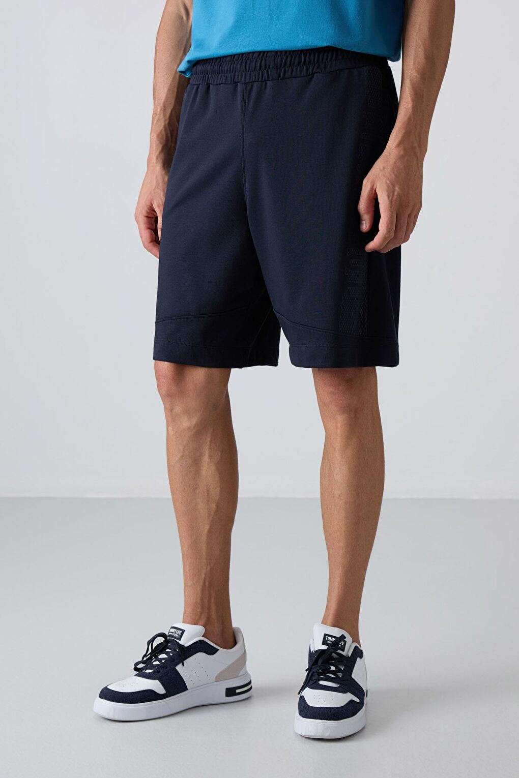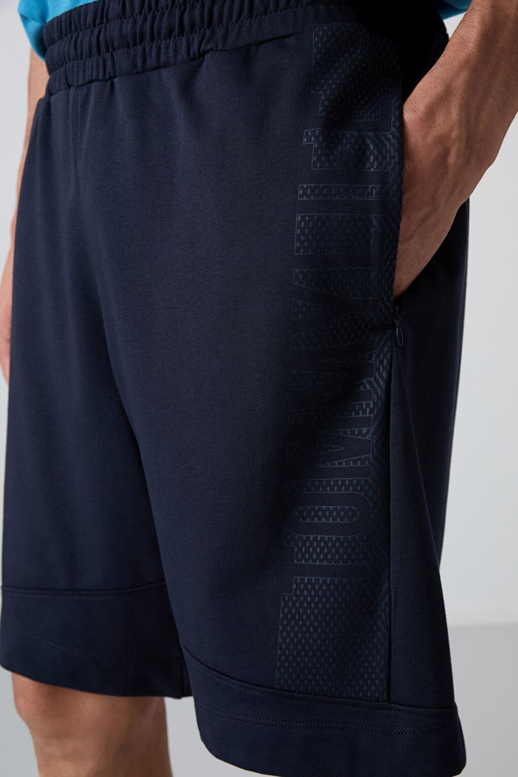 - نام : Lacivert Pamuklu Kalın Yumuşak Dokulu Comfort Fit Baskılı Erkek Şort - 81265