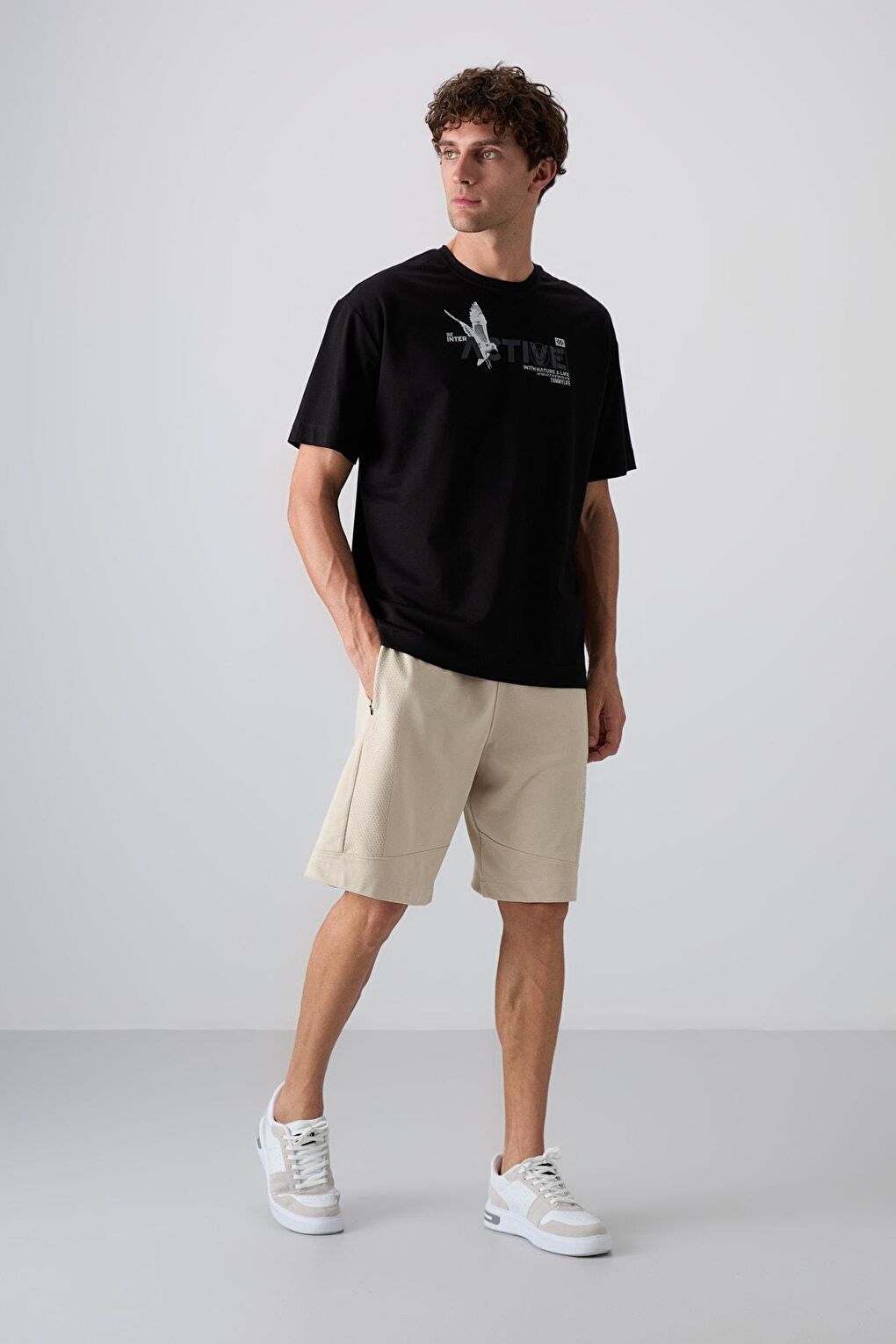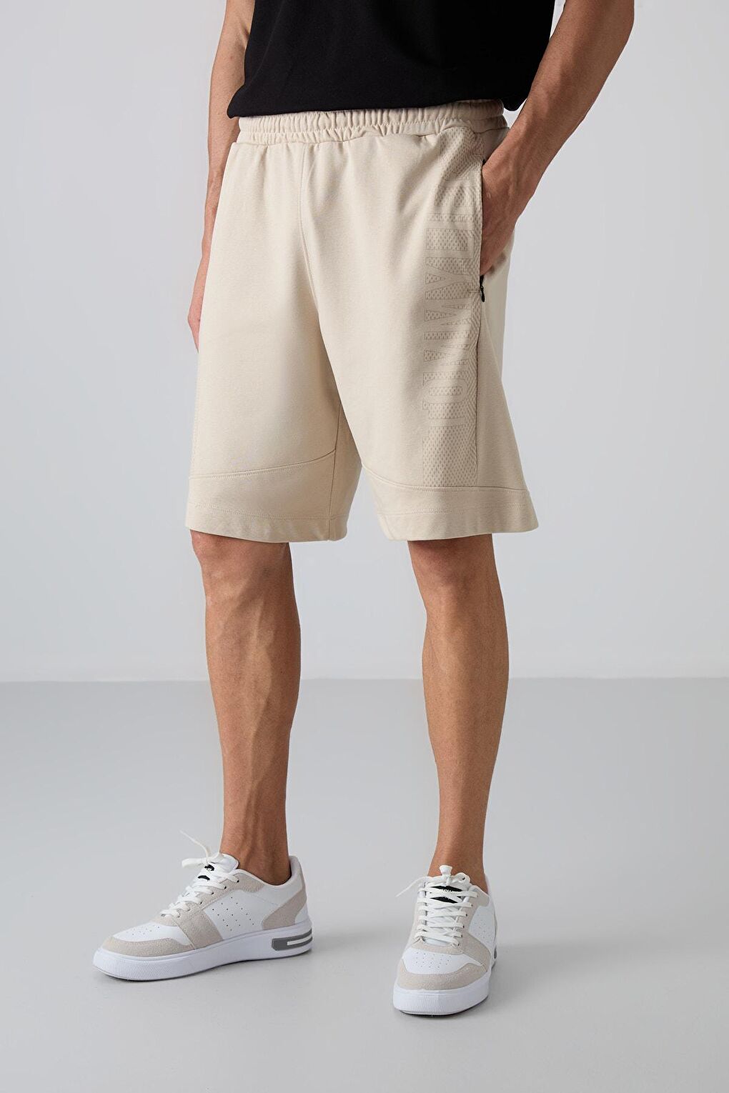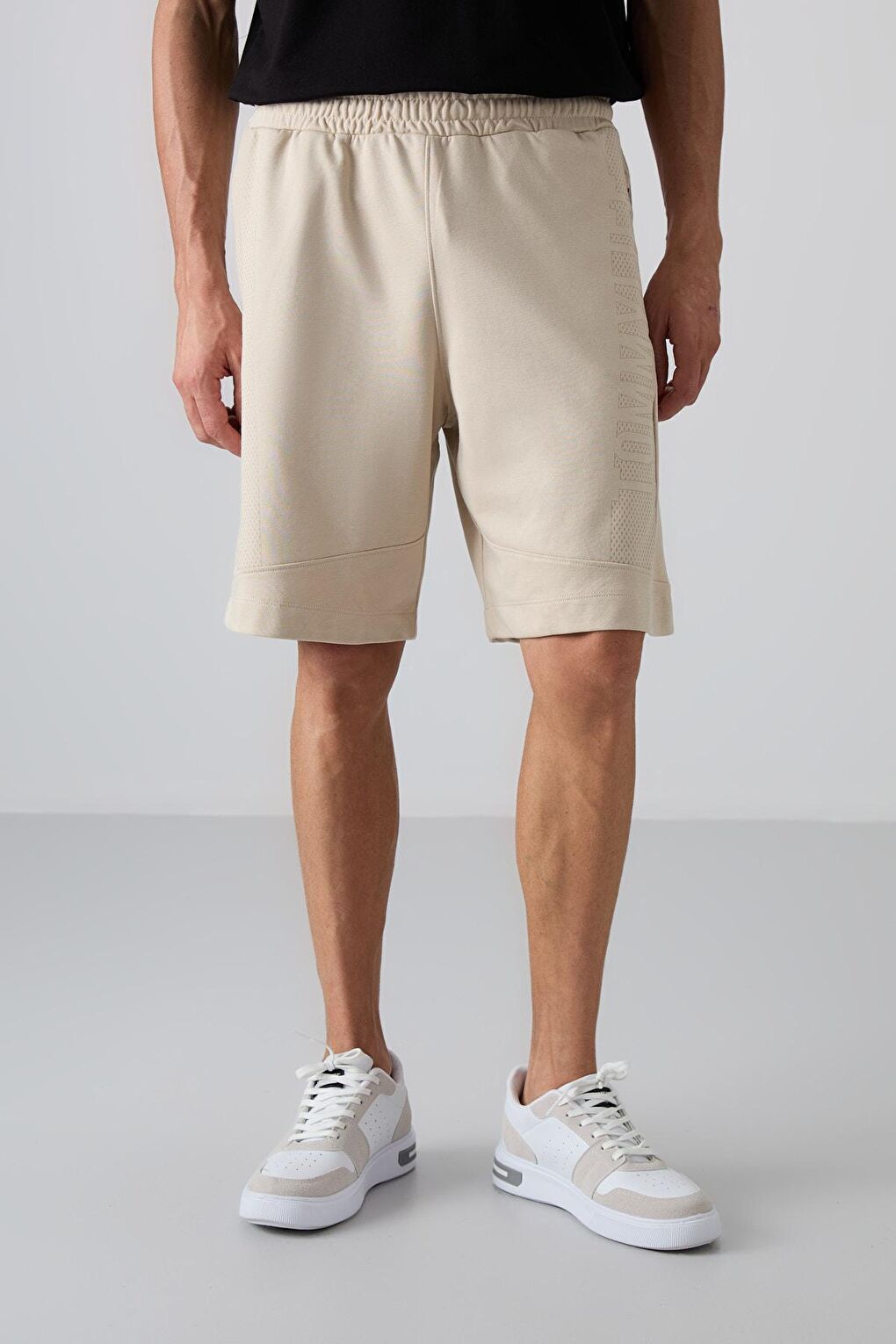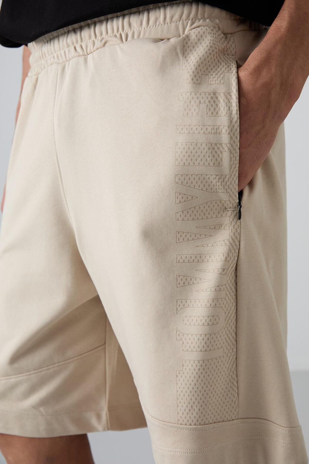 - نام : Bej Pamuklu Kalın Yumuşak Dokulu Comfort Fit Baskılı Erkek Şort - 81265
