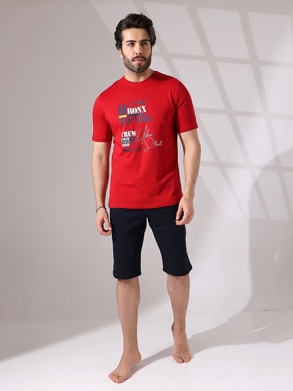- نام : Bisiklet Yaka Kısa Kollu Baskılı Erkek Tişört ve Şort 2'li Takım
