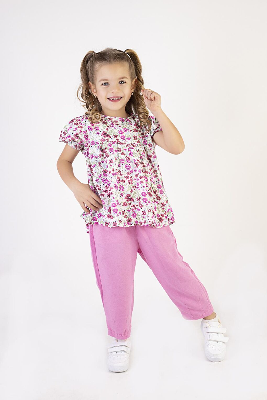 - نام : Kız Çocuk Dokuma Üst Keten Pantalon Model Alt-Üst Takım