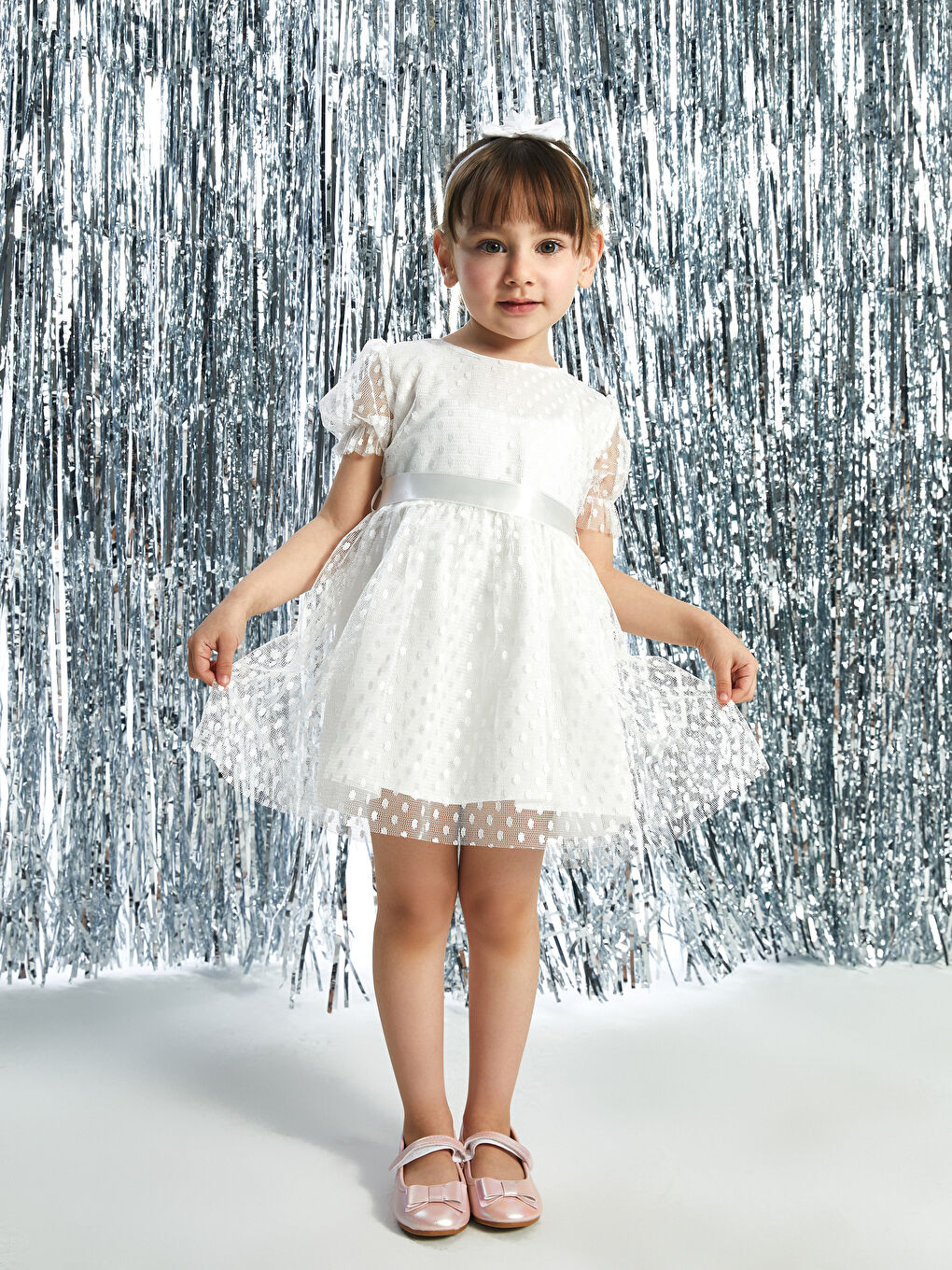 - نام : Bisiklet Yaka Tül Detaylı Kız Bebek Abiye Elbise
