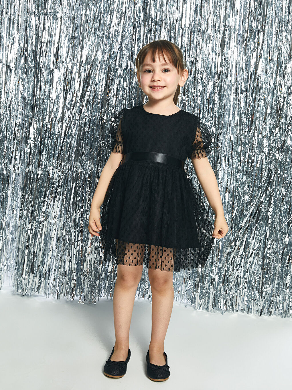 - نام : Bisiklet Yaka Tül Detaylı Kız Bebek Abiye Elbise