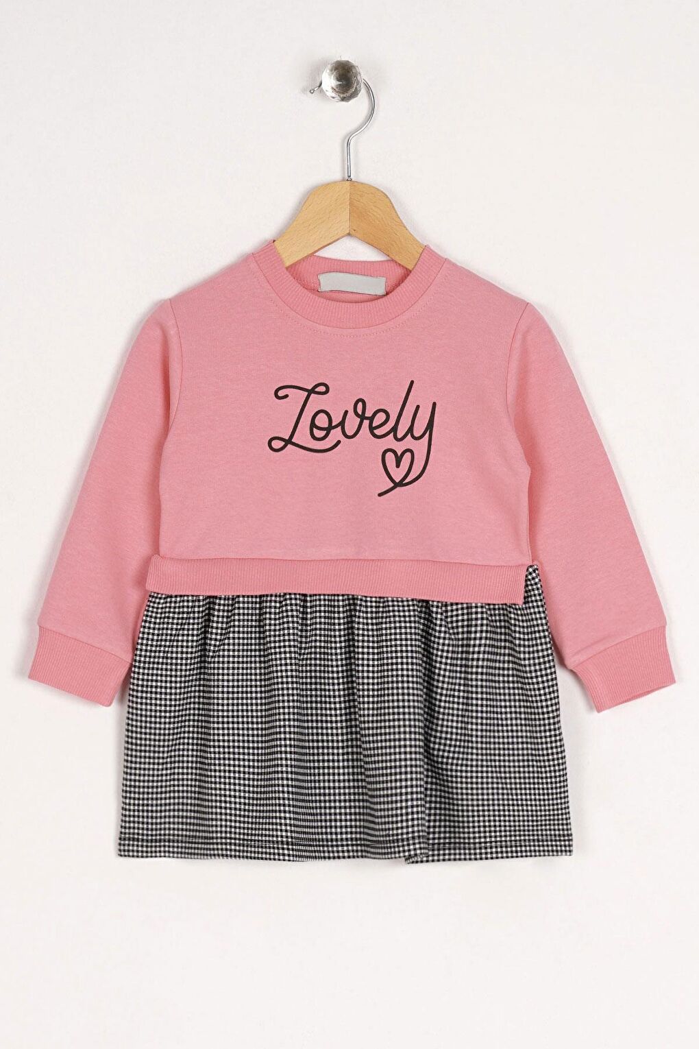 - نام : Bisiklet Yaka Lovely Baskılı Somon Siyah Kız Bebek Elbise