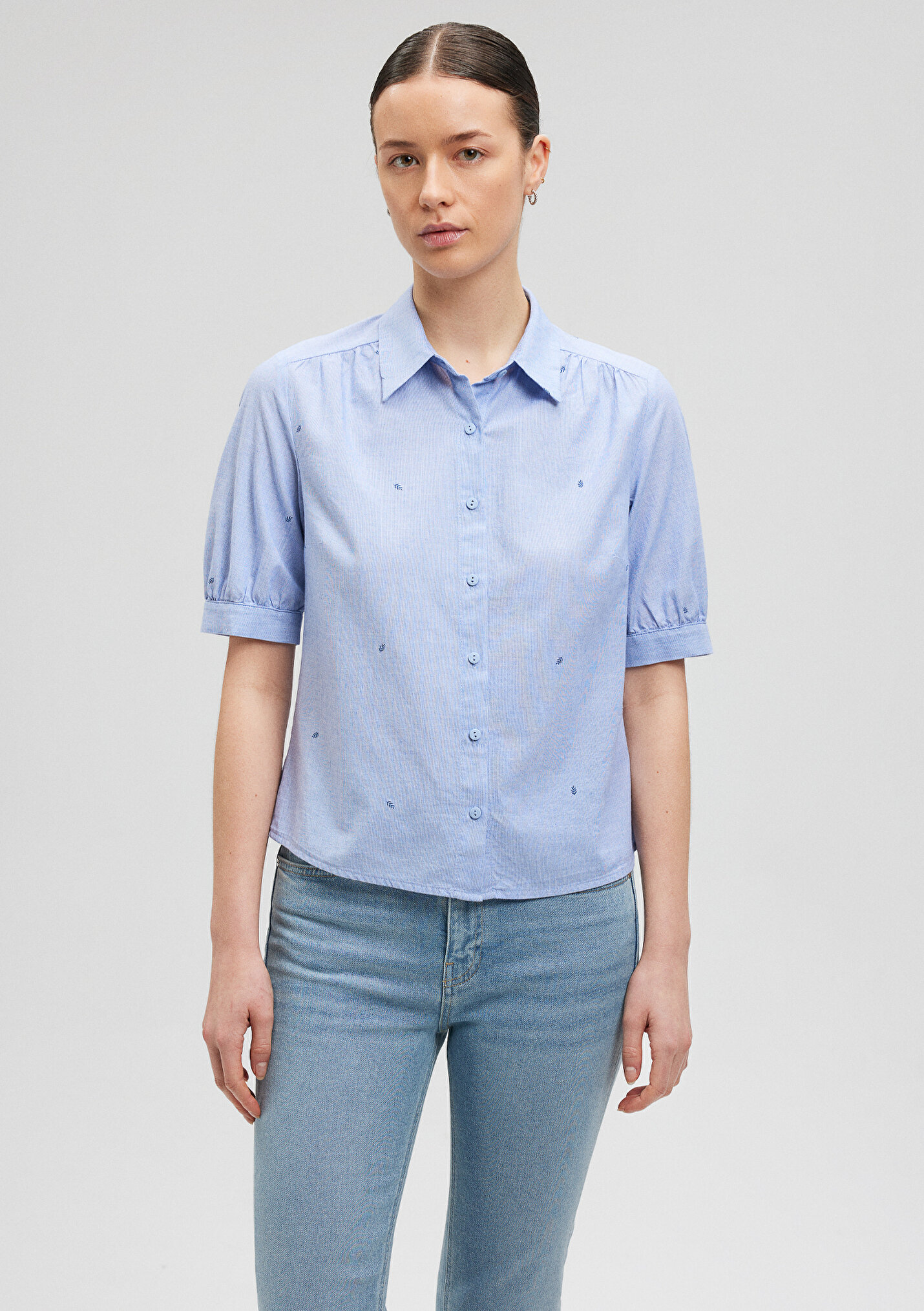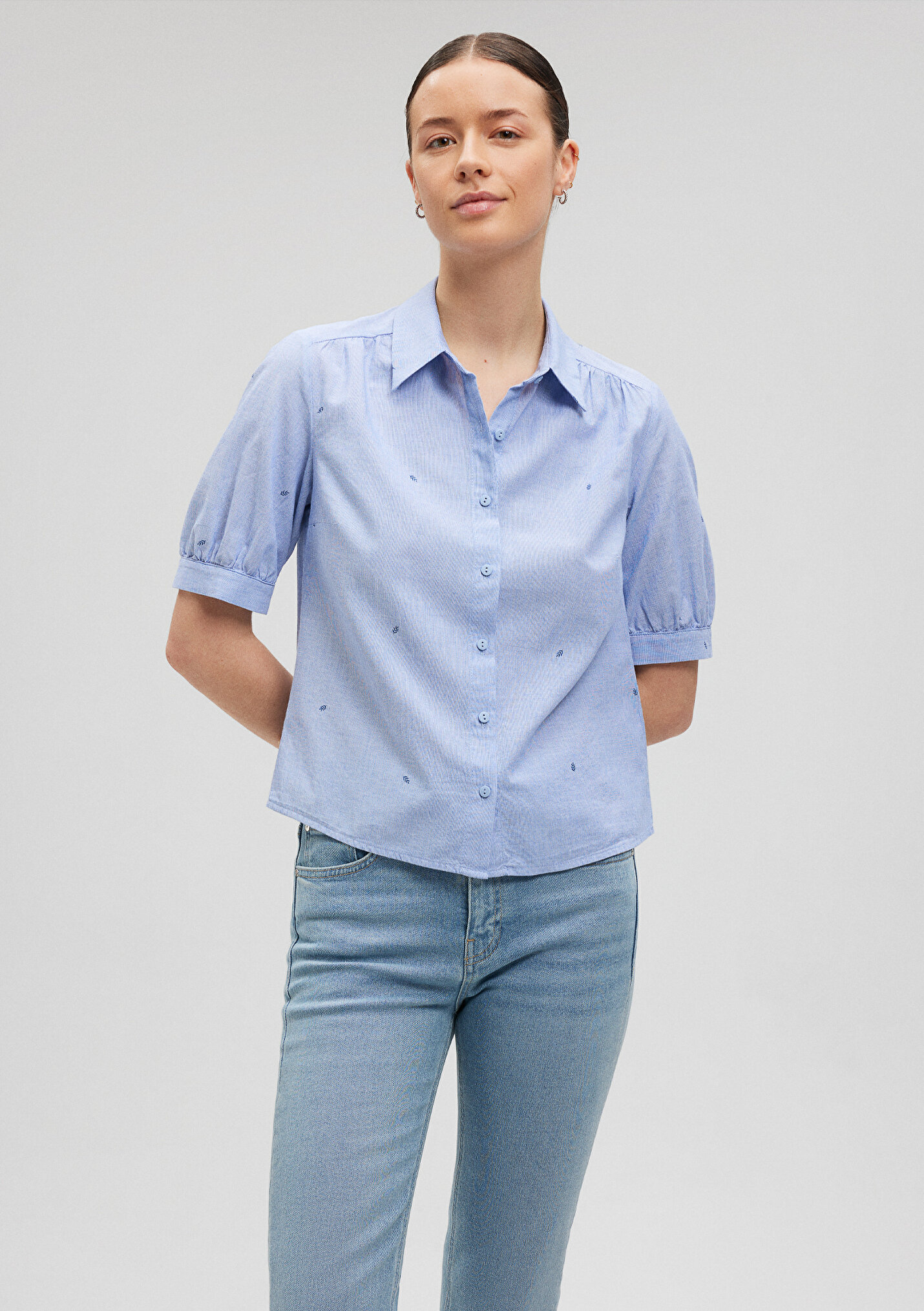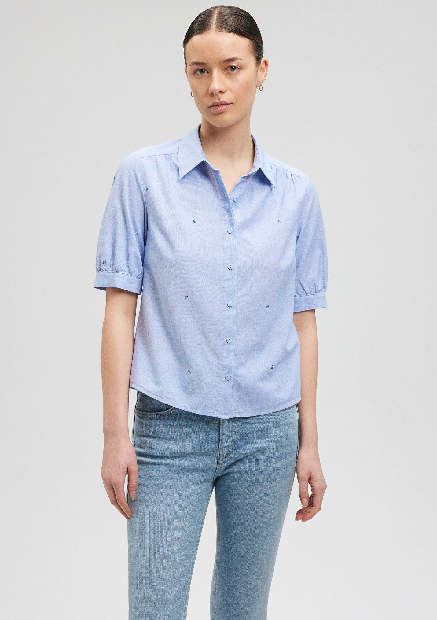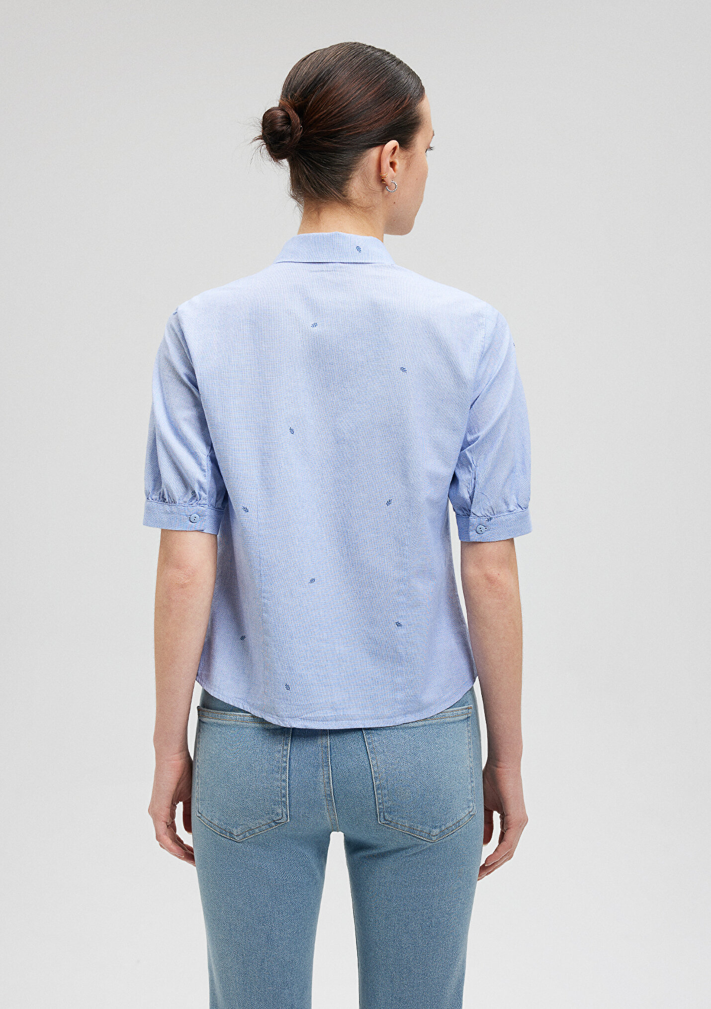 - نام : Mini Çiçek Baskılı Mavi Gömlek
