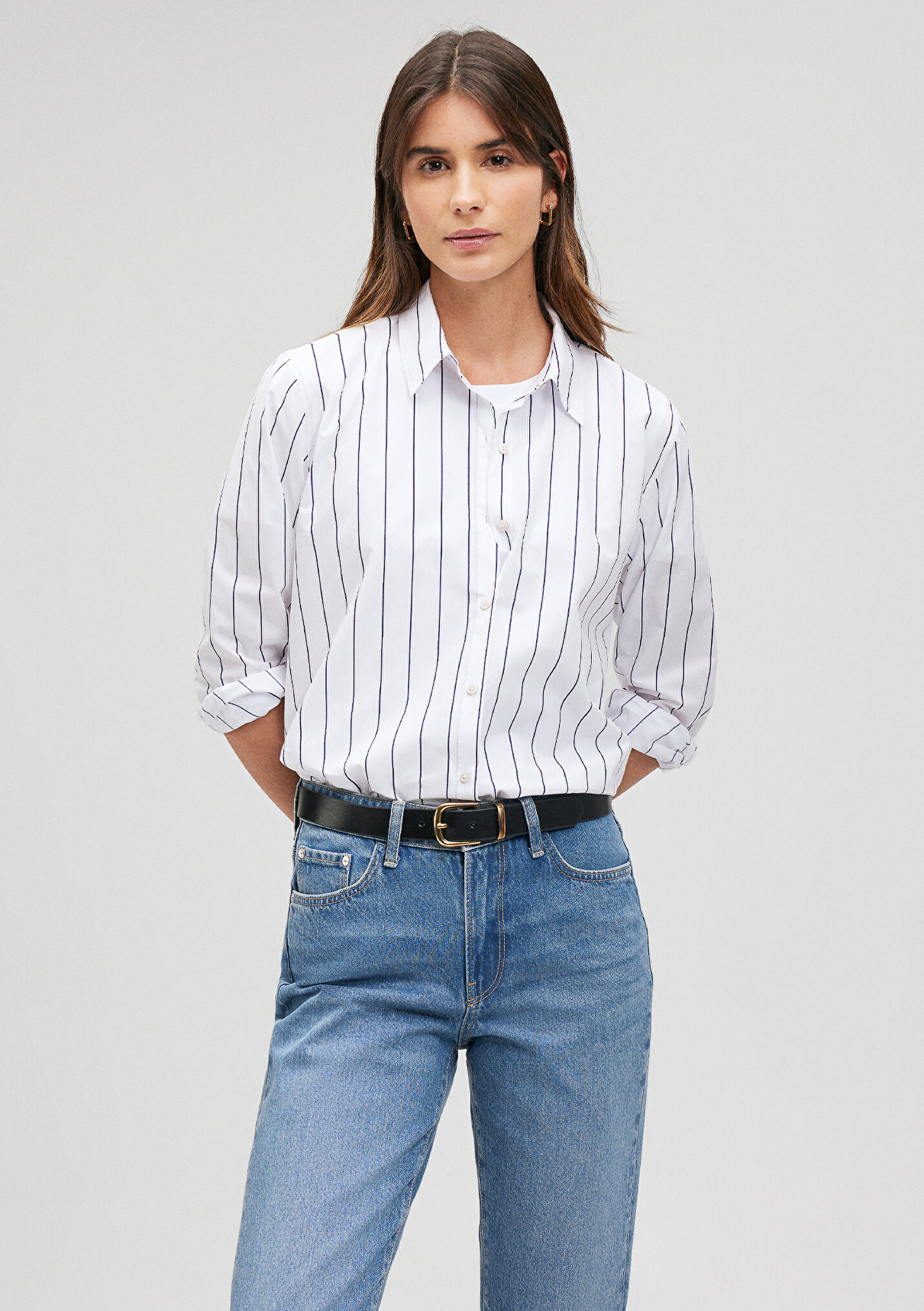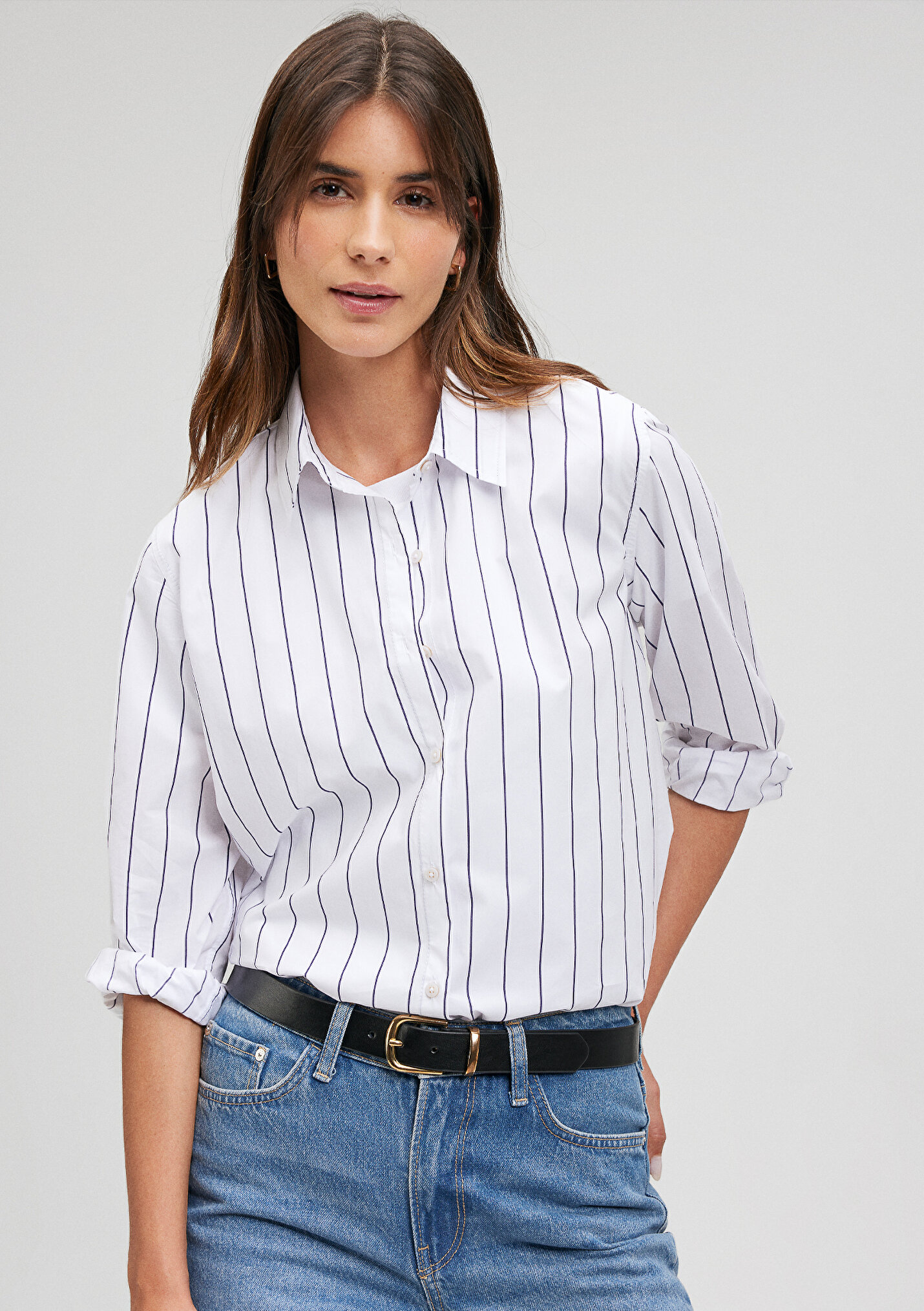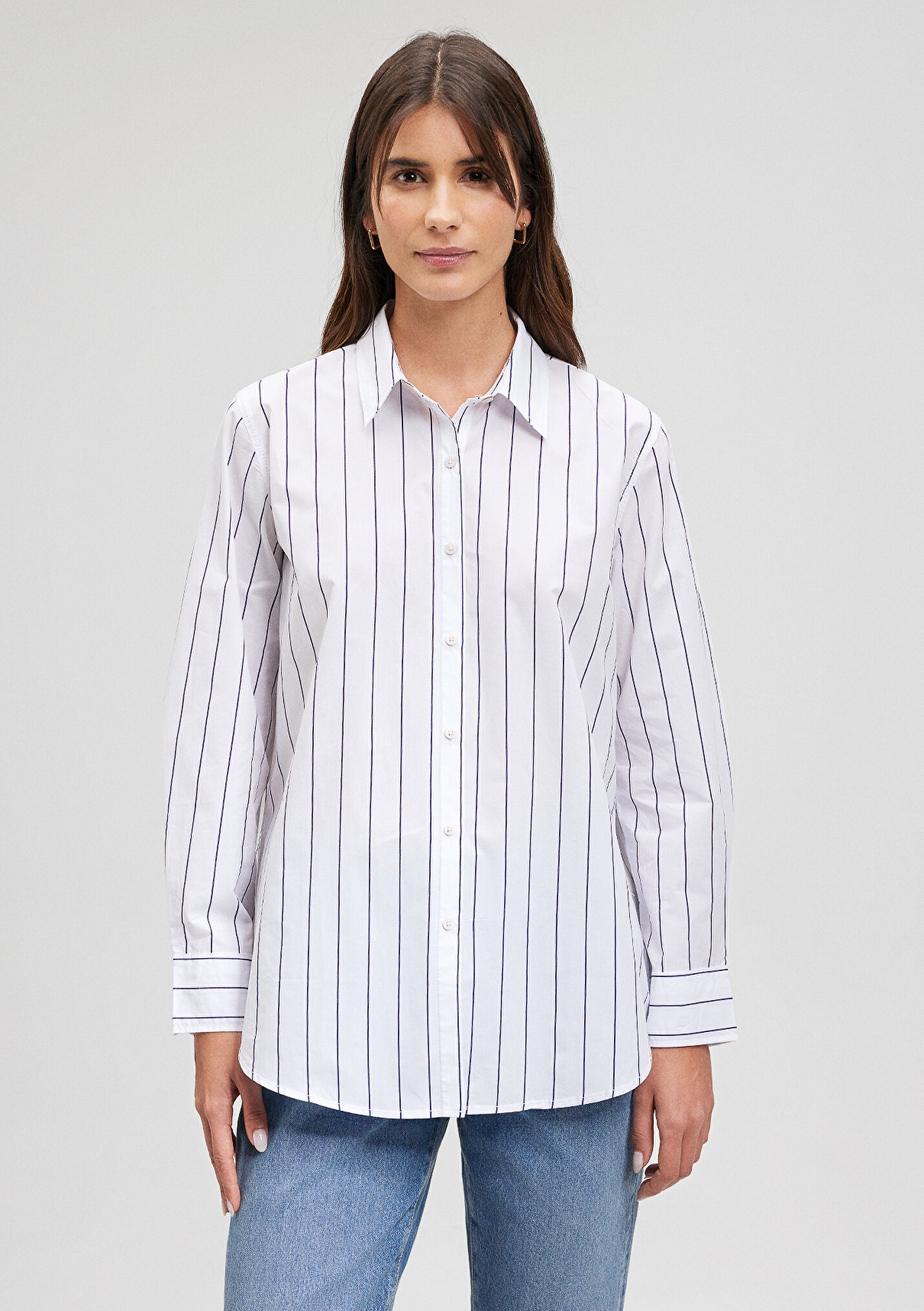 - نام : Çizgili Beyaz Poplin Gömlek
