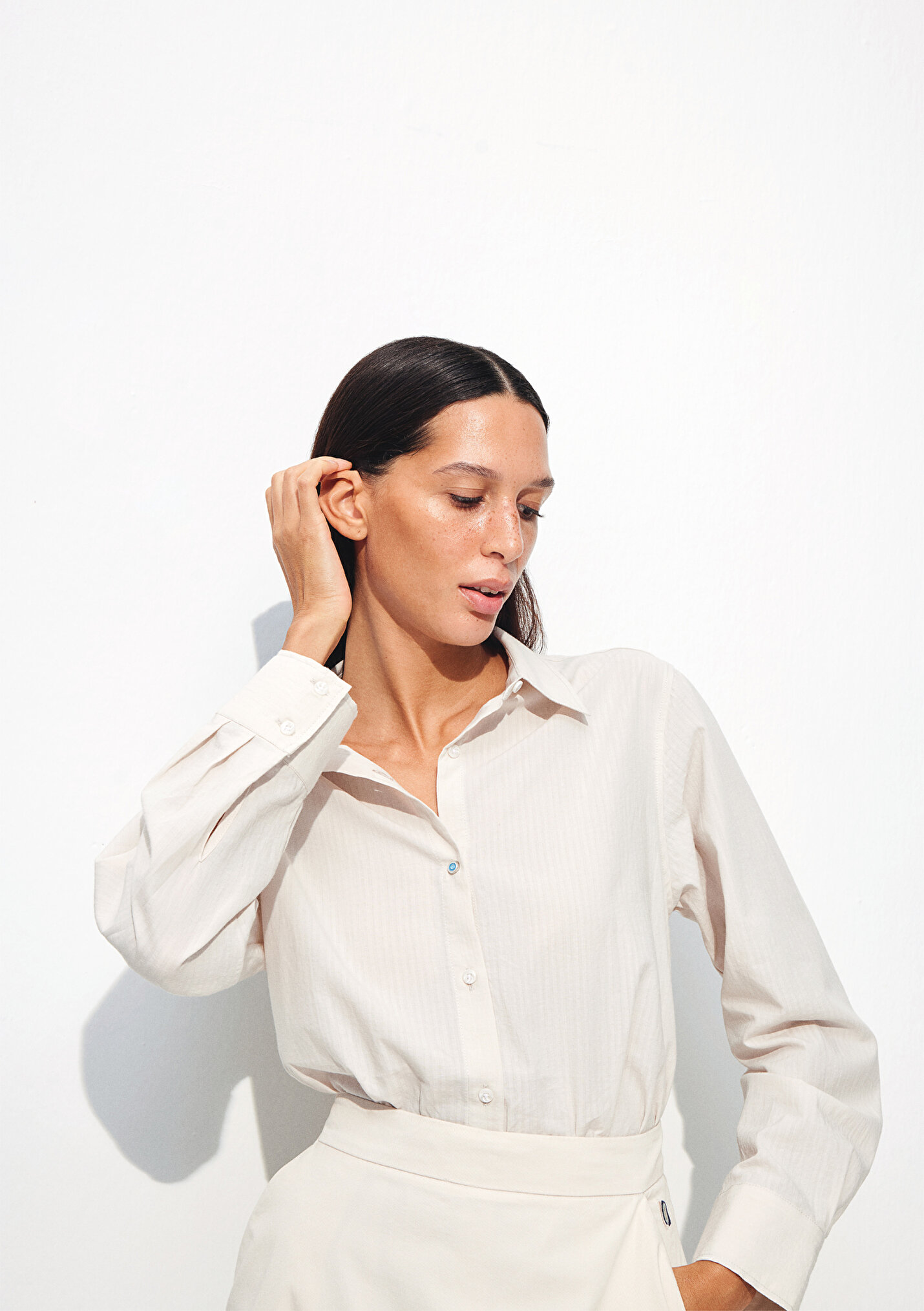 خرید اینترنتی شومیز زنانه بژ ماوی 1210902