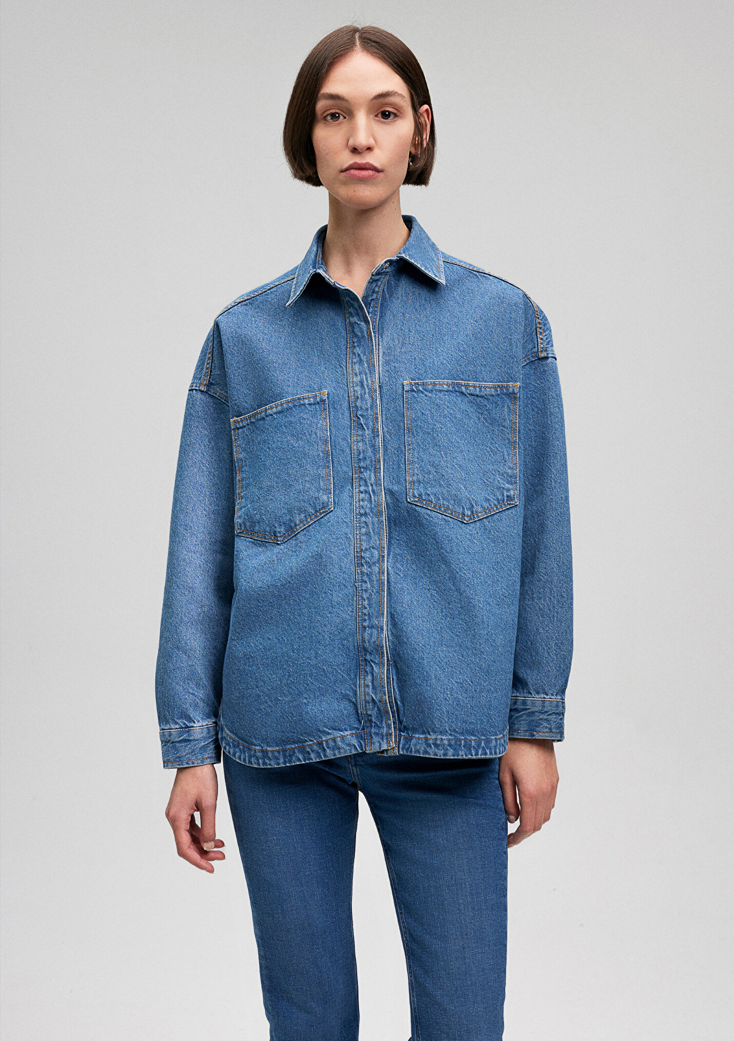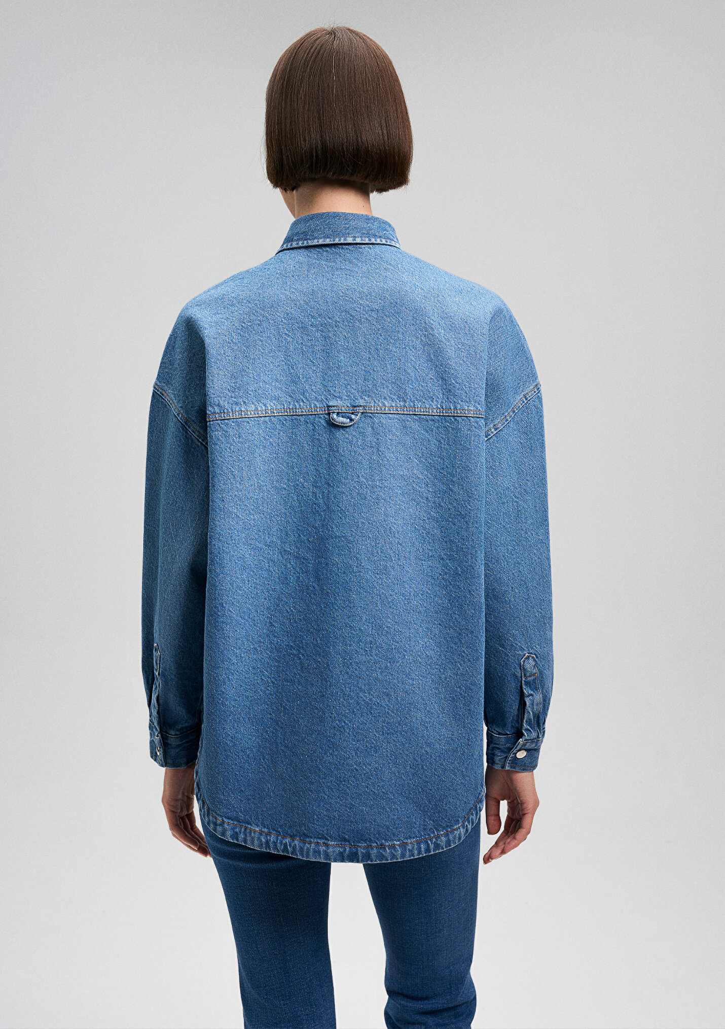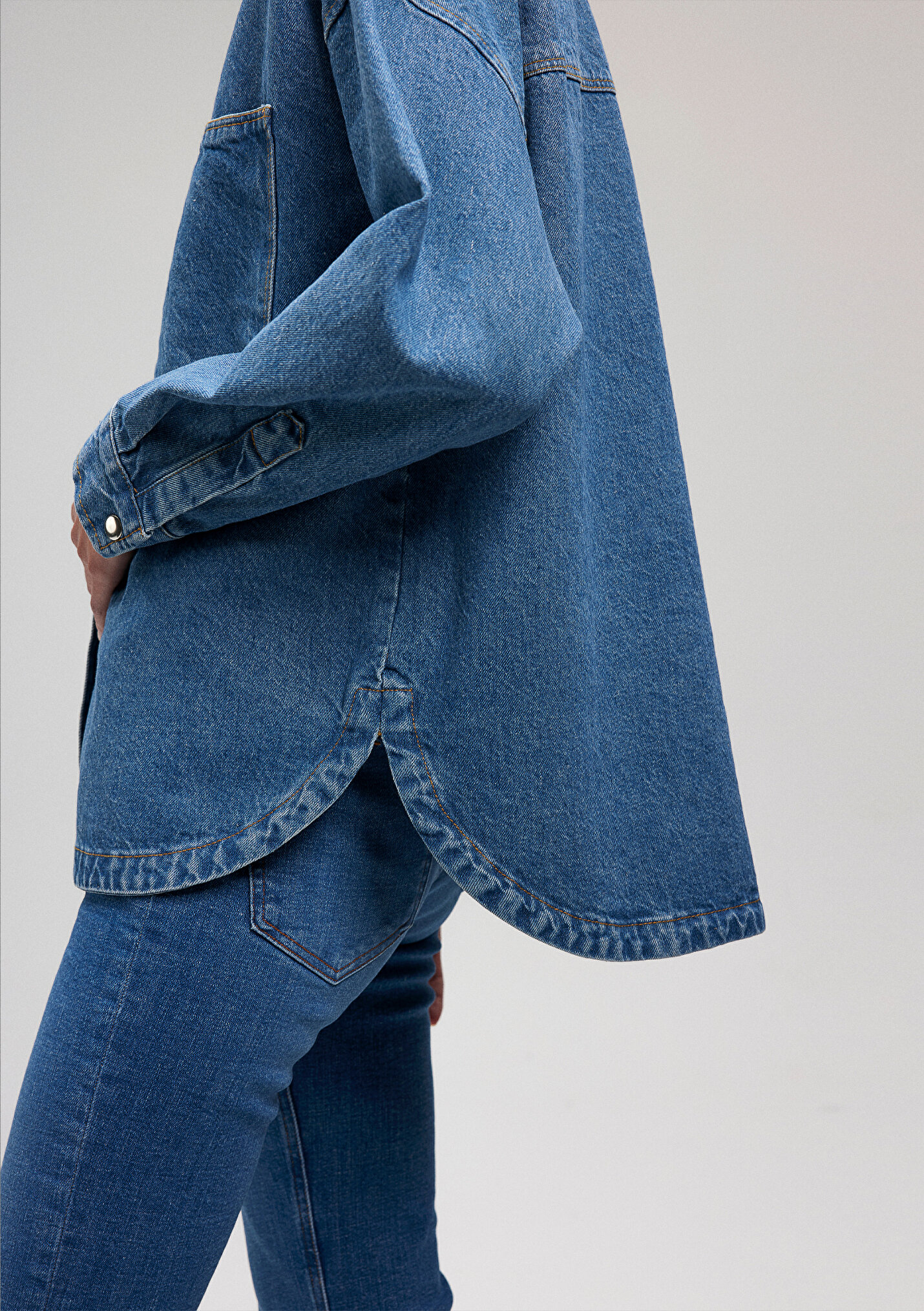 - نام : Cep Detaylı İndigo Denim Gömlek