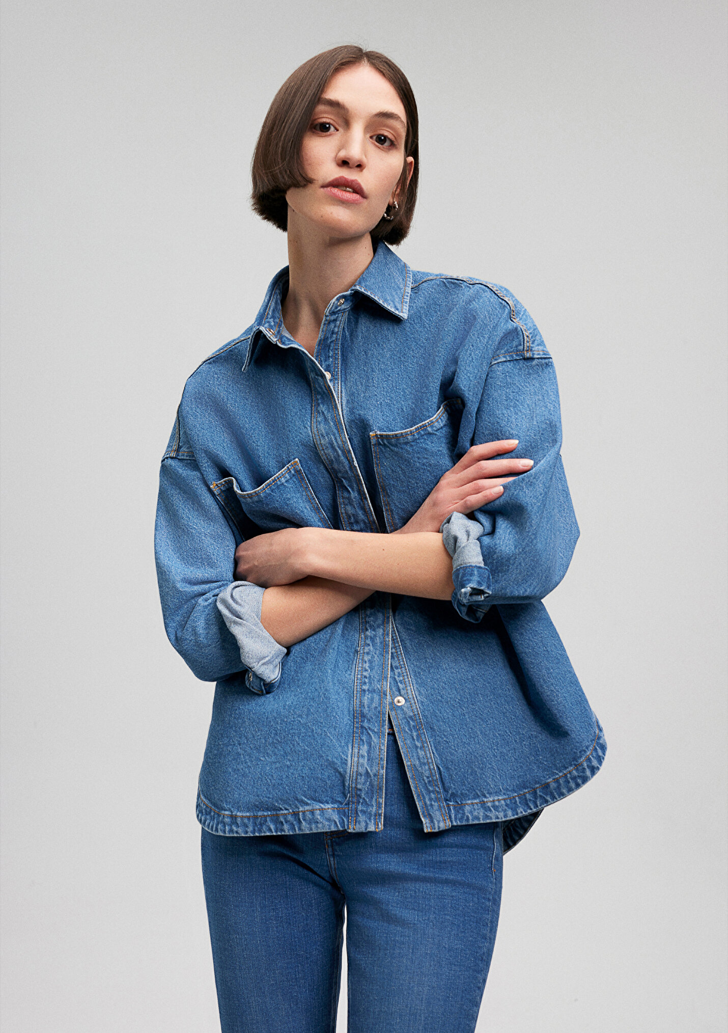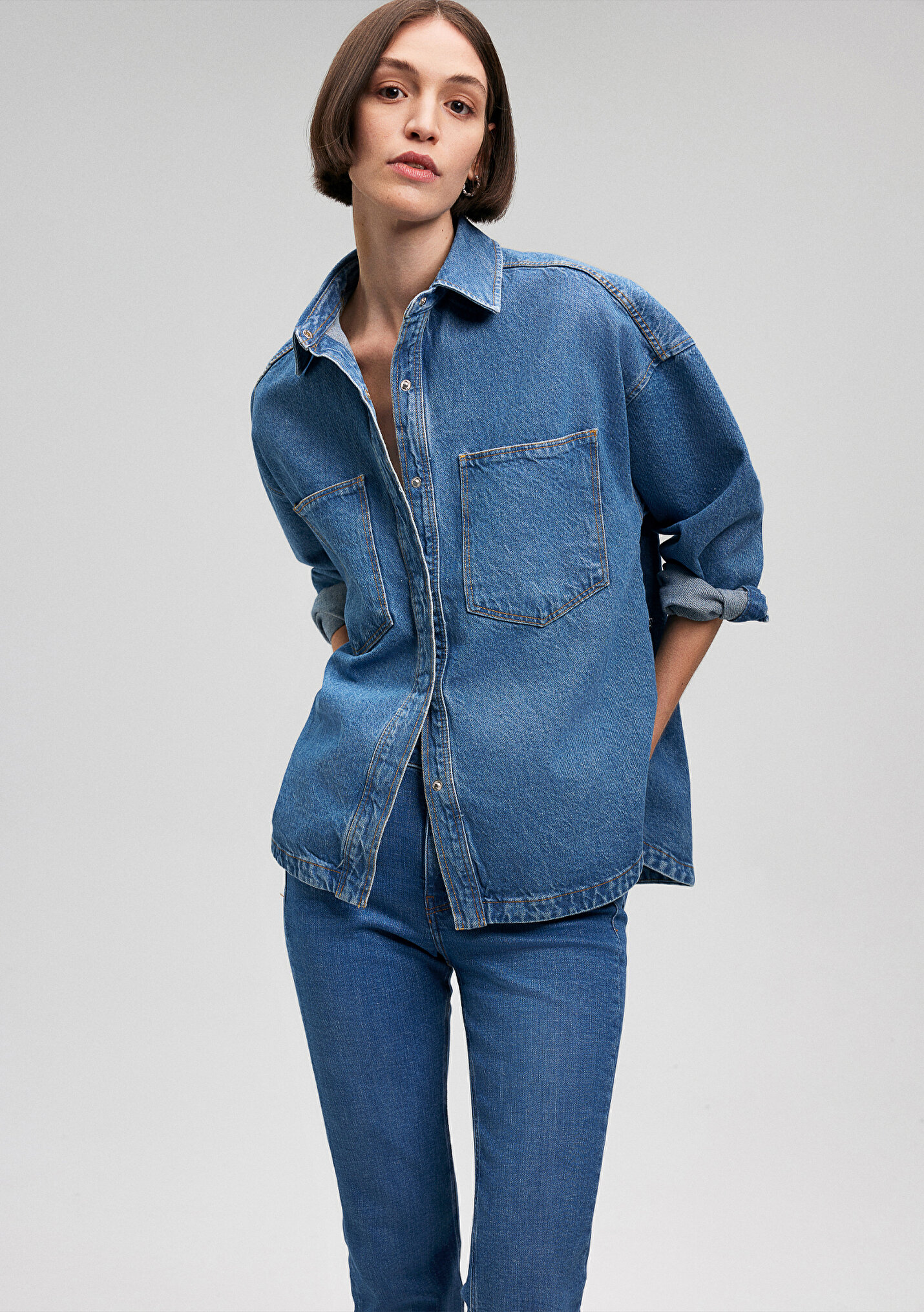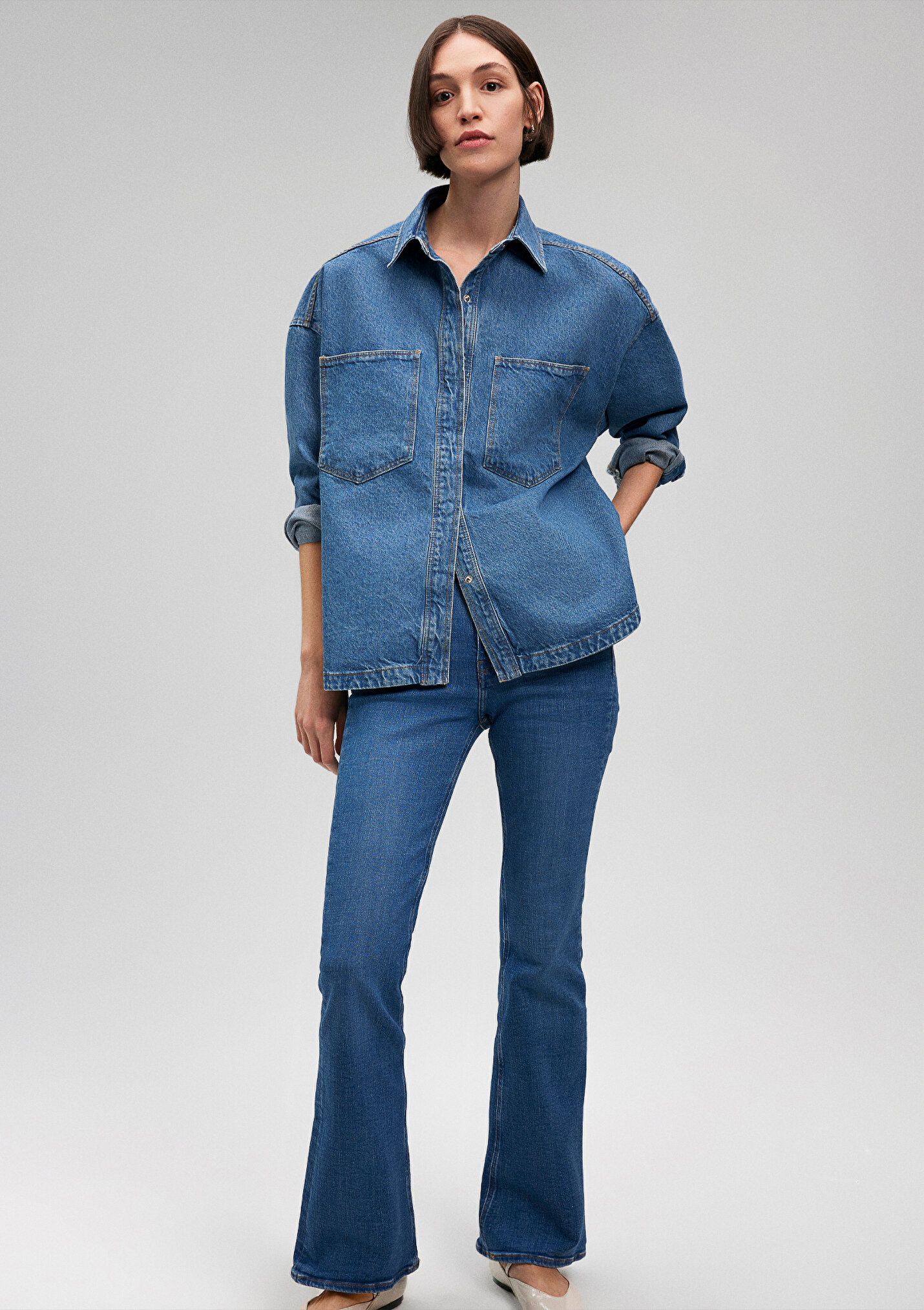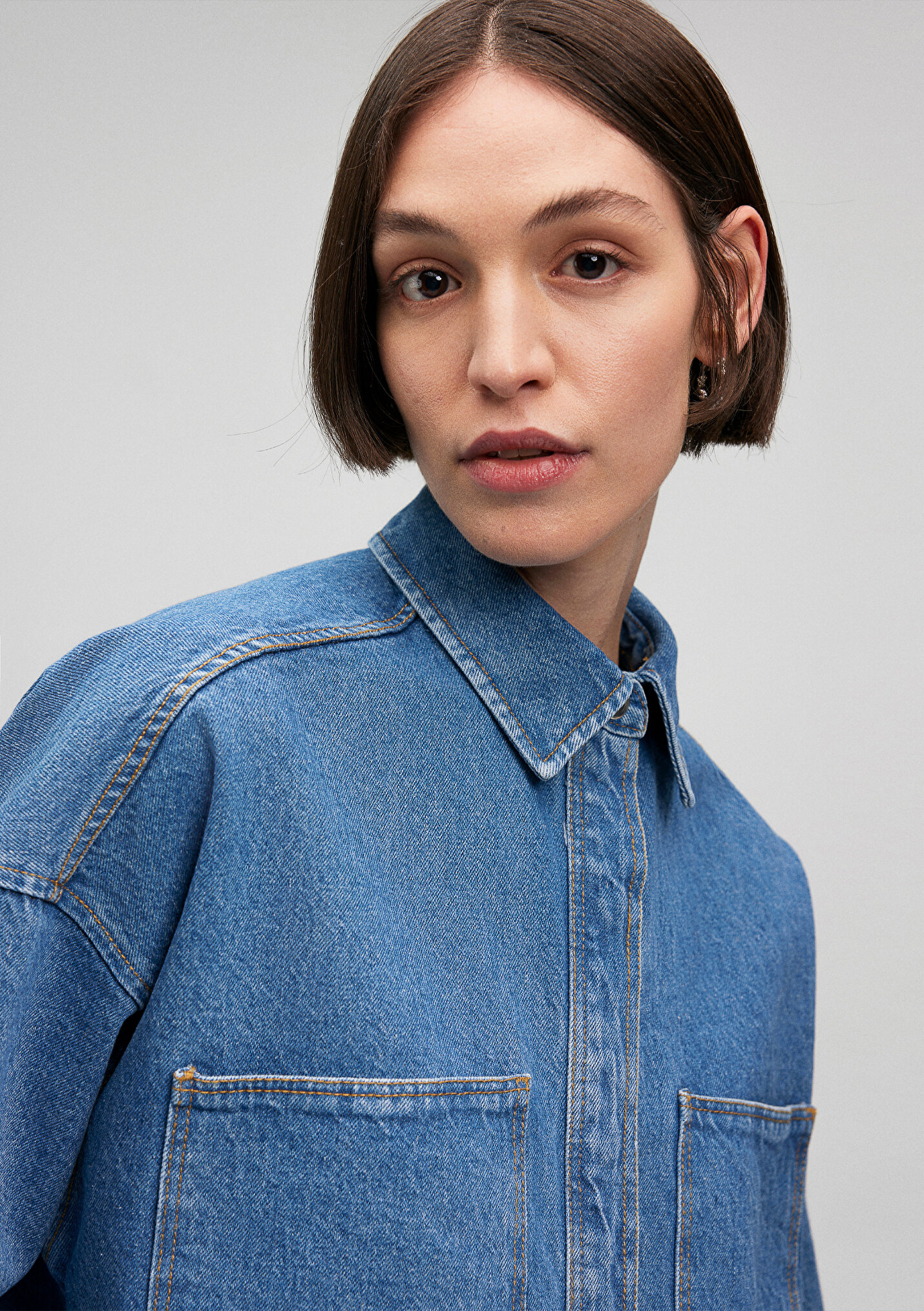 - نام : Cep Detaylı İndigo Denim Gömlek