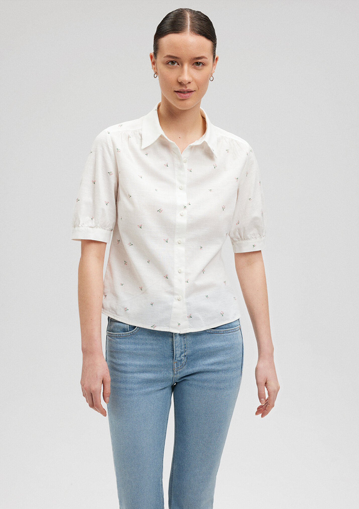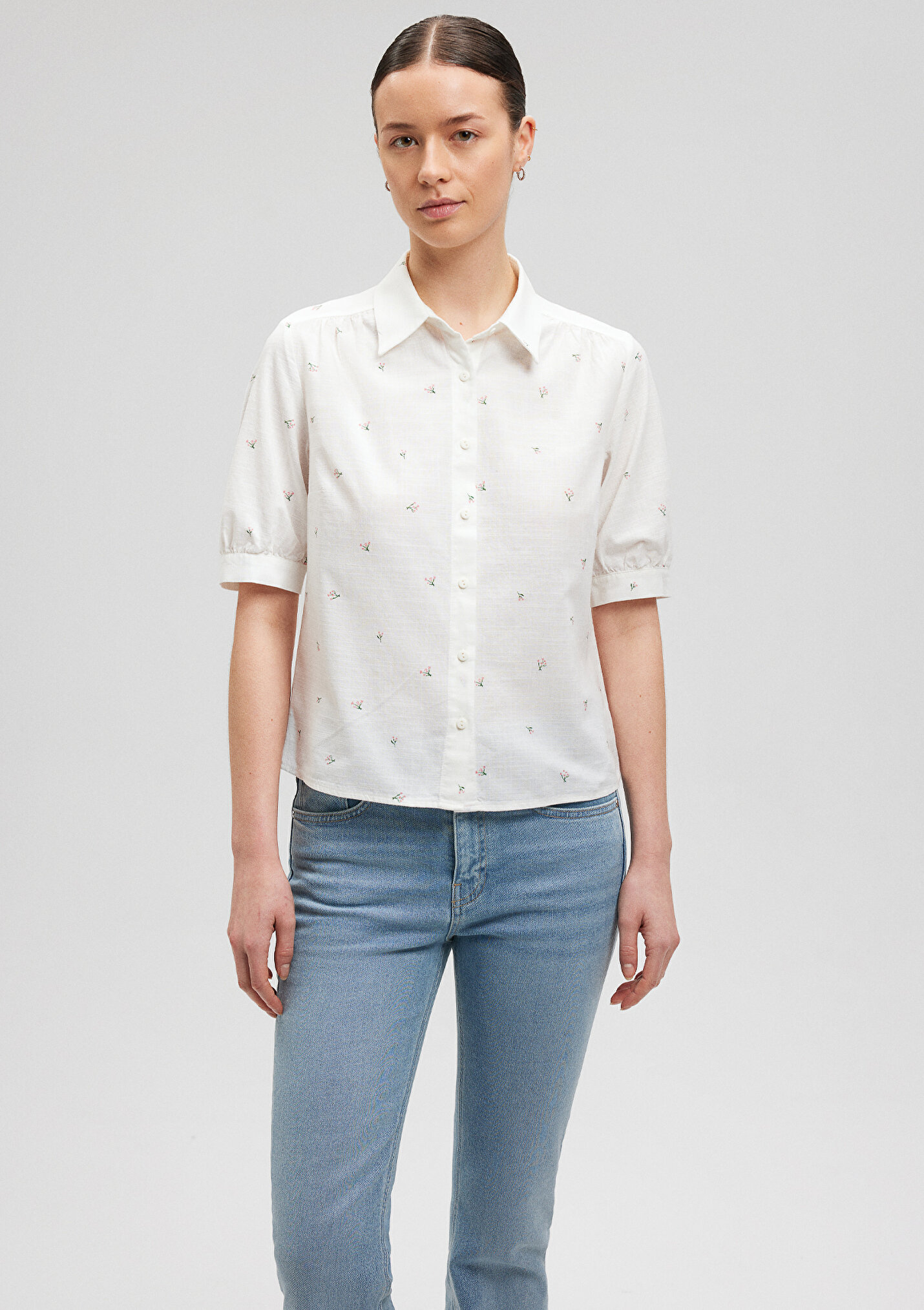 - نام : Mini Çiçek Baskılı Beyaz Gömlek