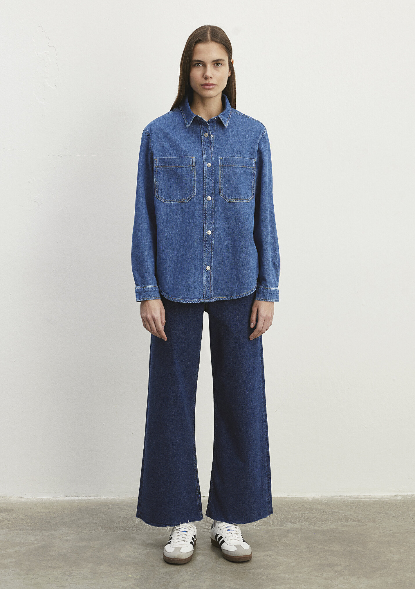 - نام : Alesta Classic Denim Koyu Mavi Vintage Jean Gömlek