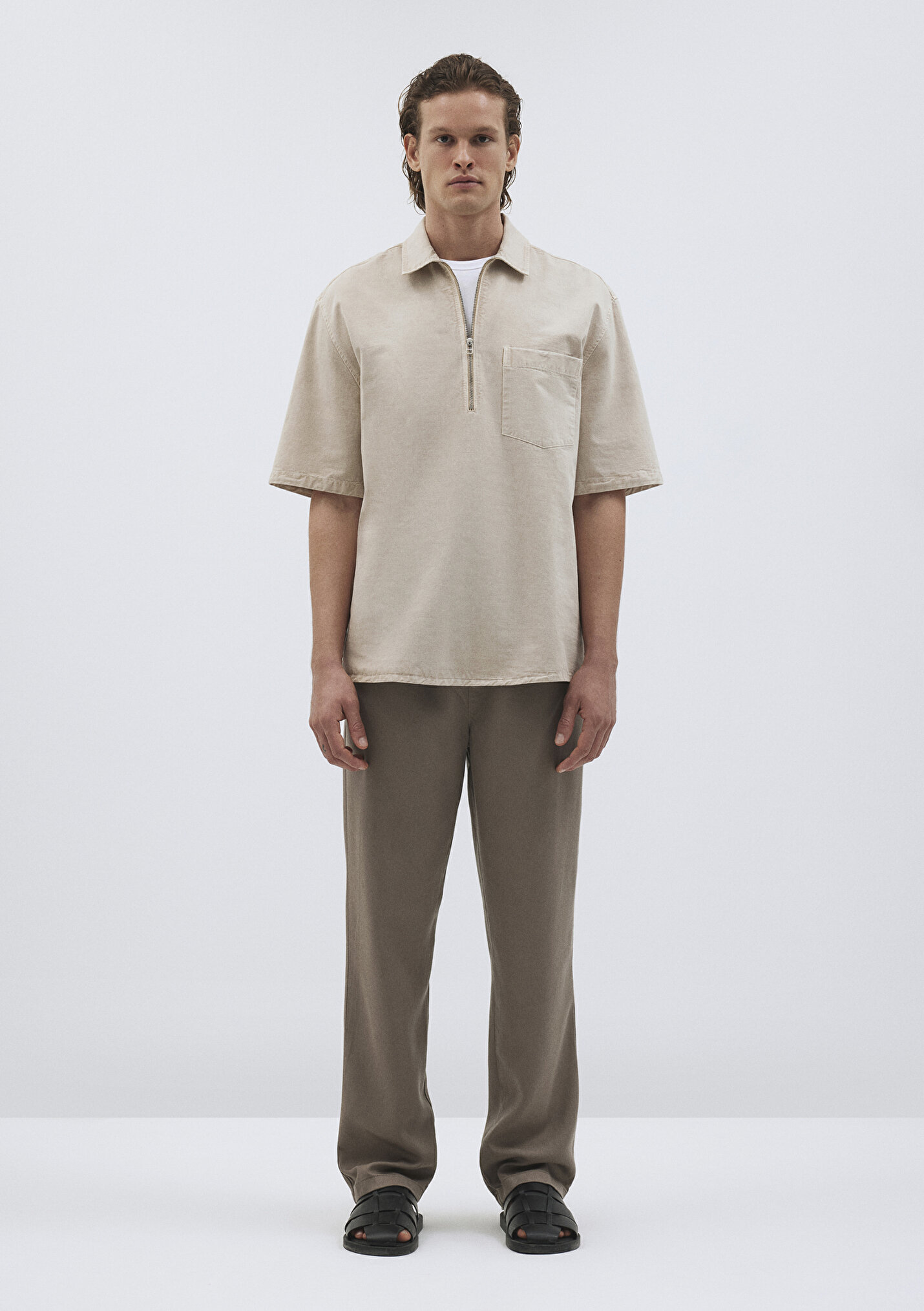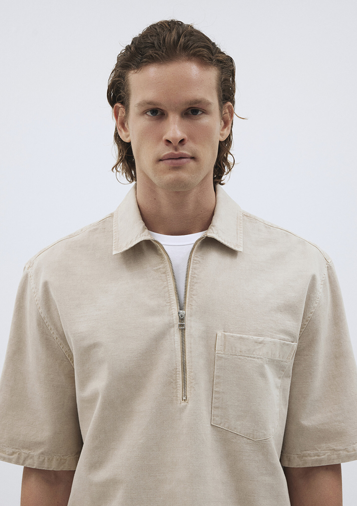 - نام : Keten Karışımlı Yarı Fermuarlı Polo Tişört