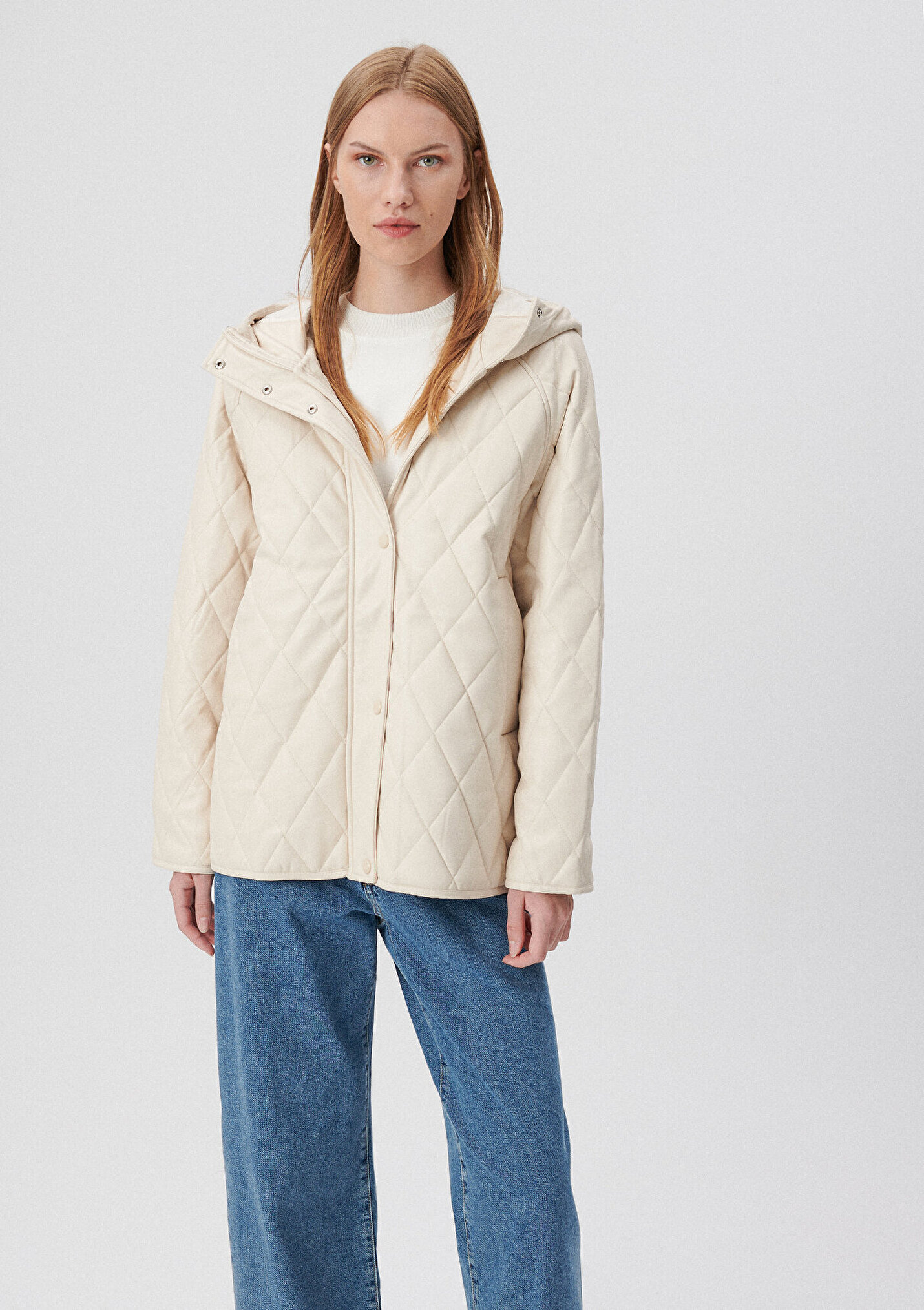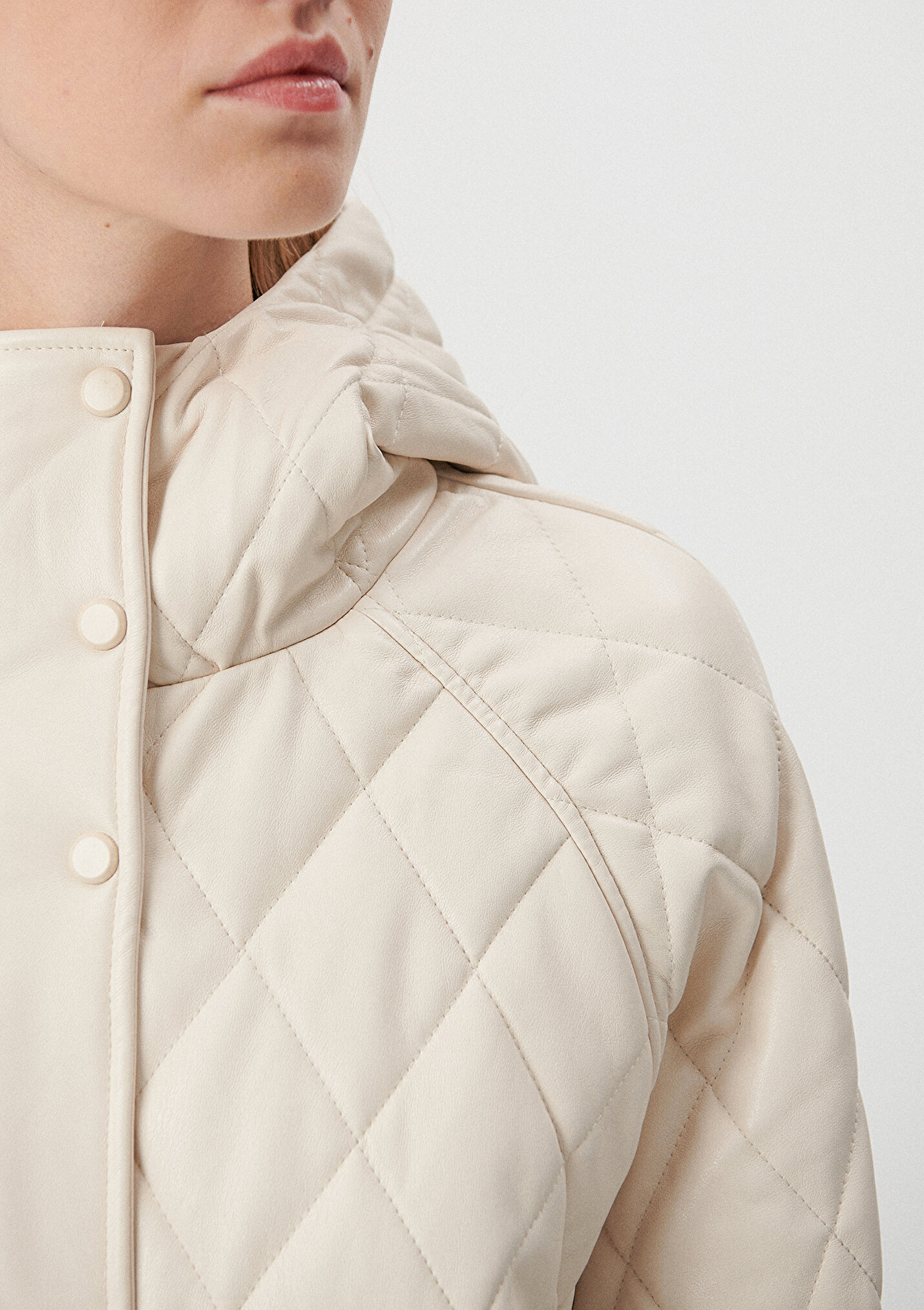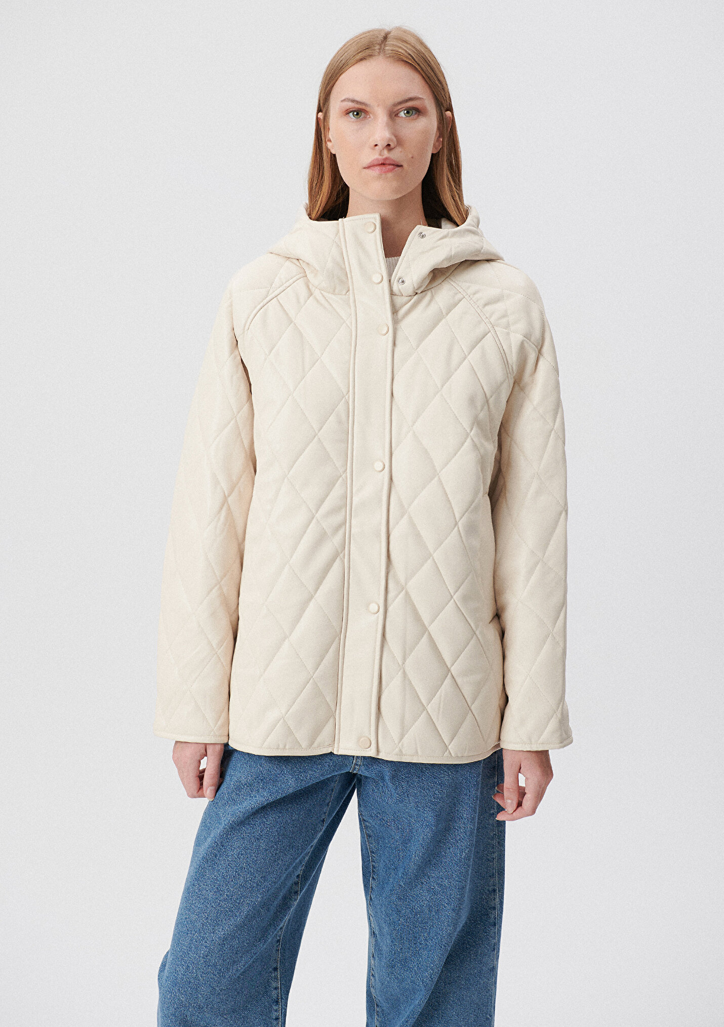 - نام : Kapitone Detaylı Bej Suni Deri Ceket
