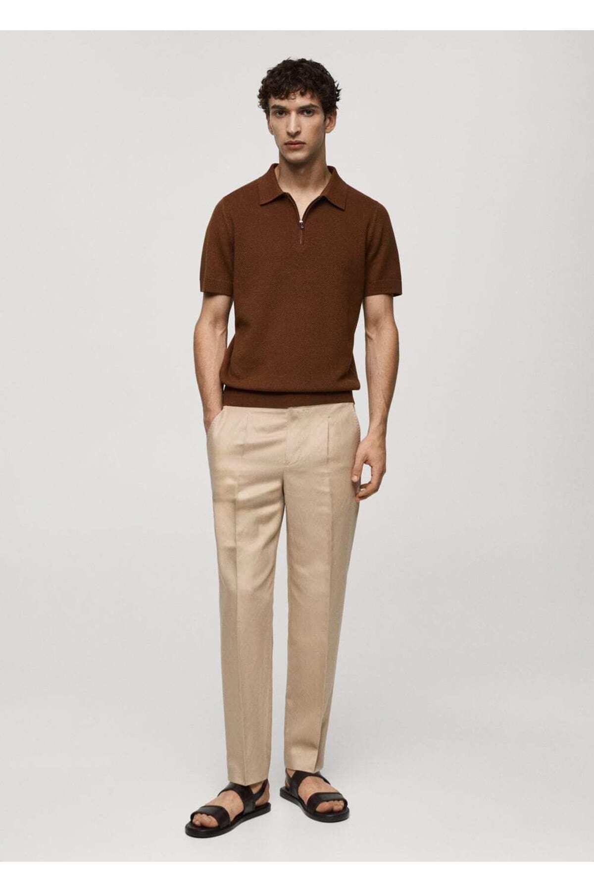 خرید اینترنتی شلوار کتان مردانه بژ مانگو 67079605