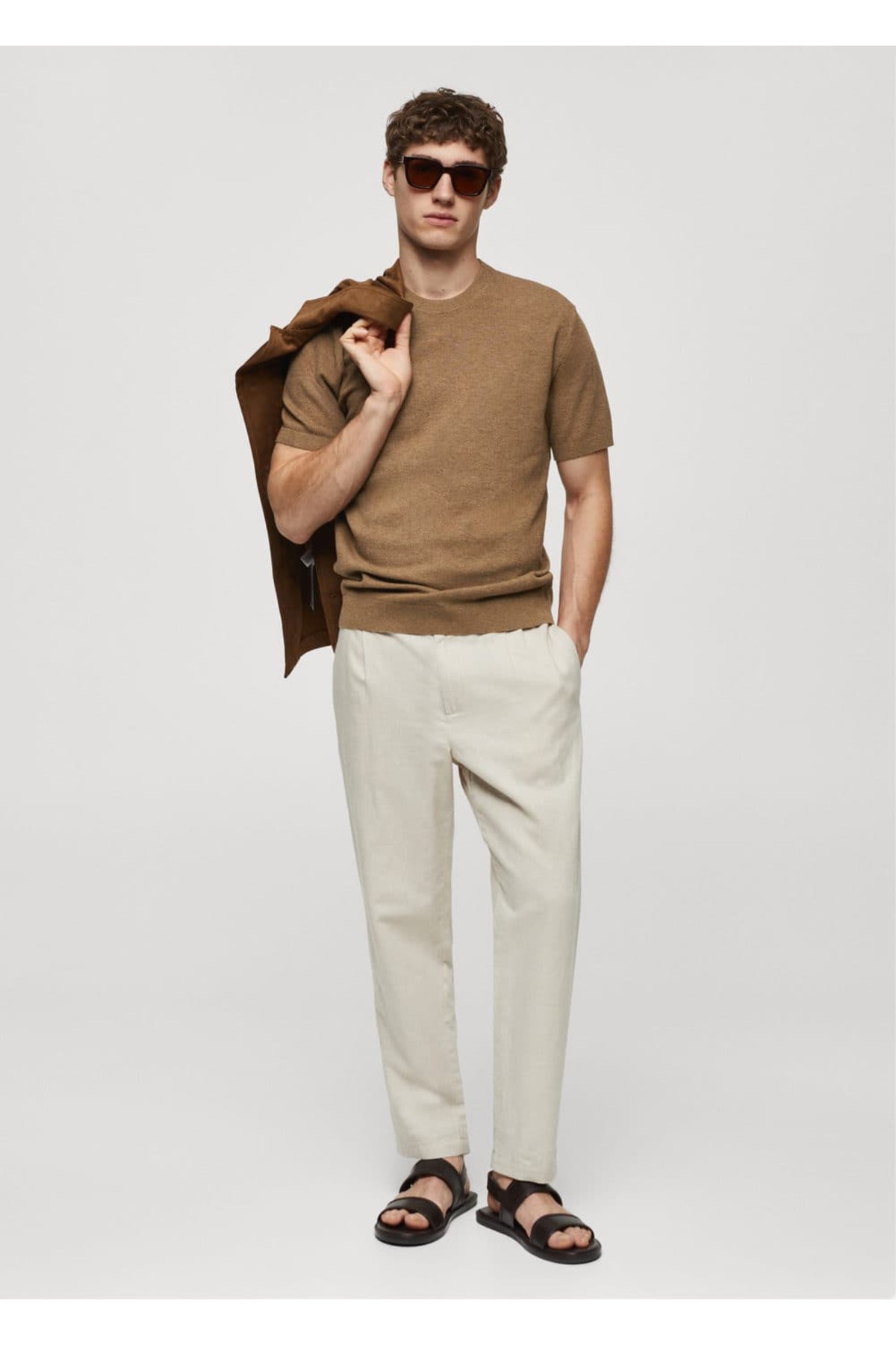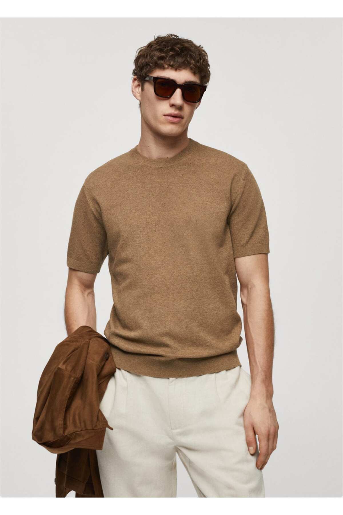 خرید اینترنتی تیشرت آستین کوتاه مردانه قهوه ای مانگو 67085980