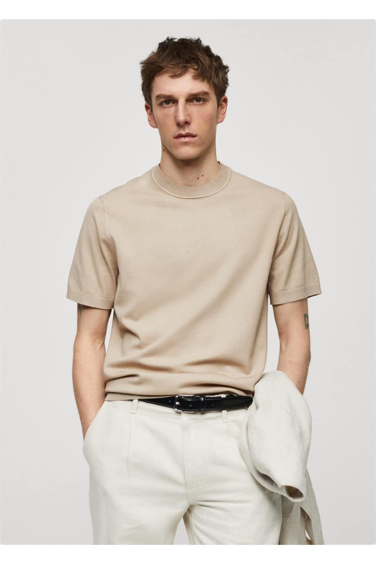 خرید اینترنتی تیشرت آستین کوتاه مردانه بژ مانگو 67046314