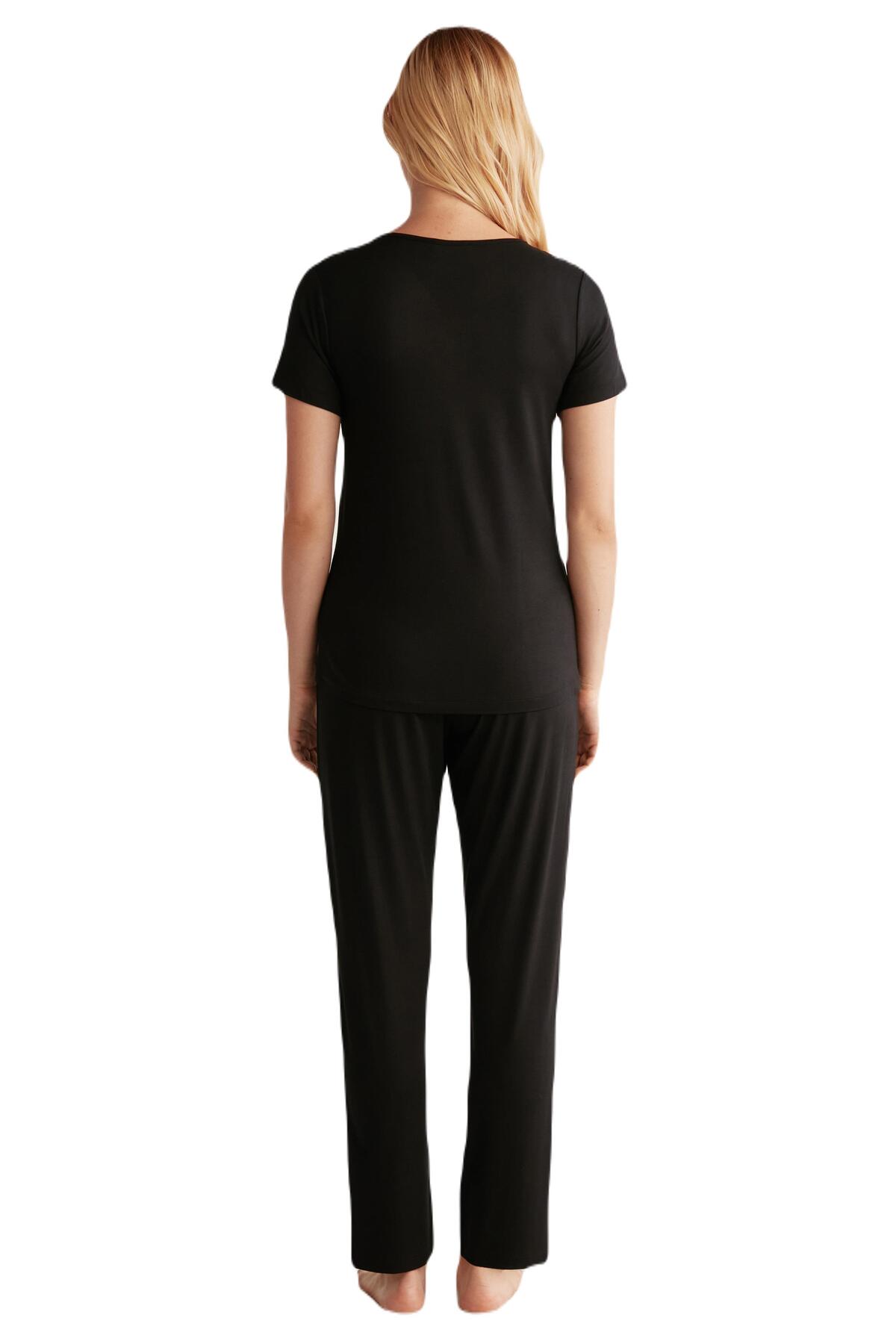 - نام : Kadın Yumuşak Dokulu Siyah Pijama Takımı