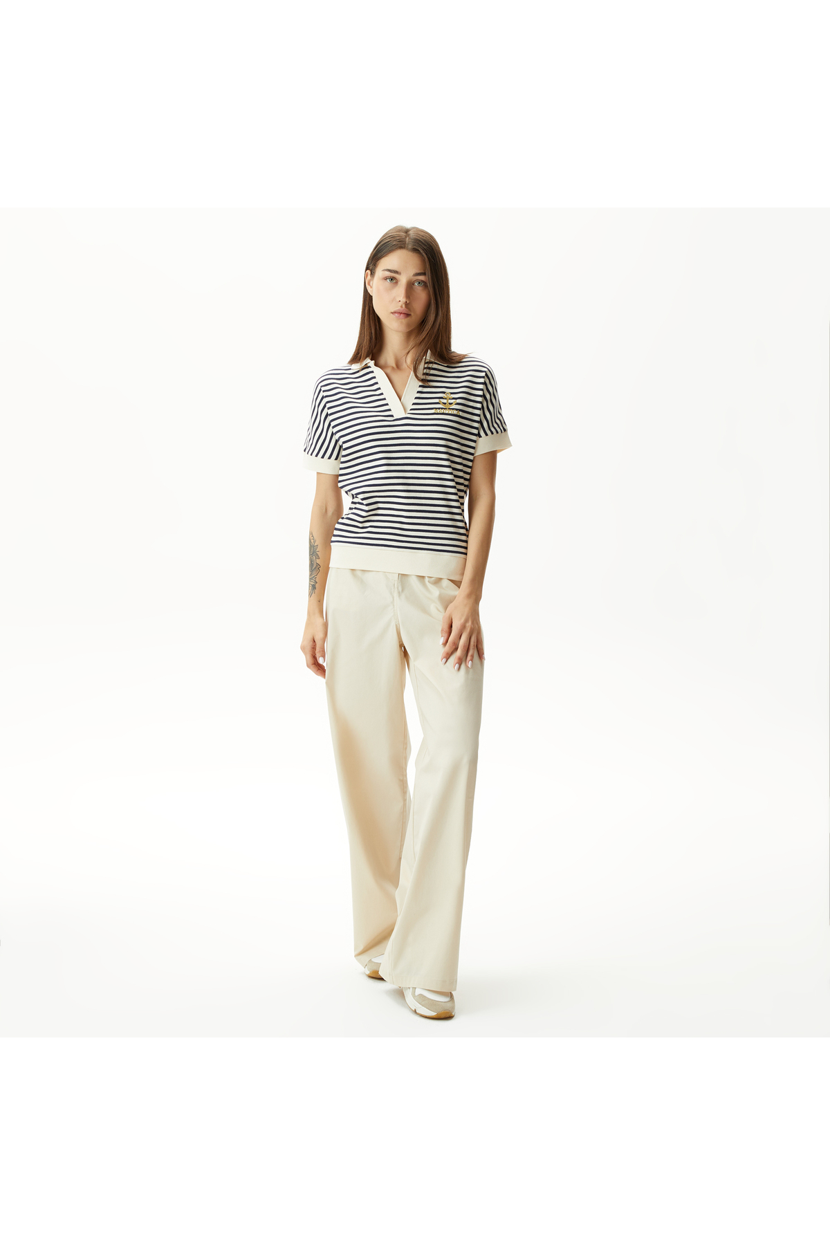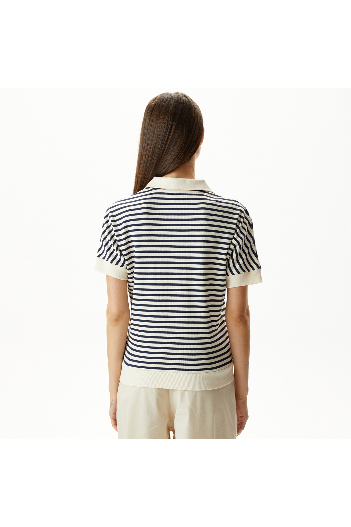 - نام : Kadın Lacivert Relaxed Fıt Kısa Kollu Çizgili Polo